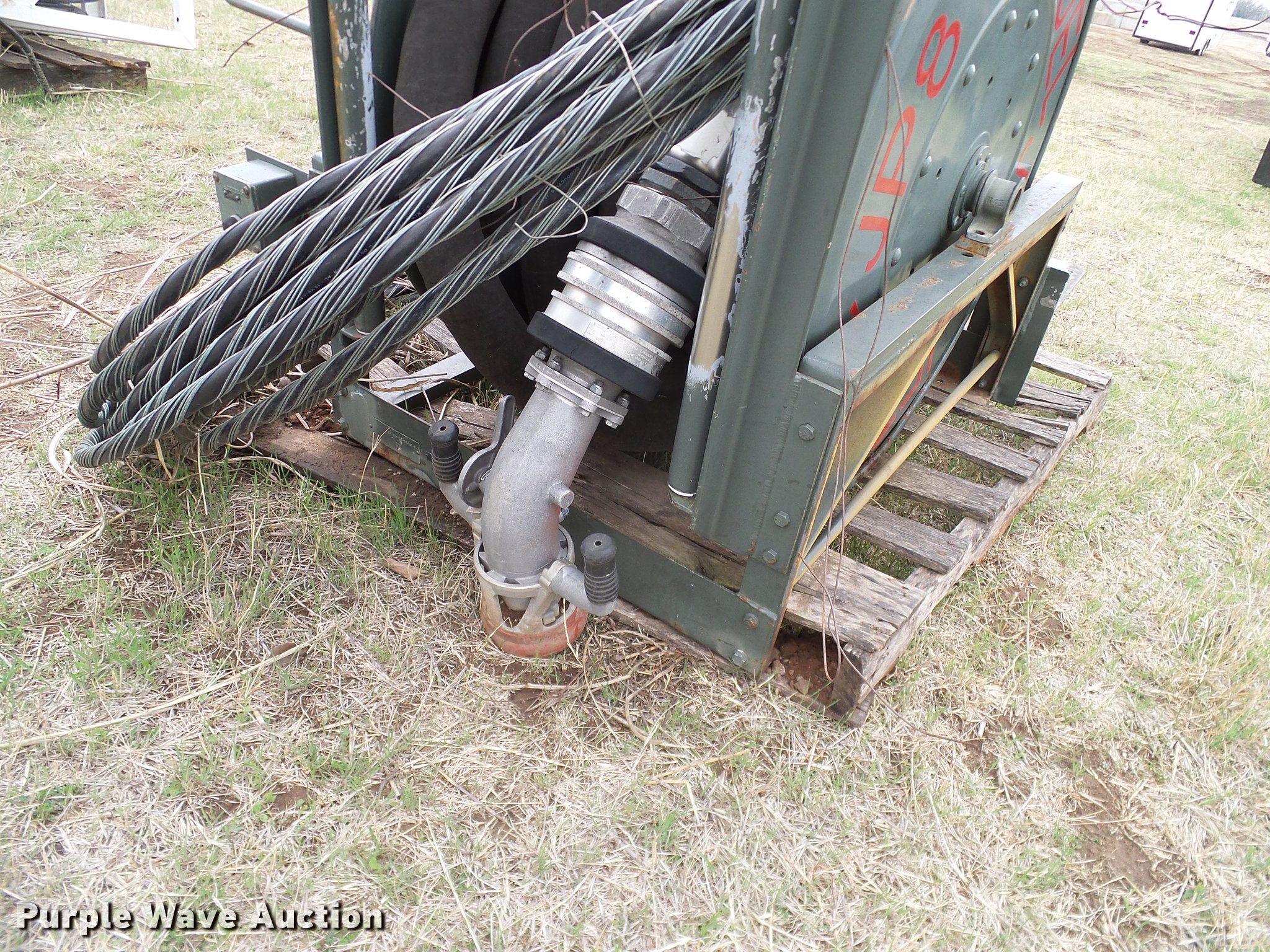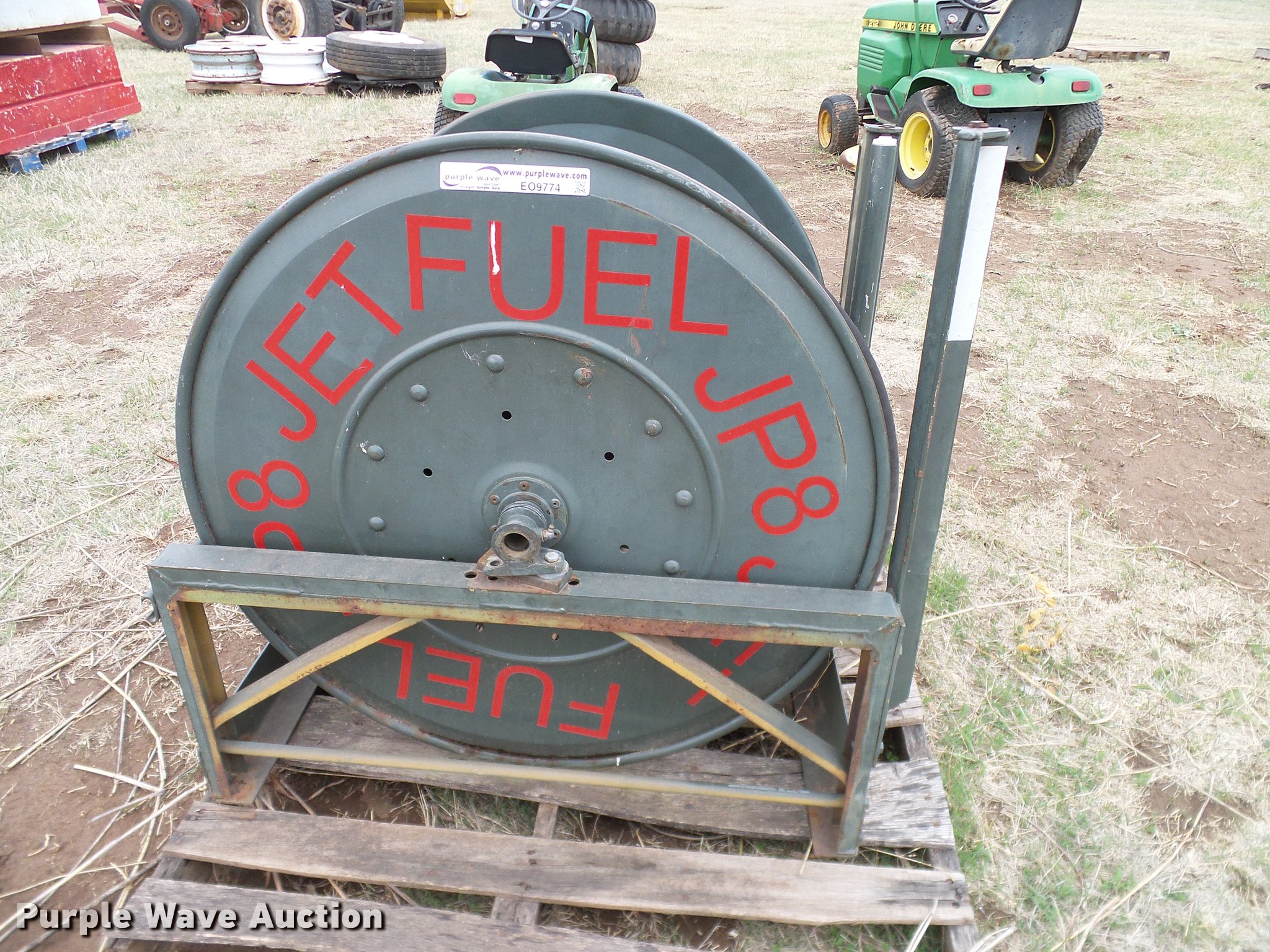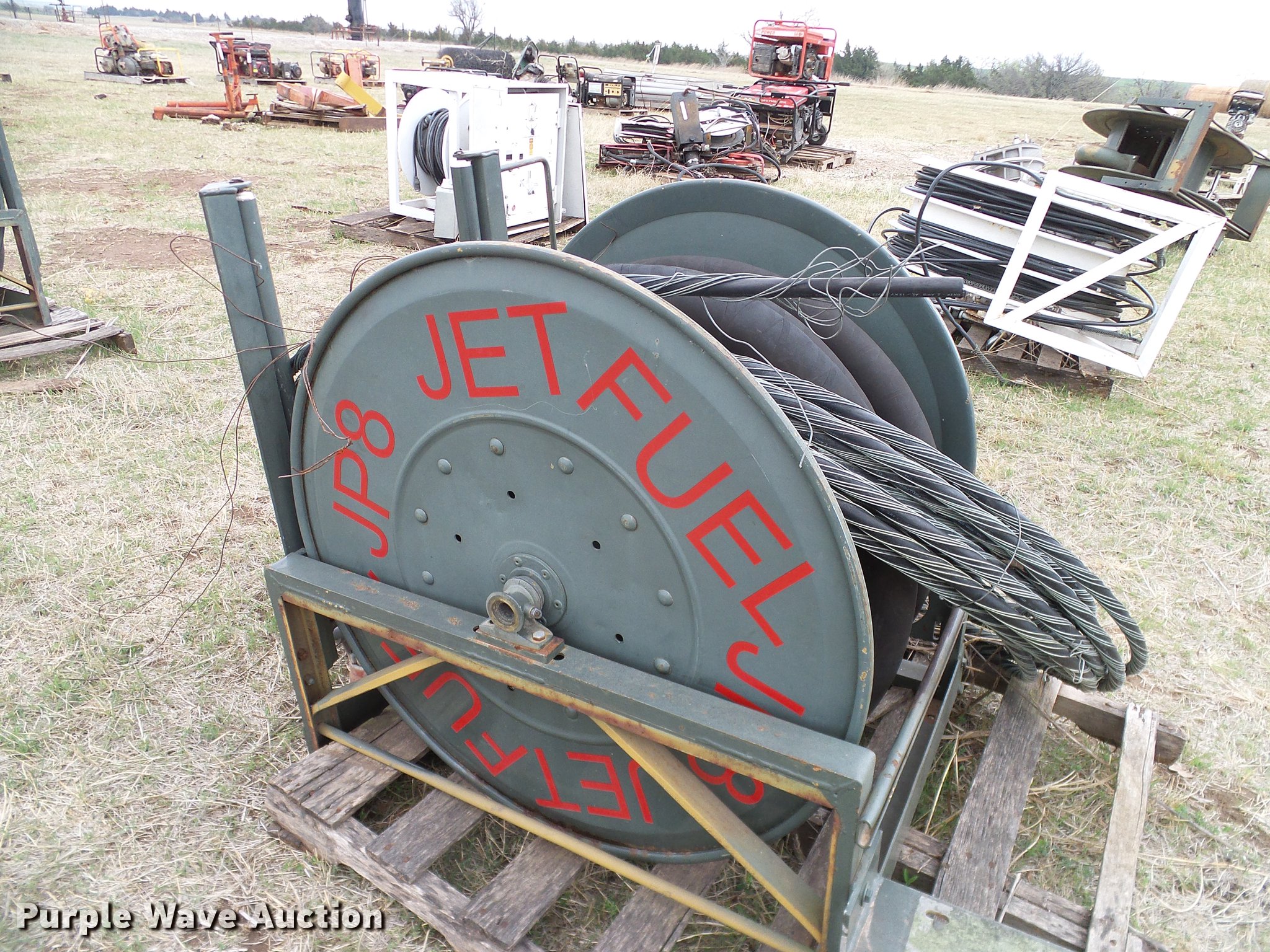 Purple Wave is selling a used Fuel and Lube in Oklahoma. This item is a Fuel and lube reels and hoses with the following: (4) JP8 fuel reels, One with hose, Two with hose and nozzle, One without hose, (6) lube reels, Assorted hoses, Assorted sizes and conditions