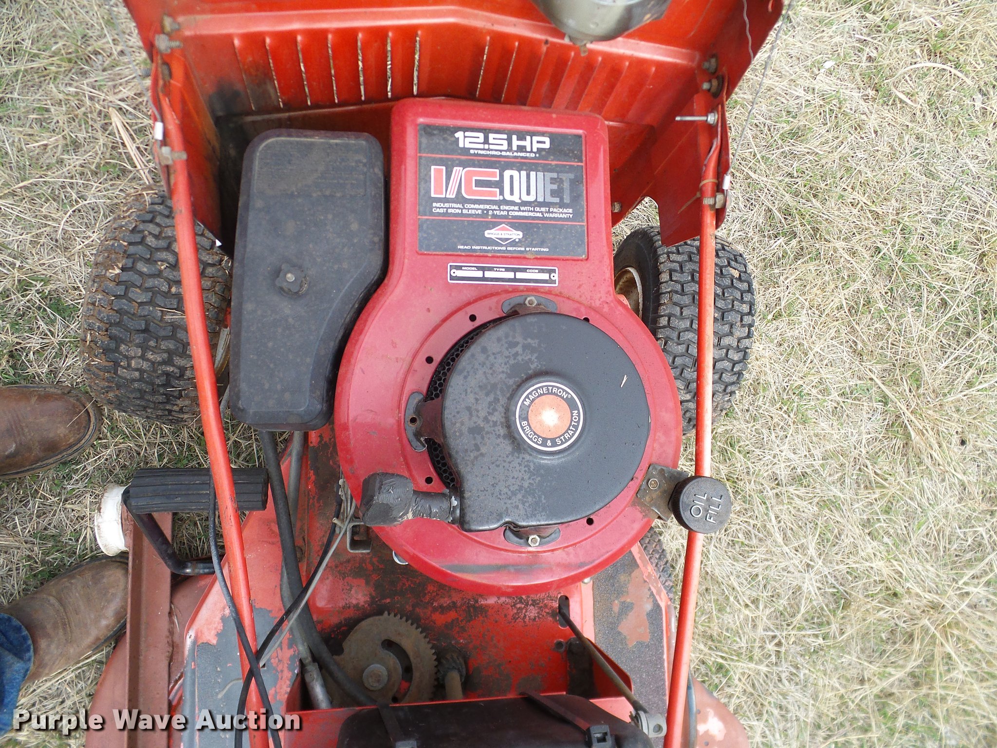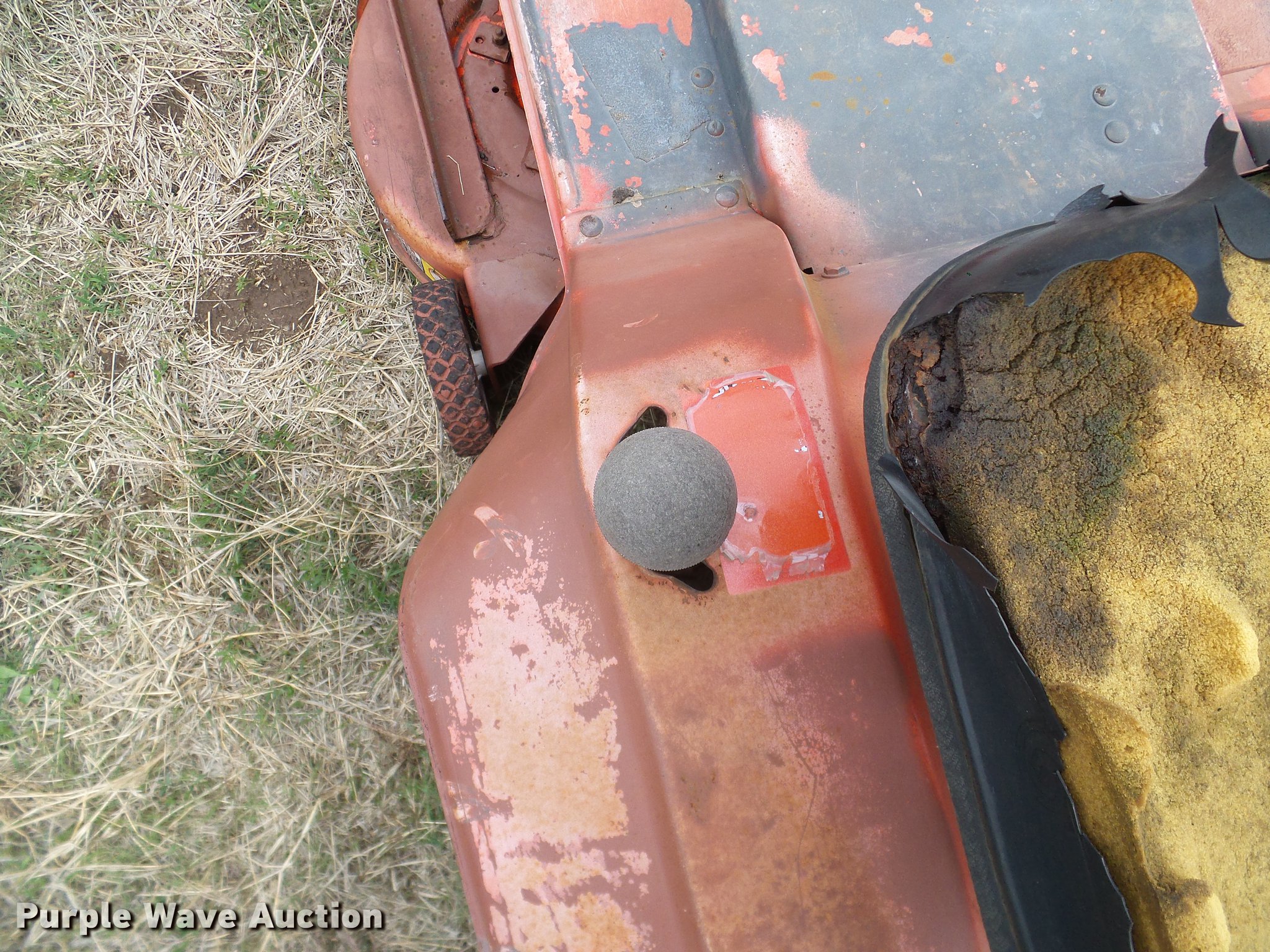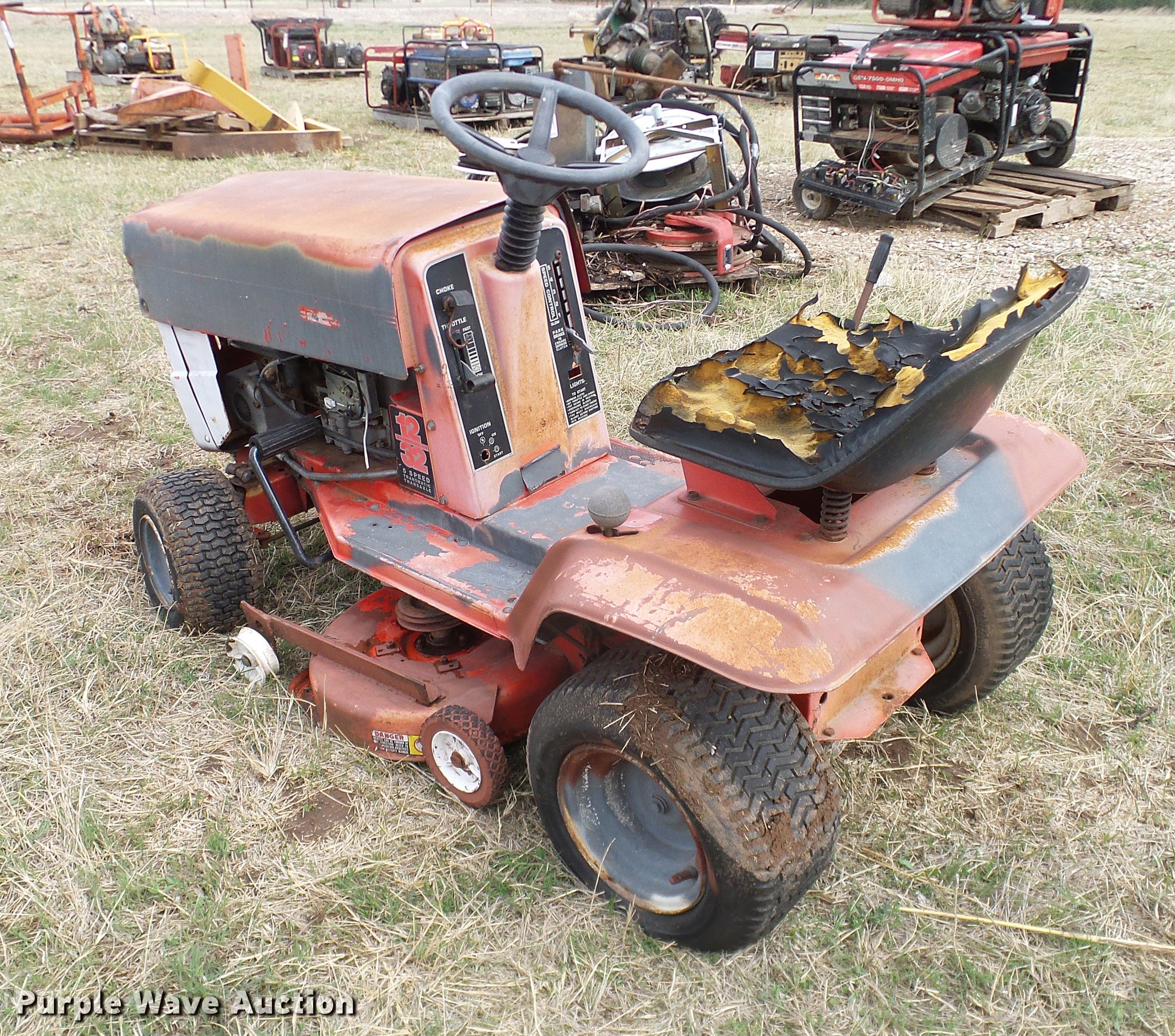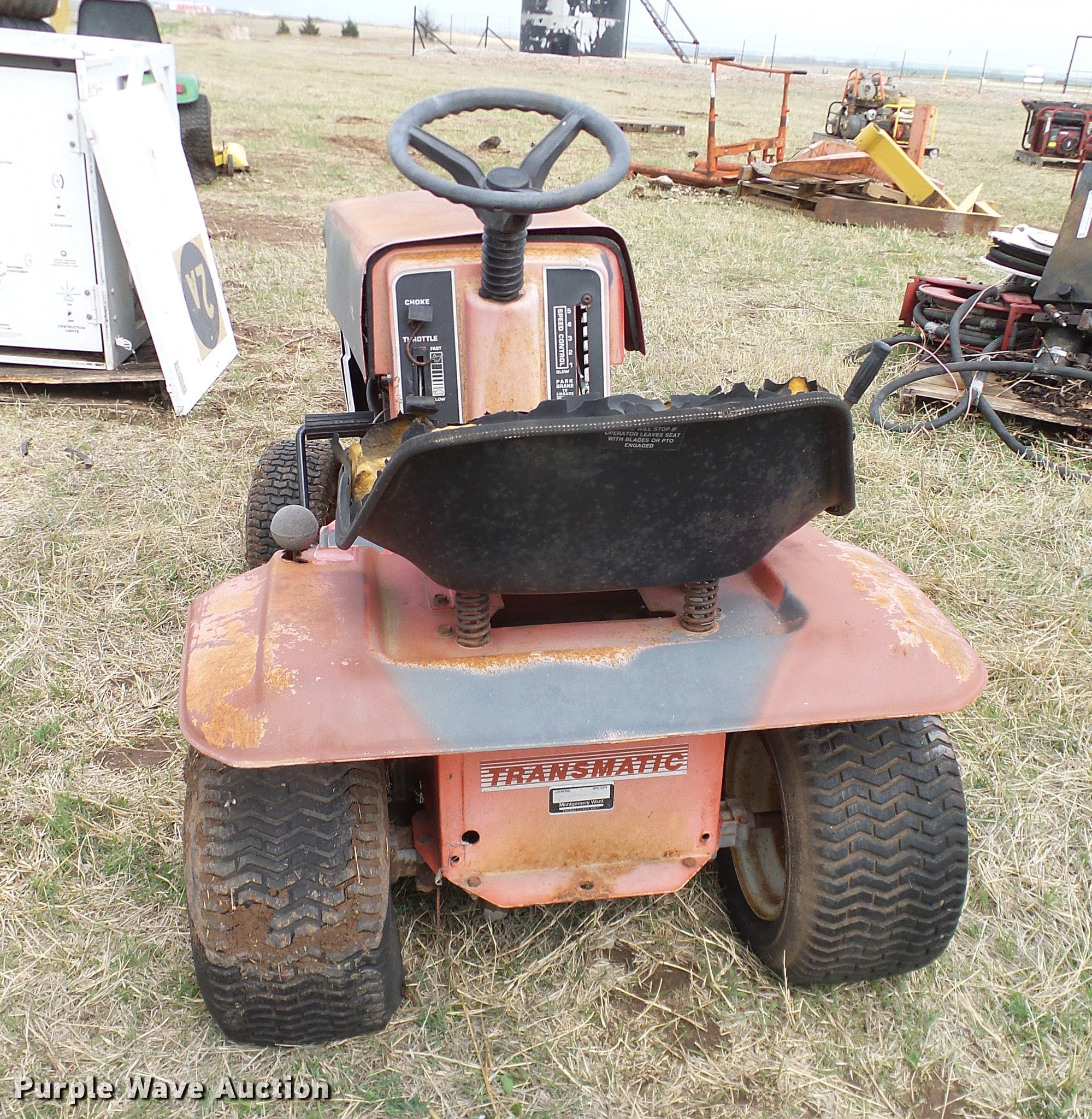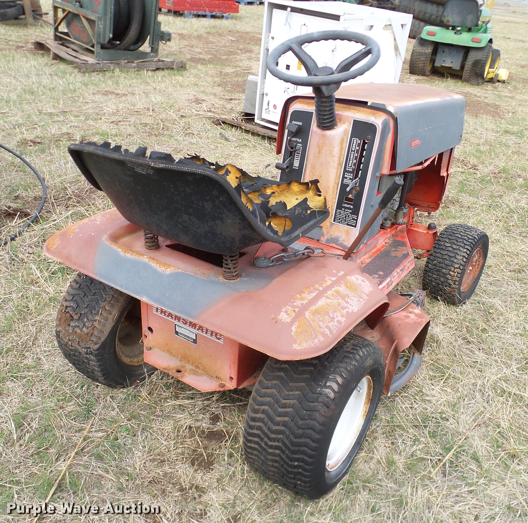 Purple Wave is selling a used Lawn Mower in Oklahoma. This item is a Lawn mowers and tiller with the following: John Deere 110 lawn mower, No engine, Serial 15101ZM, John Deere 212 lawn mower, Single cylinder gas engine, Flat tires, Unknown operating condition, Serial 55075M, Transmatic lawn mower, 32" cut, Briggs & Stratton single cylinder gas engine, 12.5 HP, Flat tires, Unknown operating condition, Finish mower, 72"W, 540 PTO, Three point, Non-operational unit, parts missing, Roto-Hog tiller, 19"W, Single cylinder gas engine, Flat tires, Unknown operating condition