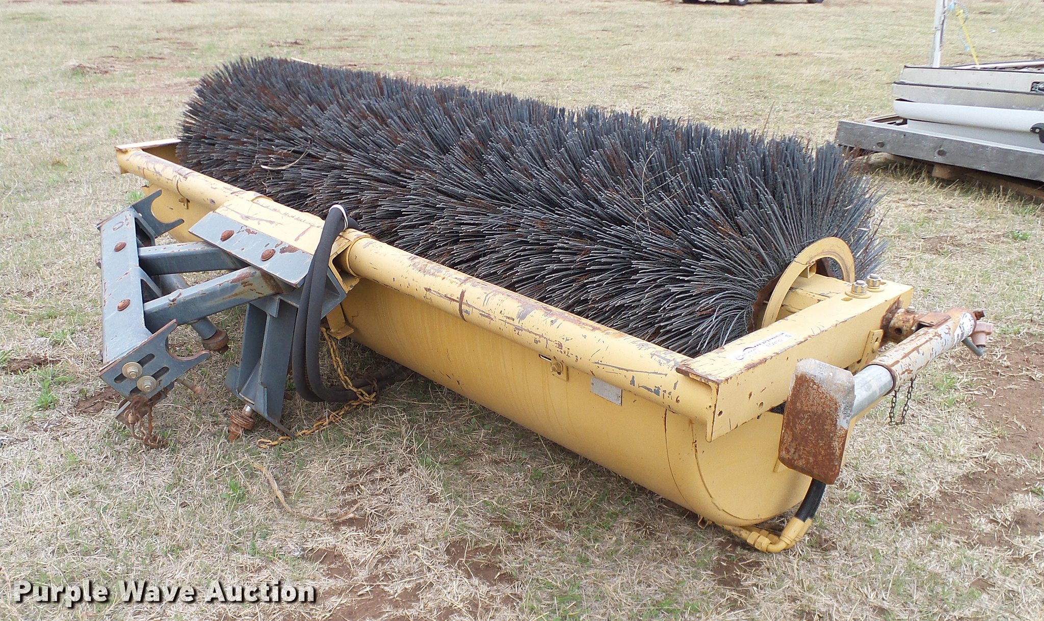Purple Wave is selling a used Skid Steer Attach. in Oklahoma. This item is a Tiger broom with the following: 104"W x 30"D diameter