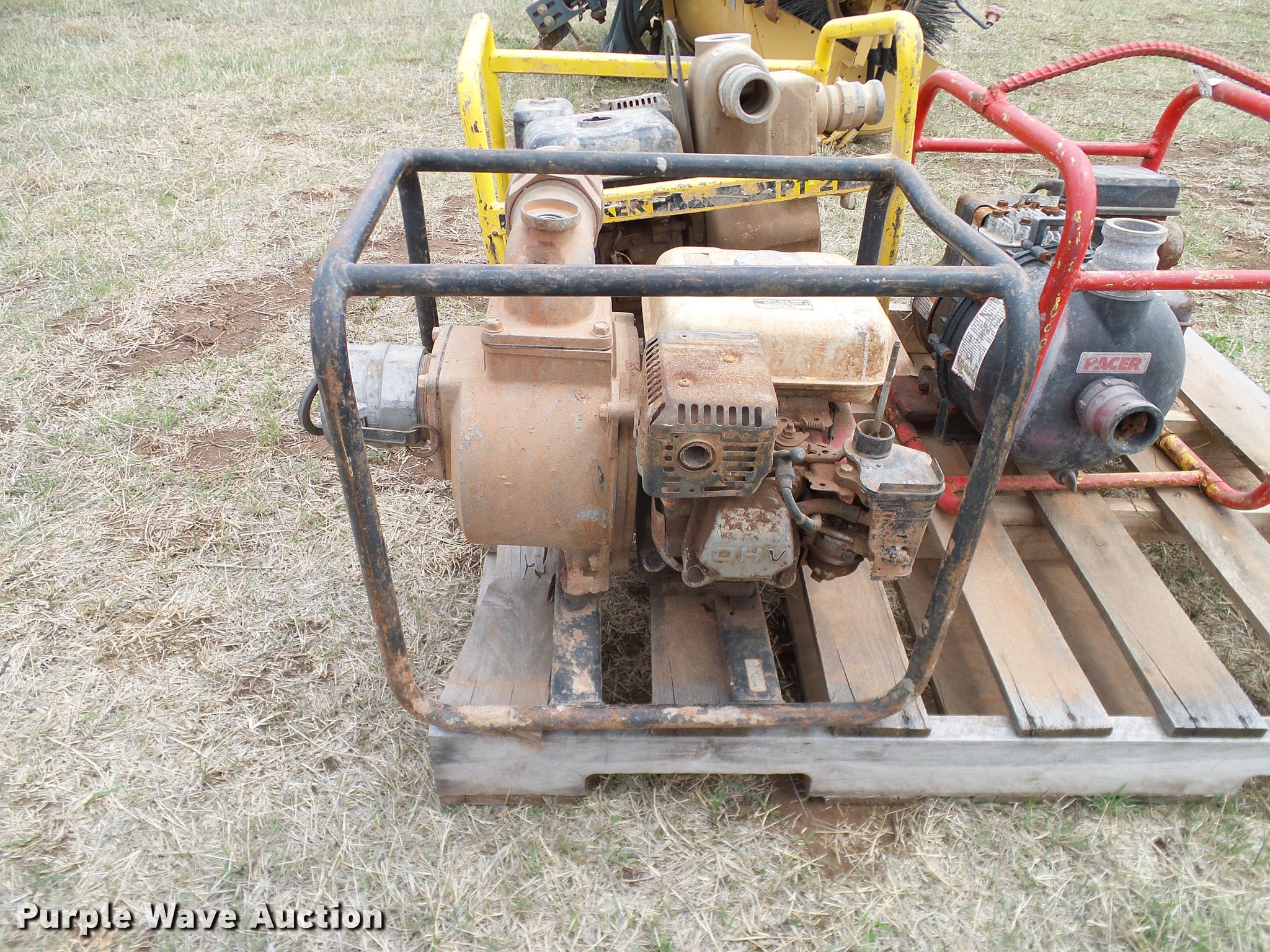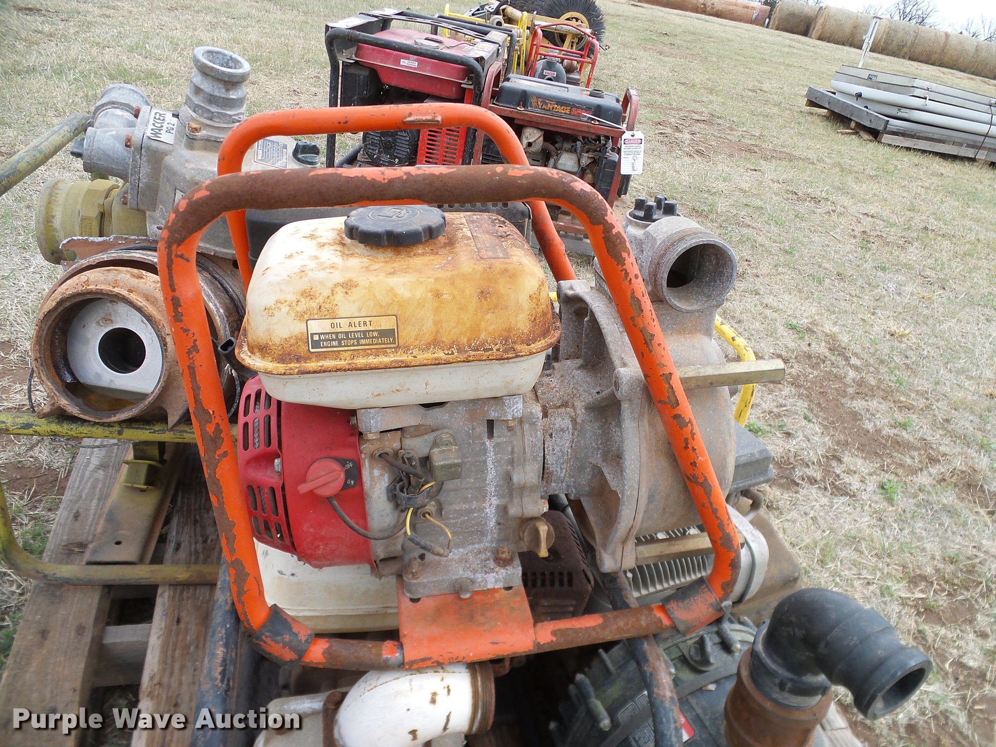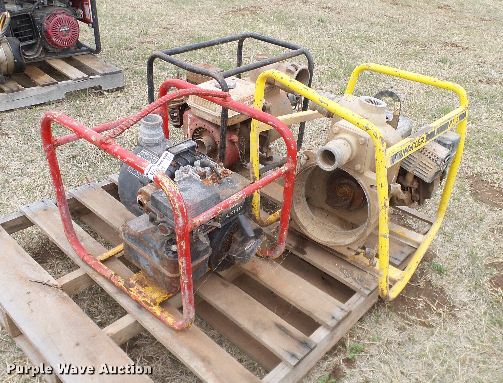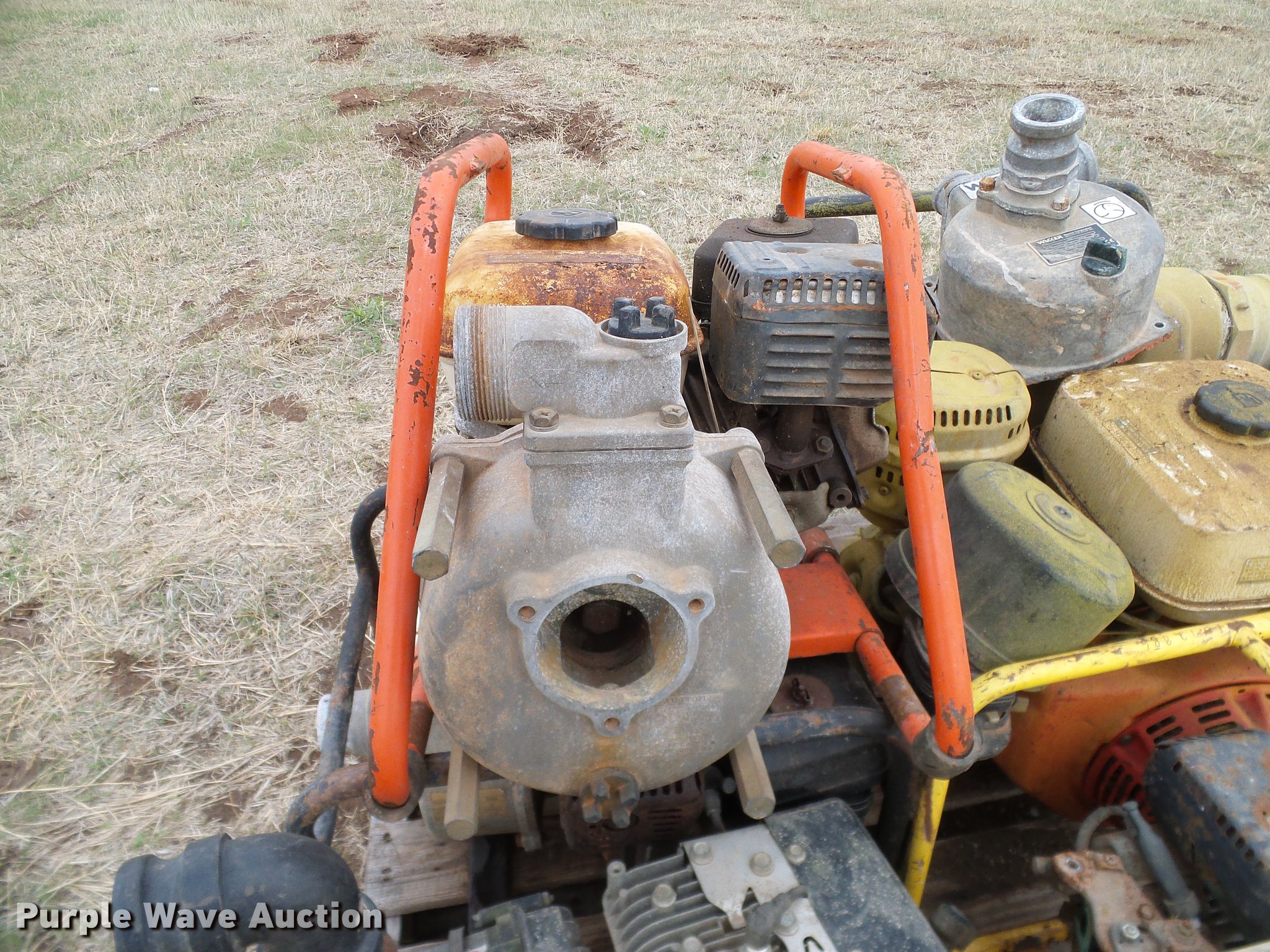 Purple Wave is selling a used Pump in Oklahoma. This item is a (8) trash pumps with the following: Pacer, (2) Wacker, (3) Honda, Unknown operating conditions