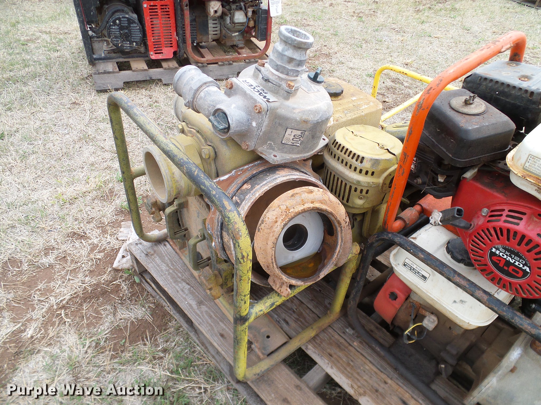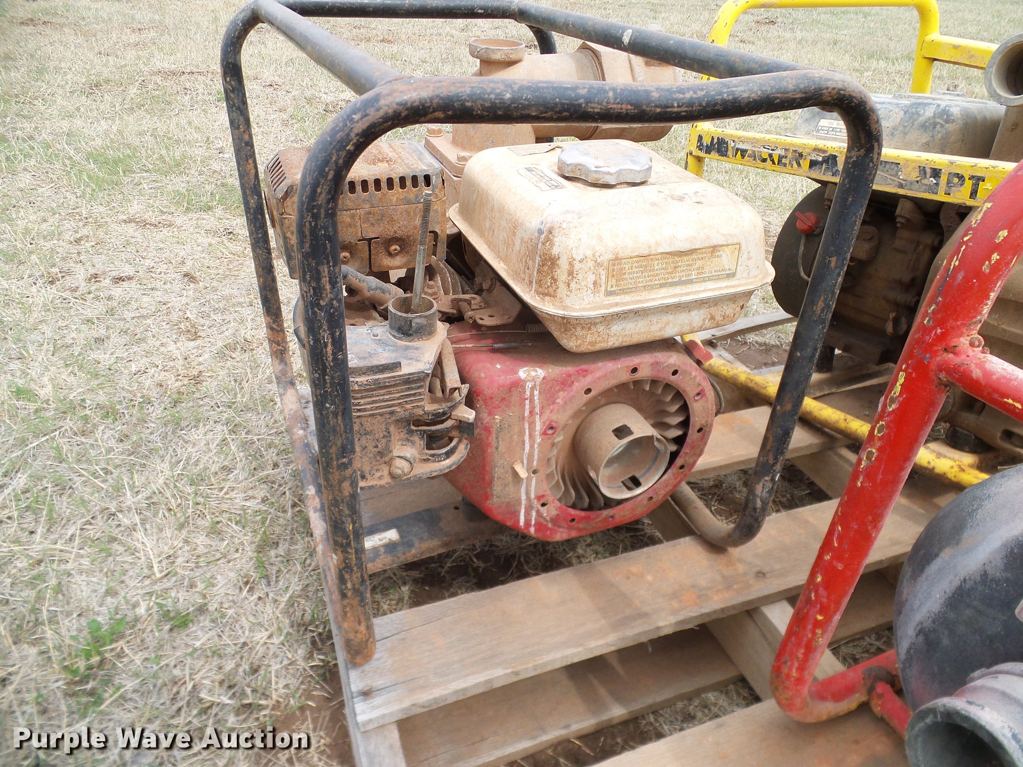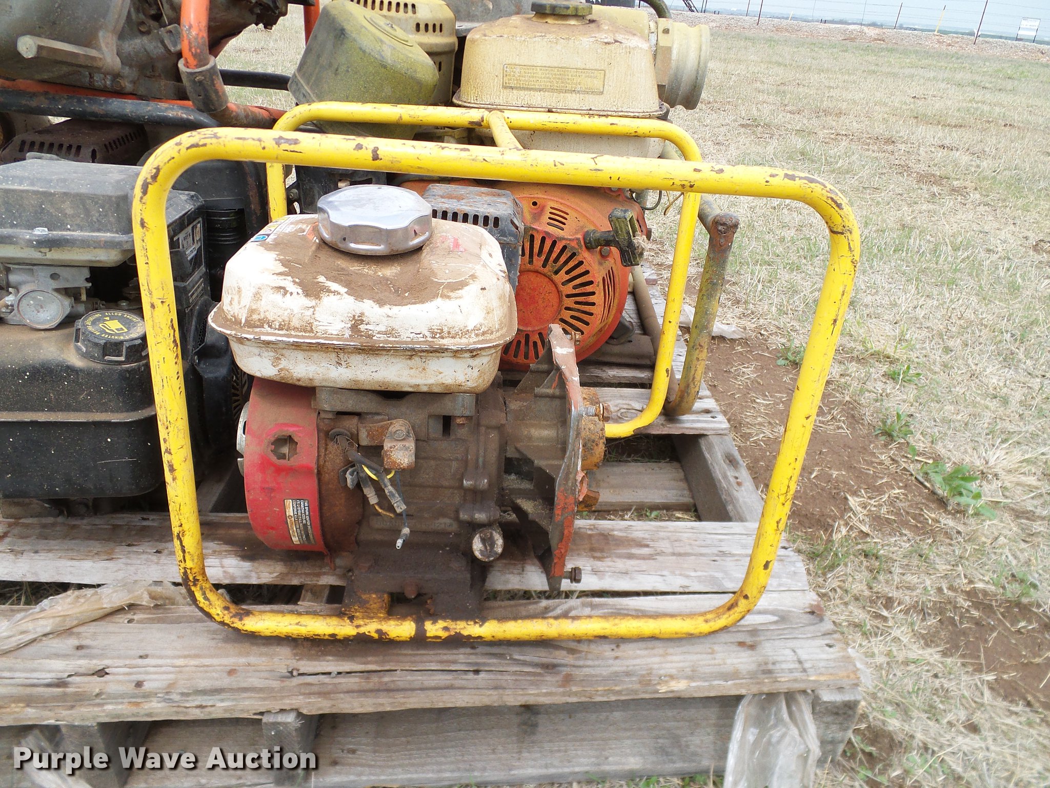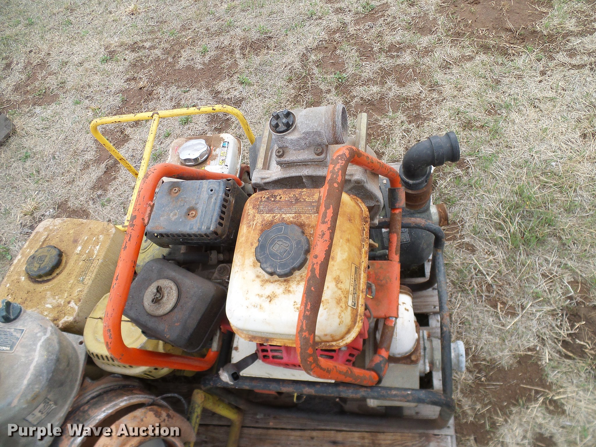 Purple Wave is selling a used Pump in Oklahoma. This item is a (8) trash pumps with the following: Pacer, (2) Wacker, (3) Honda, Unknown operating conditions