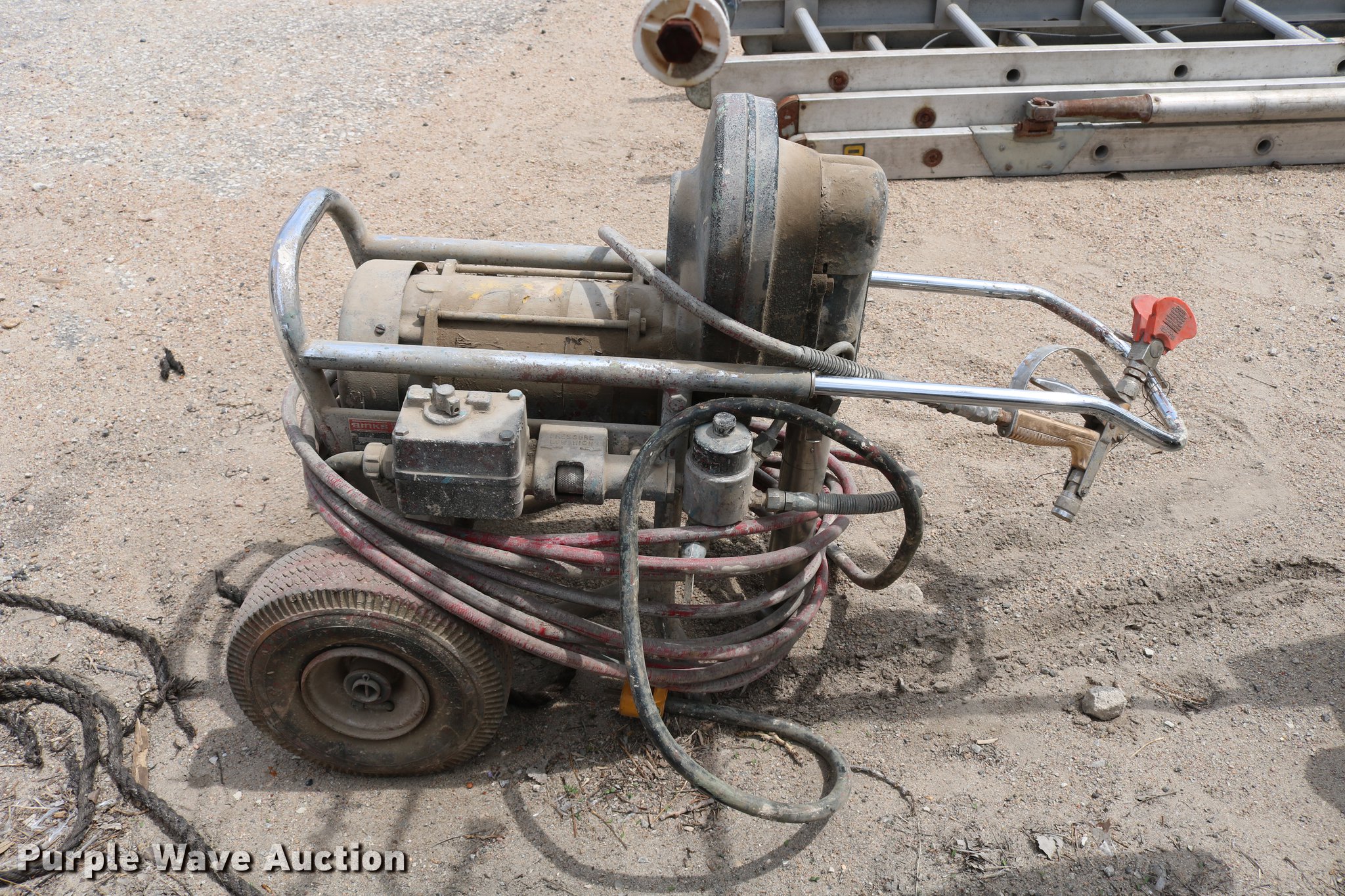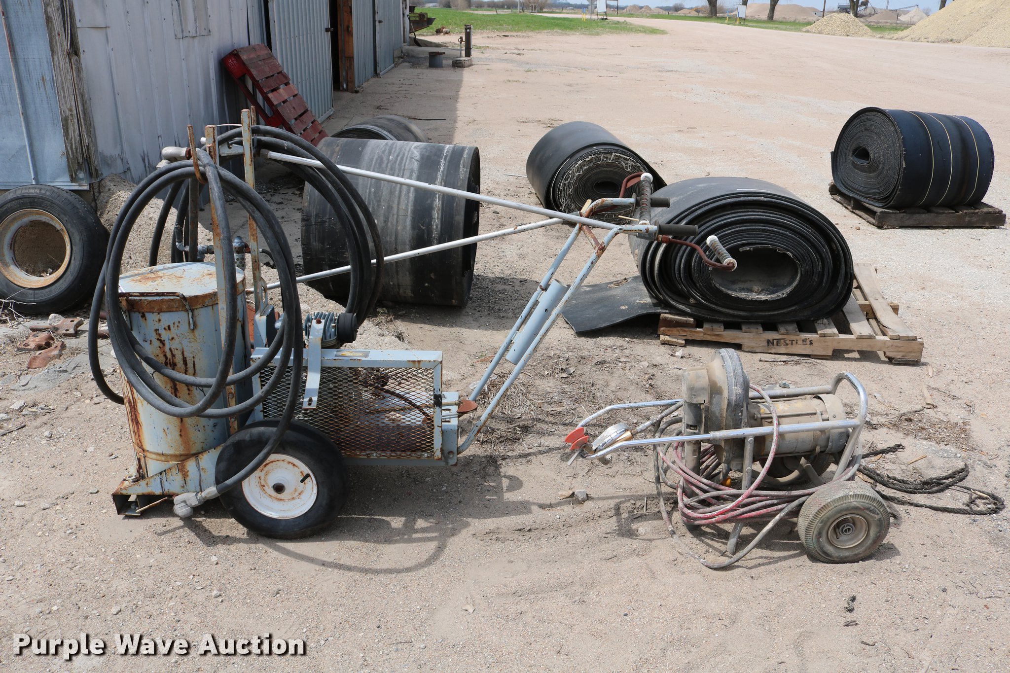 Purple Wave is selling a used Tools in Kansas. This item is a (2) paint machines with the following: Pneumatic power roller, Unknown operating condition, Binks Super Bee airless paint sprayer, 110V, Unknown operating condition
