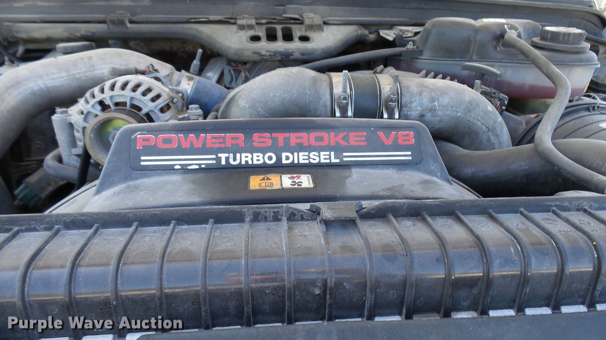 Purple Wave is selling a used 3/4 or 1 Ton Pickup or Van in Missouri. This item is a 2003 Ford F350 Super Duty XL Crew Cab flatbed pickup truck with the following: 254,869 miles on odometer, 6.0L V8 OHV 32V turbo diesel engine, Five speed manual transmission, Four wheel drive, AC and heat, AM/FM, Vinyl interior, Trailer brake controller, On-board air compressor, External lines, 9'L x 8'W flatbed, Headache rack, Front leveling kit, EGR delete, Cylinder head studs, Gooseneck hitch, Receiver hitch, Trailer wiring, 235/85R16 tires