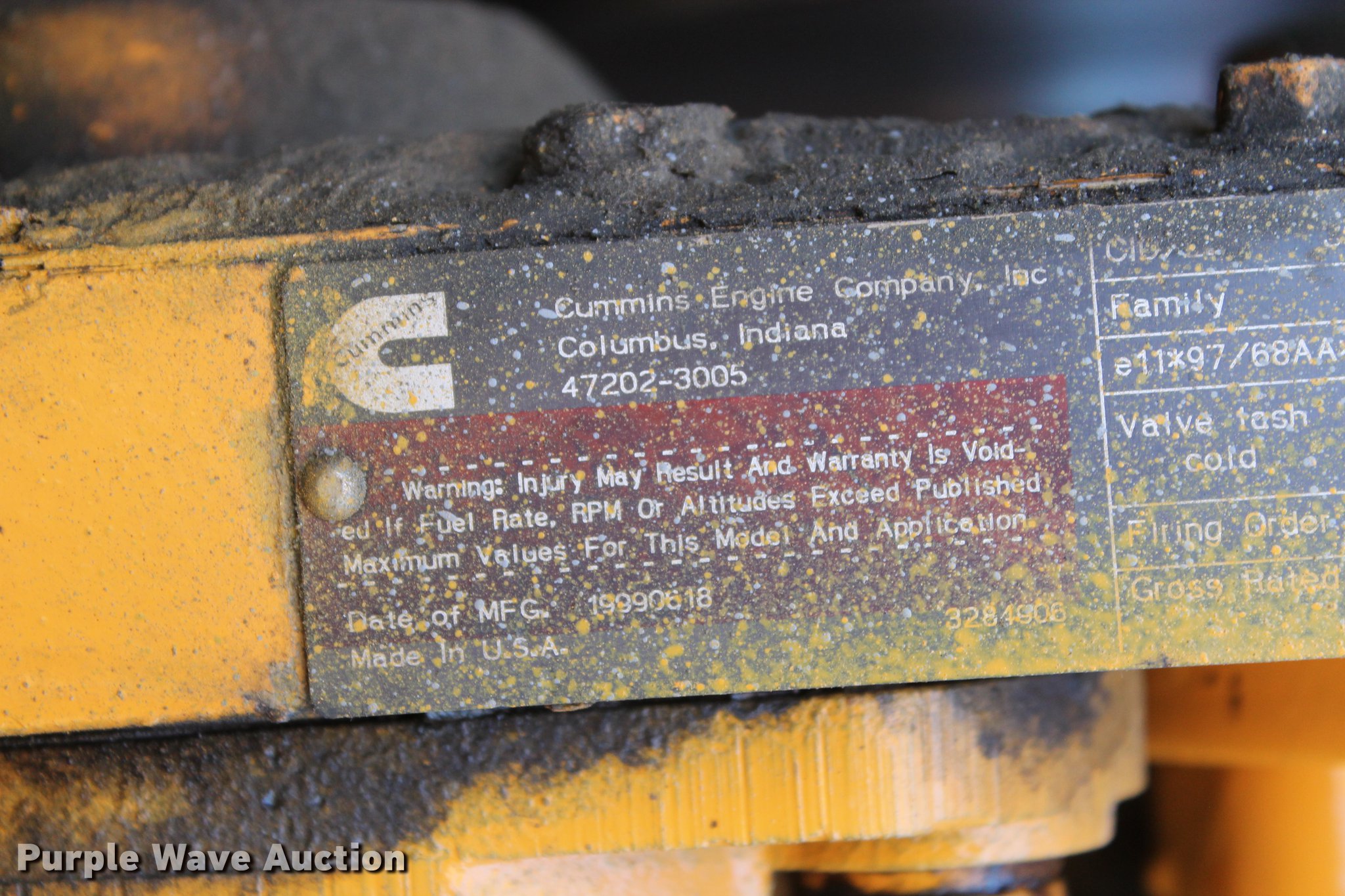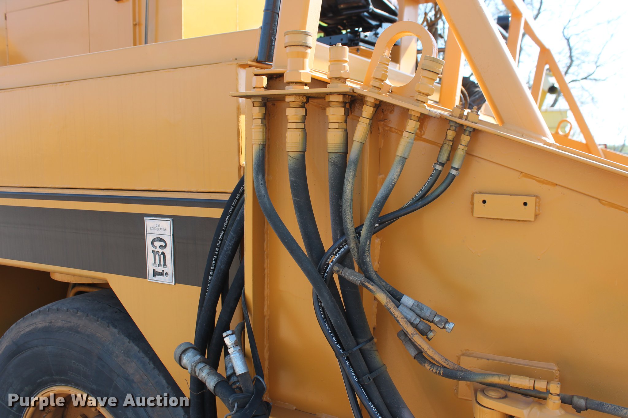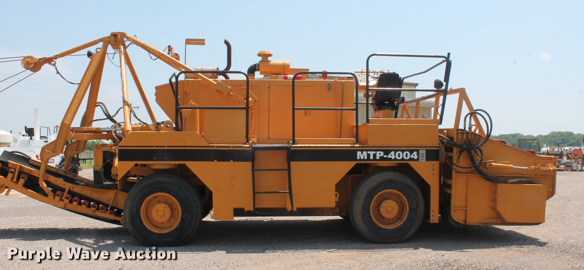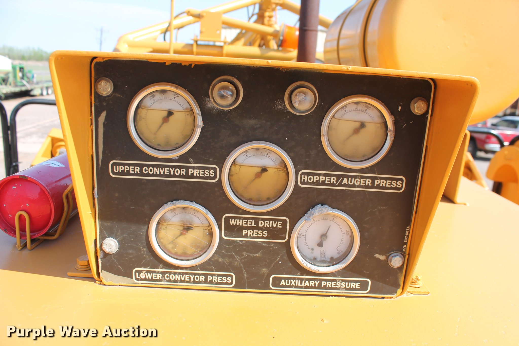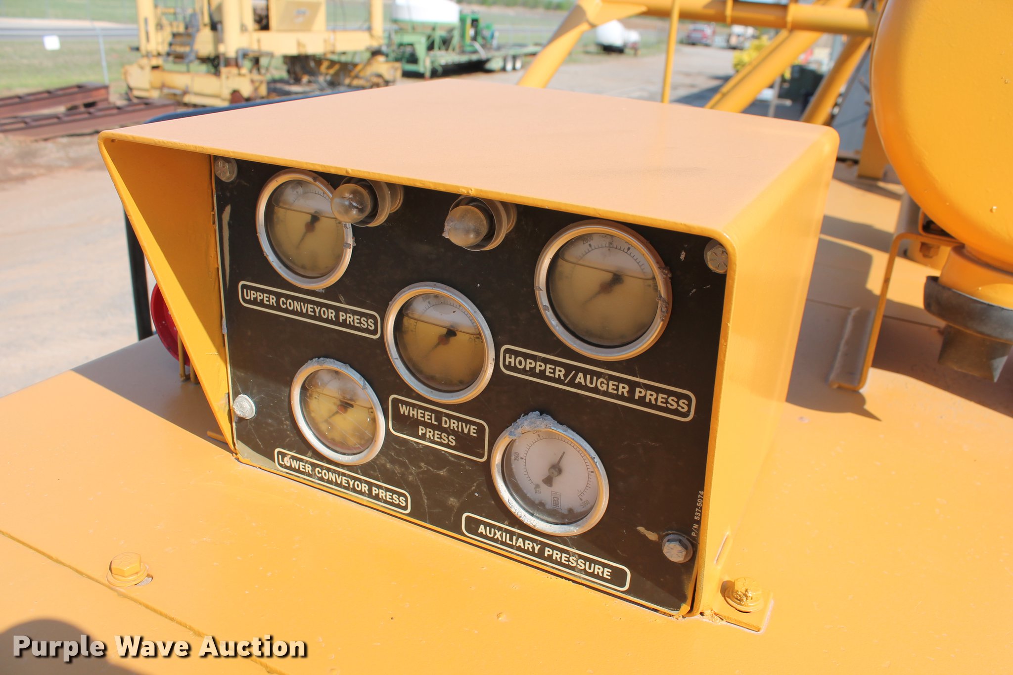 Purple Wave is selling a used Windrow or Belt Placer in Oklahoma. This item is a 1999 CMI MTP4004CP concrete placer with the following: 2,107 hours on meter, Cummins B5.9-C 5.9L six cylinder turbo diesel engine, 175 HP, Serial 45864929, Hydrostatic transmission, Crab steer, Circle steer, Rear steer, 11'W hopper, 36"W rollers, 42"W rubber belt feed conveyor, 30'L x 36"W rubber belt discharge conveyor, 85 degree swing, Work lights, 445/65R22.5 tires, Serial 537180