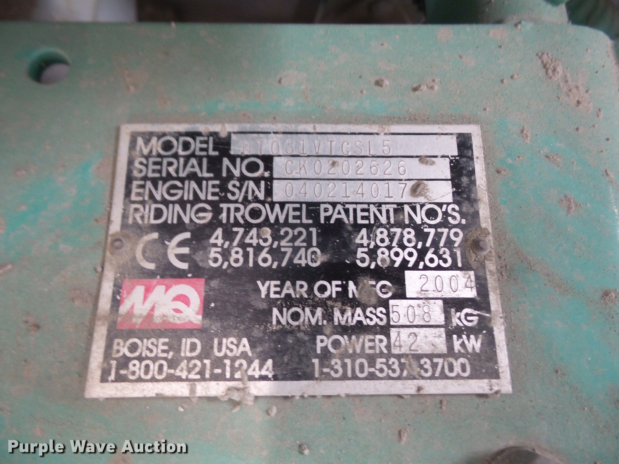 2004 Whiteman HT031VTCSL5 power trowel has sold in Kansas City, Kansas for $4400. Item DB6170 sold on May 31st, 2018.