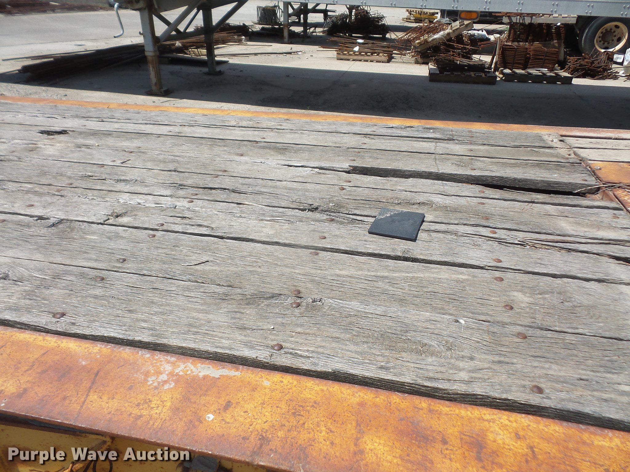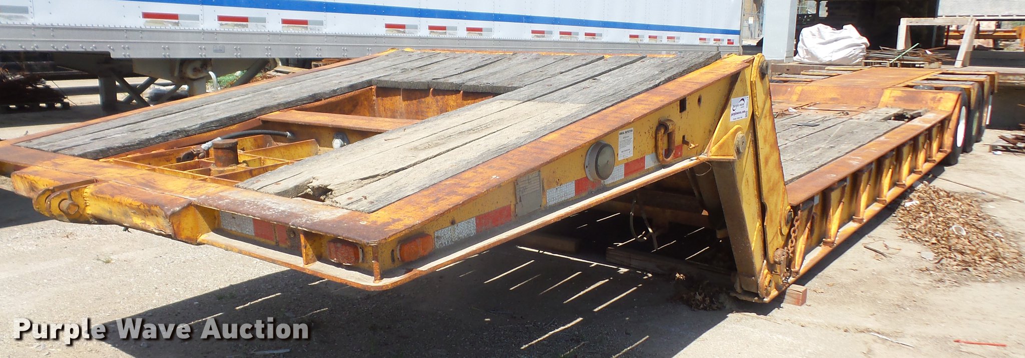 Purple Wave is selling a used Equip. Trailer in Kansas. This item is a 1972 Load King 403DPP lowboy equipment trailer with the following: 40'L x 95.5"W overall, 8'L top deck, 16.5' well length, 12.5'L rear deck, Wood deck, 12" swing-out outriggers, Self contained hydraulics, Fifth wheel plate, Dual leg landing gear, Spring suspension, Air brakes, Tandem axle, 10.00R15 tires, GVWR 80,000 lbs, Trailer was in flood, Engine will not run