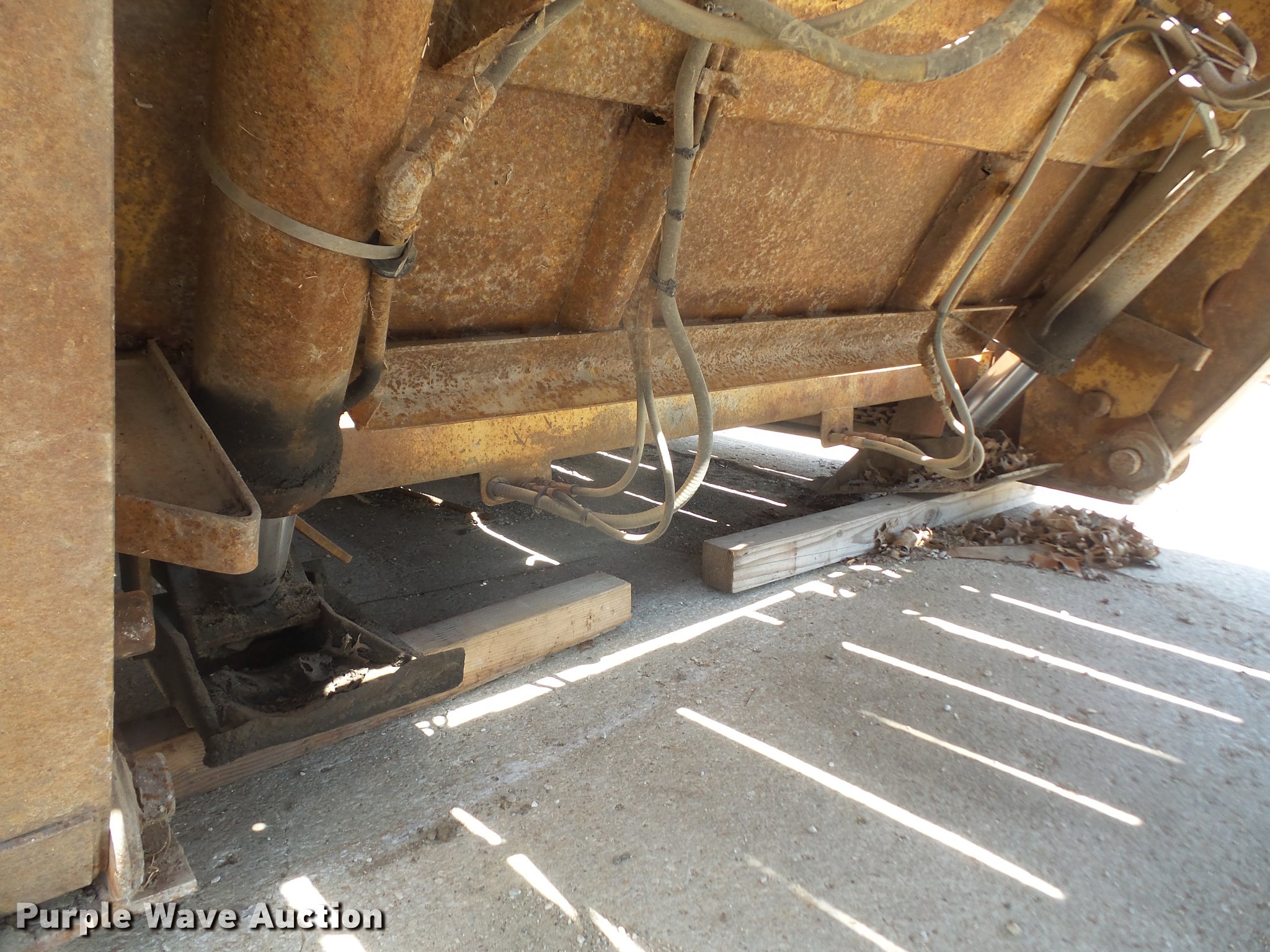 1972 Load King 403DPP lowboy equipment trailer. 40'L x 95.5"W overall , 8'L top deck, 16.5' well length, 12.5'L rear deck, Wood deck, 12" swing-out outriggers, Self contained hydraulics, Fifth wheel plate, Dual leg landing gear, Spring suspension, Air brakes, Tandem axle, 10.00R15 tires, GVWR 80,000 lbs, Trailer was in flood Engine will not run. Kansas title. 722413. John Rohrer Contracting Company. 2820 Roe Ln. Kansas City, KS 66103