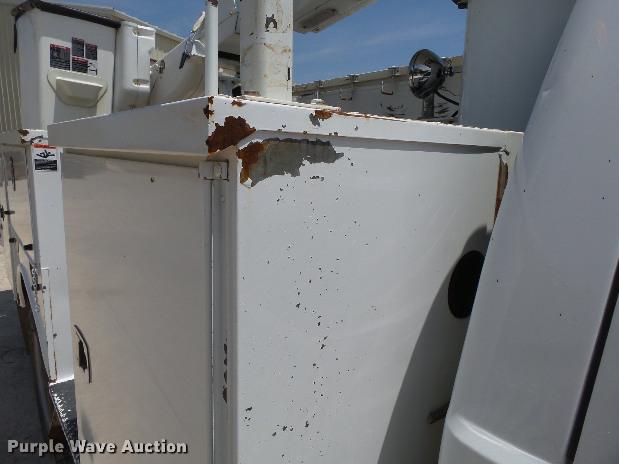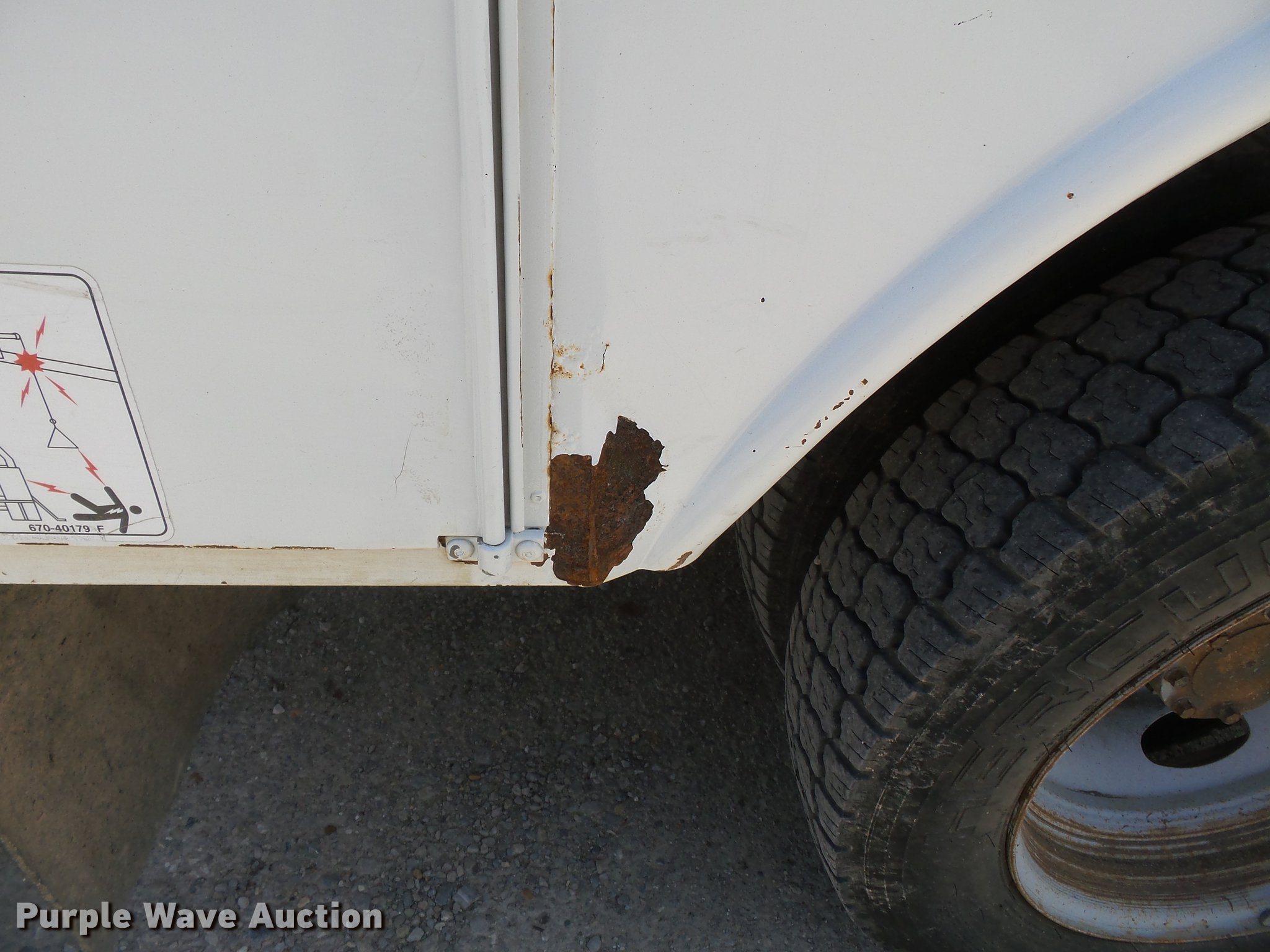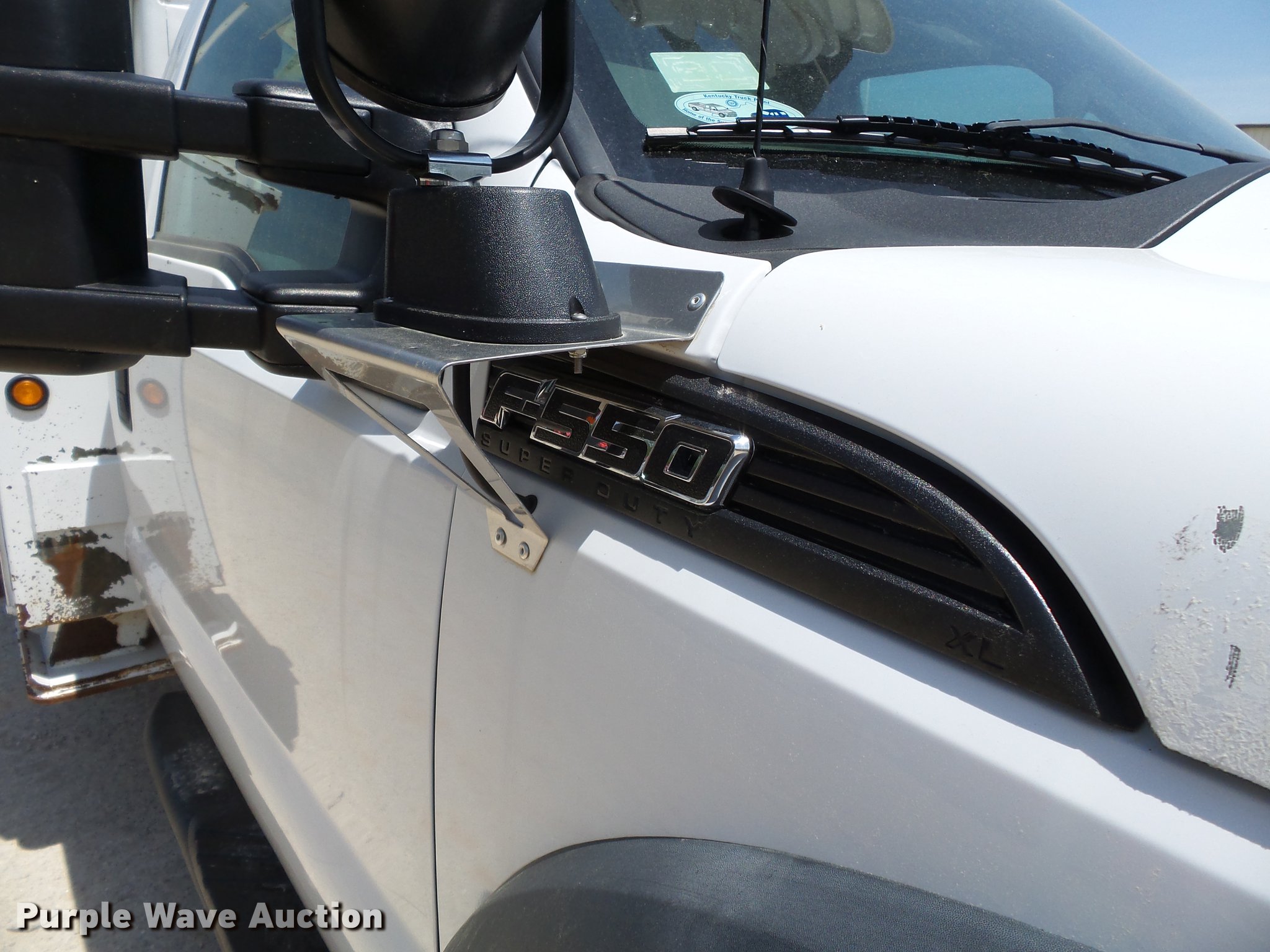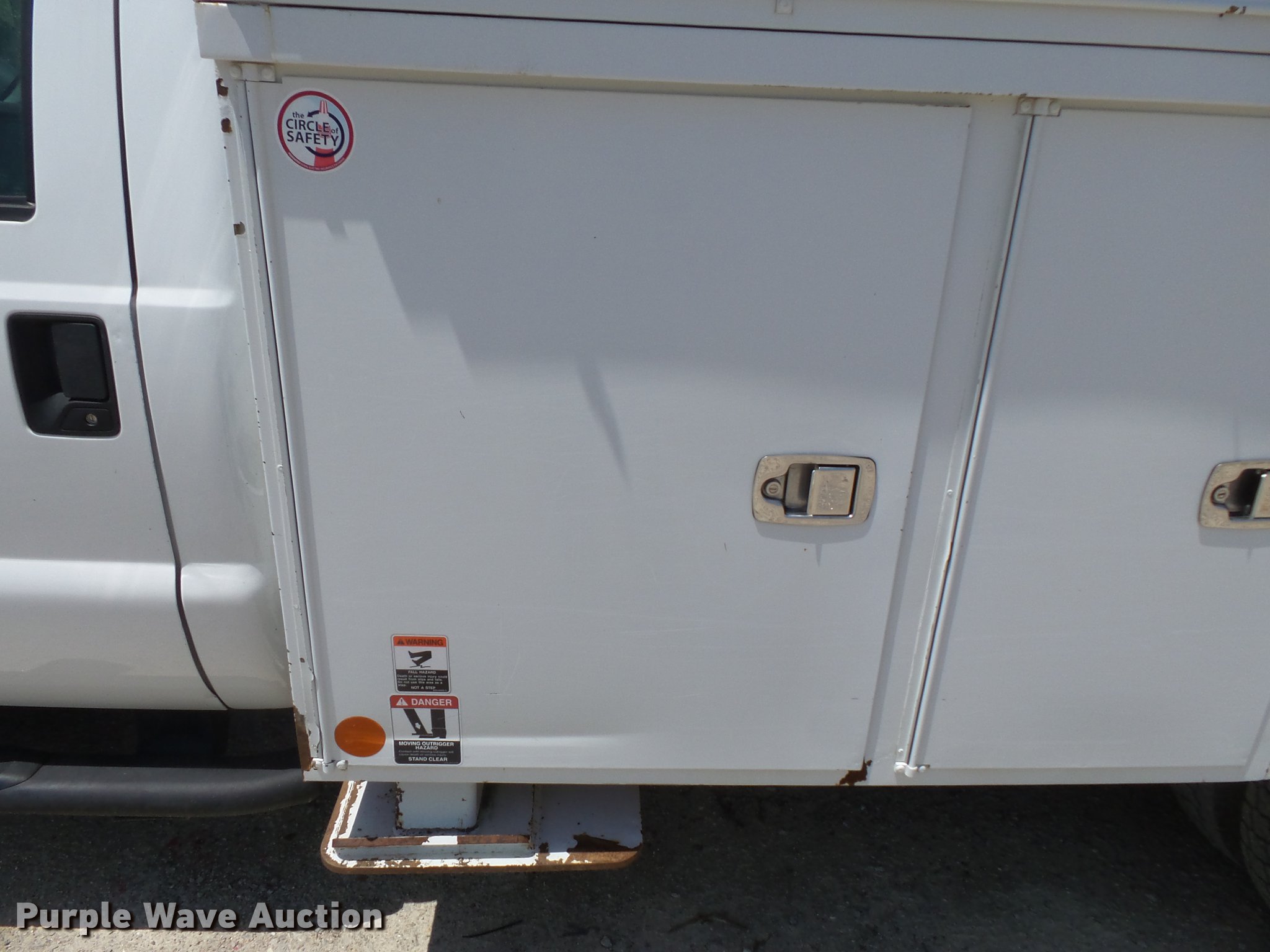 Purple Wave is selling a used Bucket Truck in Missouri. This item is a 2011 Ford F550 Super Duty bucket truck with the following: 157,645 miles on odometer, 585 PTO hours on meter, 6.8L V10 gas engine, Automatic transmission, AC and heat, AM/FM, Power windows, locks, and mirrors, Suspension seat, Auxiliary controls, Backup camera, Backup alarm, PTO, Beacon light, Front tow hooks, Altec 13'4"L utility bed, Shelving, Slide-out drawers, Catwalk, Work lights, Serial 2719081708611, Warn winch, 15,000 lbs capacity, M4-TE winch, 800 lbs capacity, 2011 Altec AT40M boom, 400 lbs maximum lift capcity, 40' maximum lift height, Man basket, Platform and ground controls, Boom rotation, Articulating, insulated, telescopic boom, Rope material handler, Certification valid through September 2018, Single fuel tank, Pintle hitch, Trailer wiring, 165" wheelbase, Spring suspension, Hydraulic brakes, 225/70R19.5 tires, GVWR 19,500 lbs, View Aerial Device Test Report