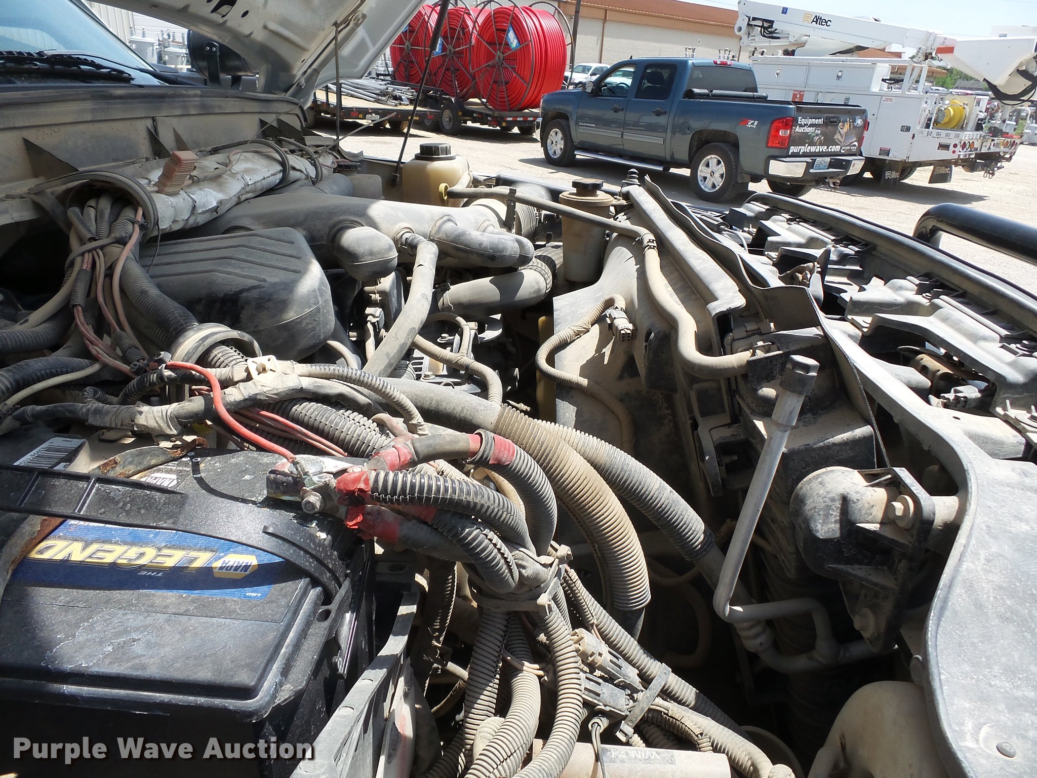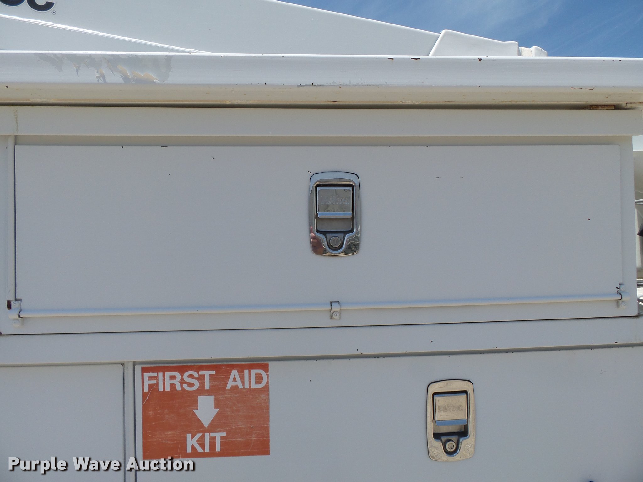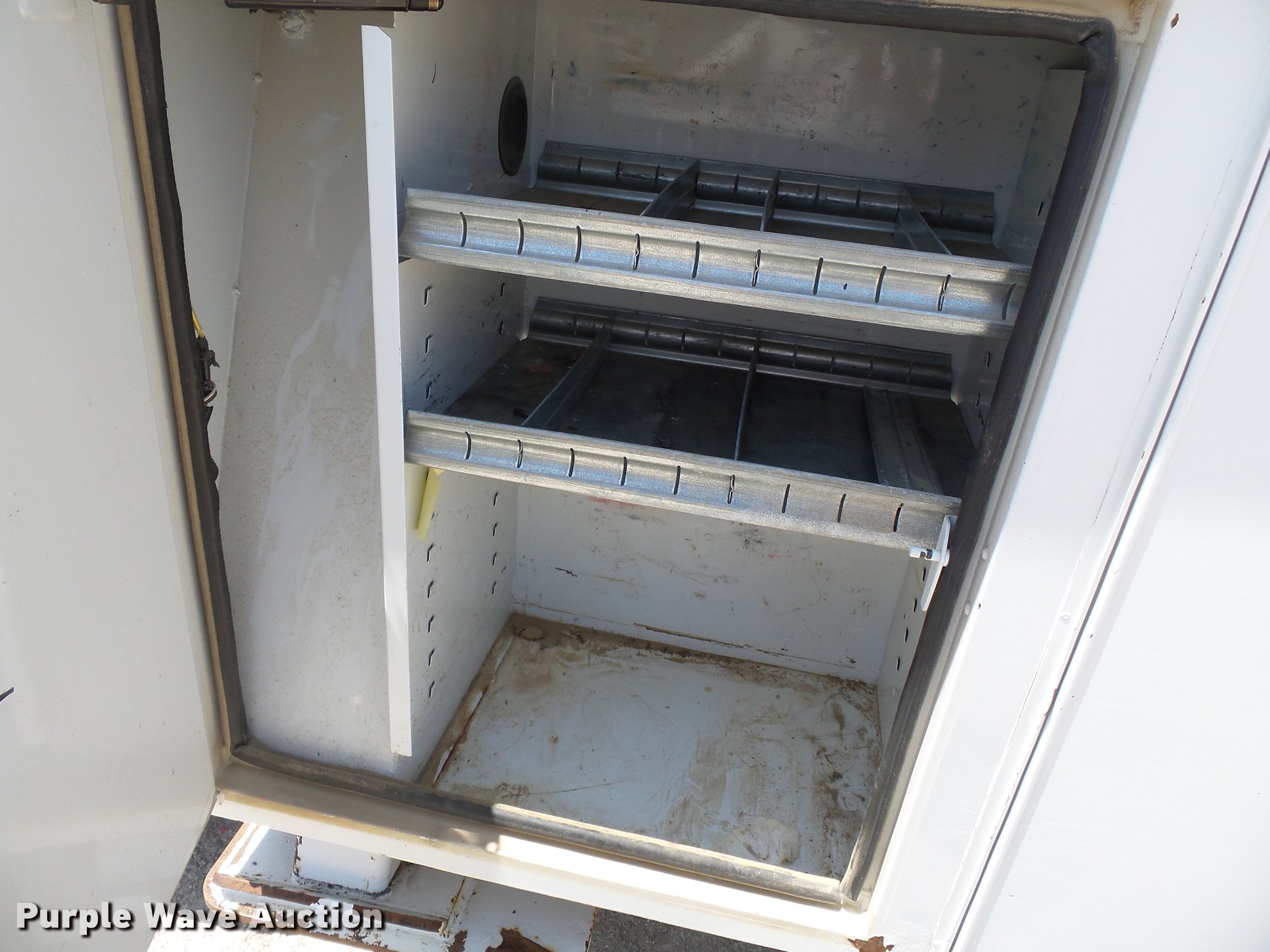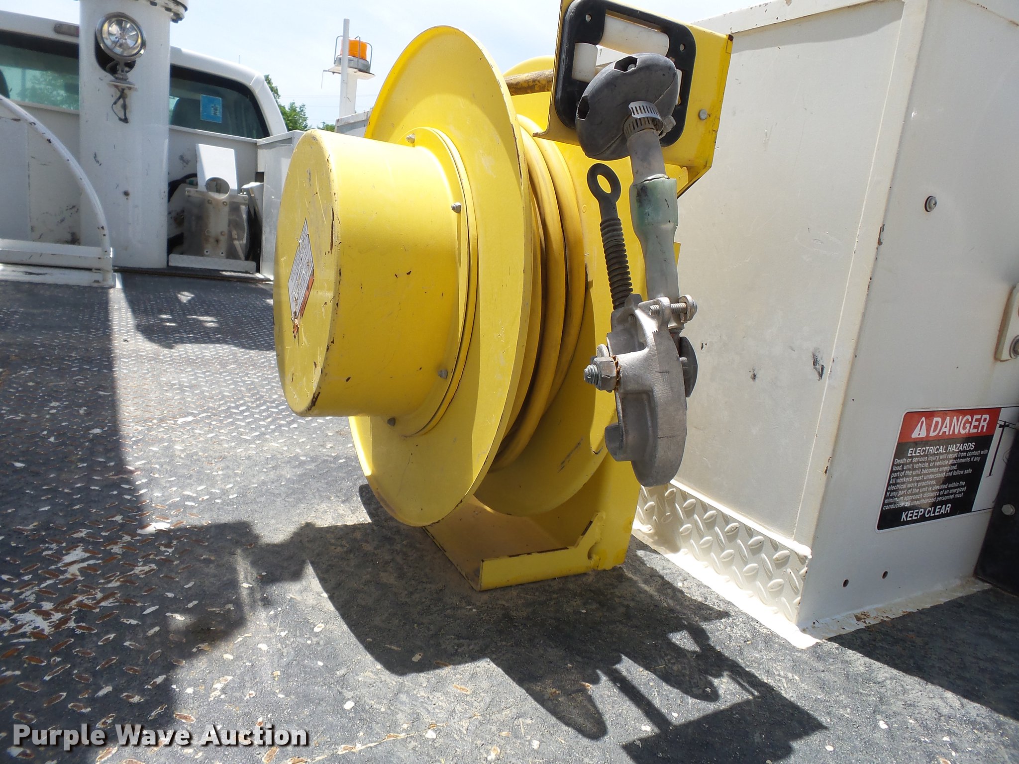Purple Wave is selling a used Bucket Truck in Missouri. This item is a 2011 Ford F550 Super Duty bucket truck with the following: 157,645 miles on odometer, 585 PTO hours on meter, 6.8L V10 gas engine, Automatic transmission, AC and heat, AM/FM, Power windows, locks, and mirrors, Suspension seat, Auxiliary controls, Backup camera, Backup alarm, PTO, Beacon light, Front tow hooks, Altec 13'4"L utility bed, Shelving, Slide-out drawers, Catwalk, Work lights, Serial 2719081708611, Warn winch, 15,000 lbs capacity, M4-TE winch, 800 lbs capacity, 2011 Altec AT40M boom, 400 lbs maximum lift capcity, 40' maximum lift height, Man basket, Platform and ground controls, Boom rotation, Articulating, insulated, telescopic boom, Rope material handler, Certification valid through September 2018, Single fuel tank, Pintle hitch, Trailer wiring, 165" wheelbase, Spring suspension, Hydraulic brakes, 225/70R19.5 tires, GVWR 19,500 lbs, View Aerial Device Test Report