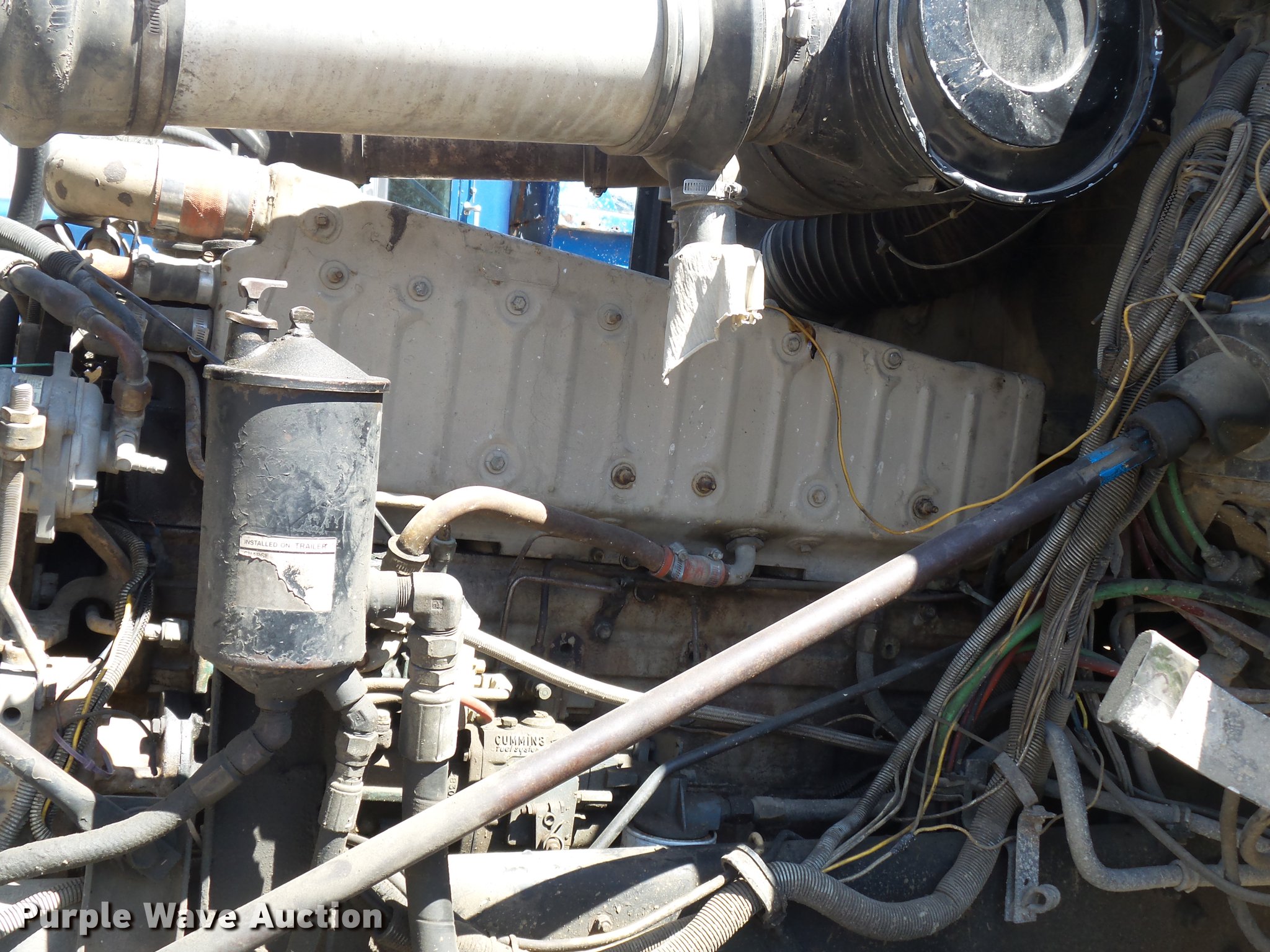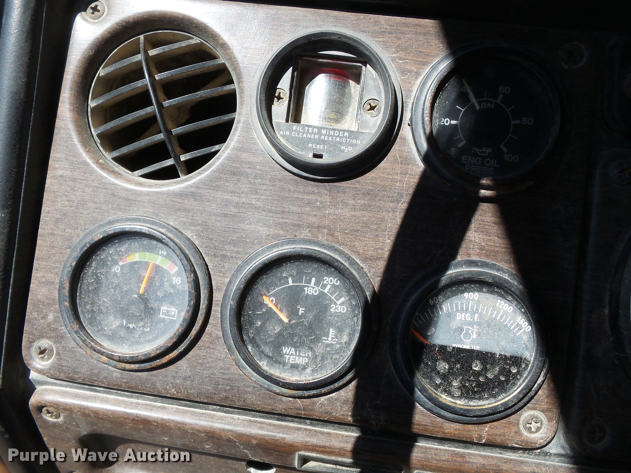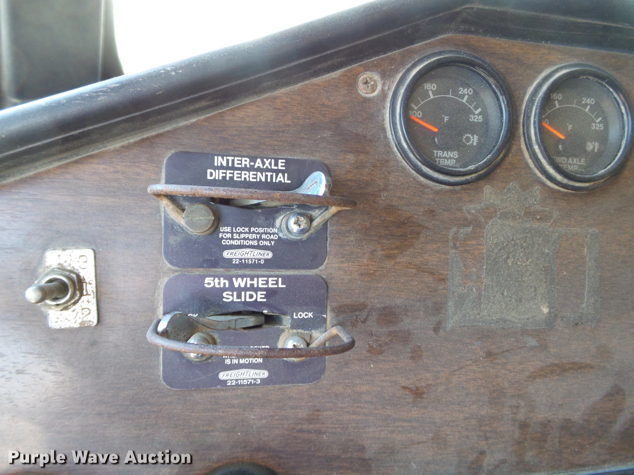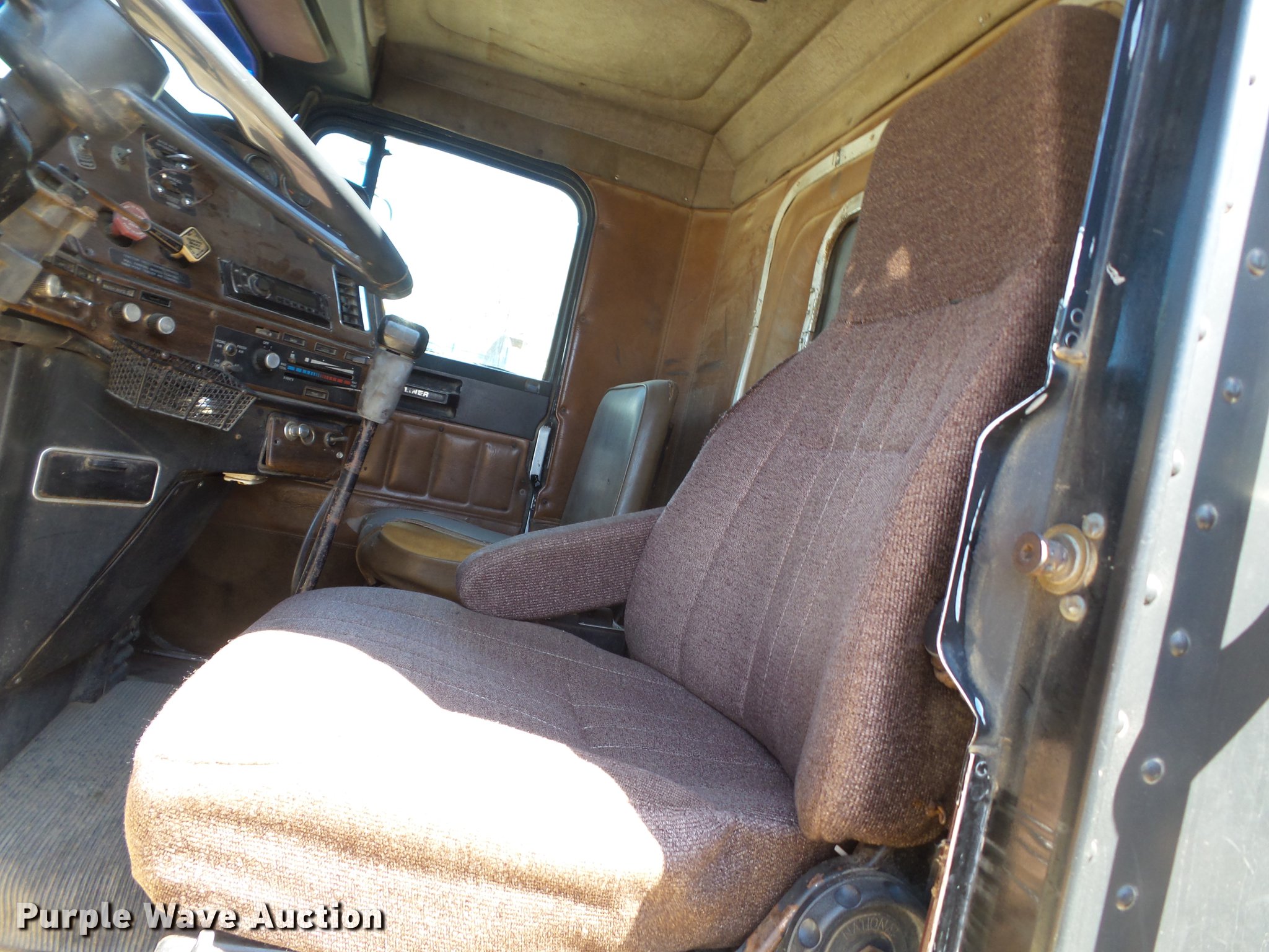 Purple Wave is selling a used Construction Dump Truck in Missouri. This item is a 1987 Freightliner FLC dump truck with the following: 14 miles on odometer, Actual miles unknown, Cummins 14.0L L6 turbo diesel engine, Eight speed manual transmission, Tandem axle, AC and heat, AM/FM/CD, Air suspension seat, PTO, Block heater, Exterior visor, Crown Gravel Star steel dump bed, 15'L x 95"W, 46" side height, 8" side board height, Single ram hoist, Air operated end gate, Roll tarp, Dual fuel tanks, Spring suspension, Air brakes, 200" wheelbase, 11R24.5 tires