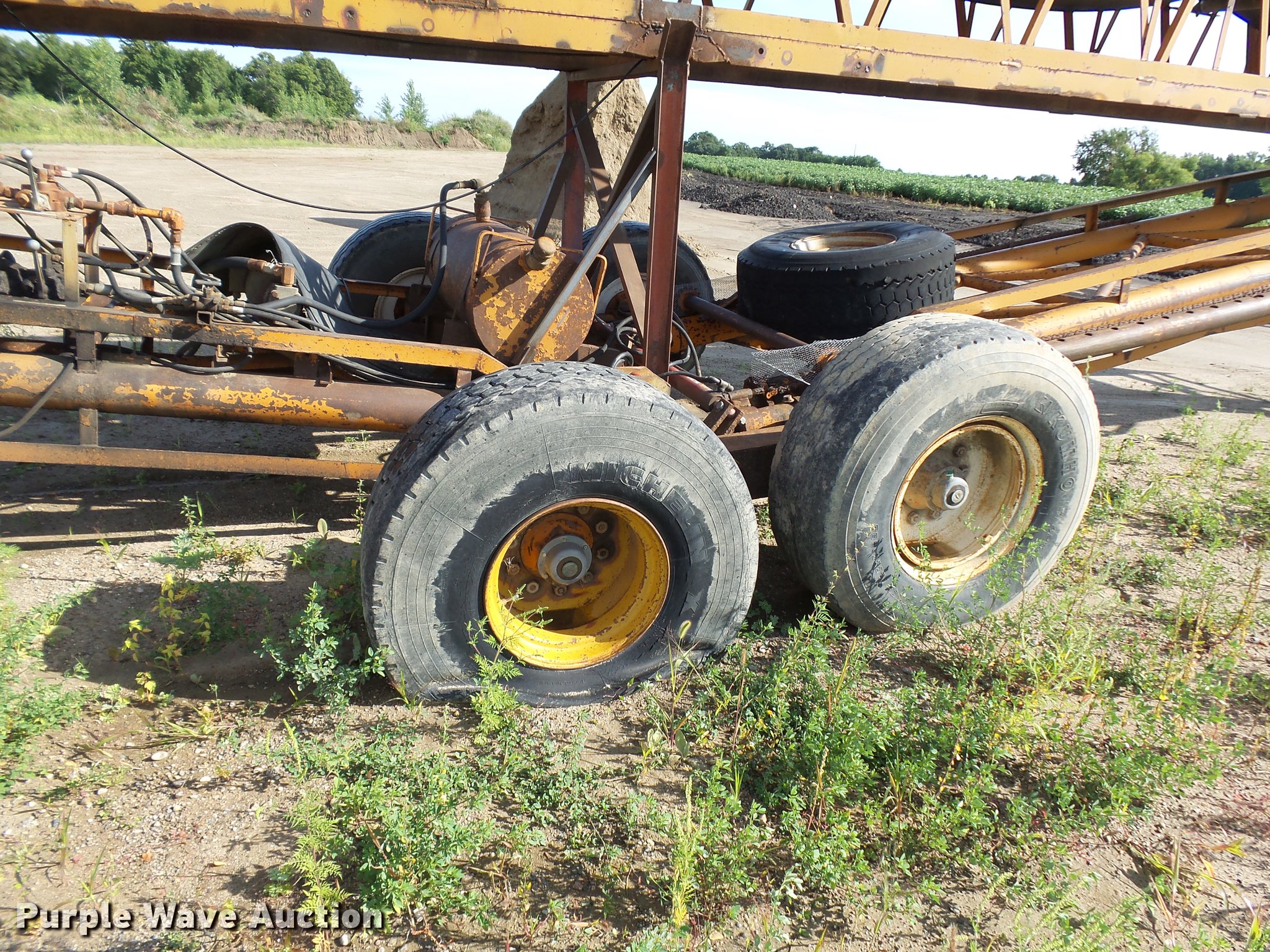 Purple Wave is selling a used Conveyor in Minnesota. This item is a Kolberg 636-120 conveyor with the following: 120'L, 36"W belt, Electric over hydraulic operation, Tandem axle, Walking beam suspension, 425/65R22.5 tires, Serial 2467-636-120-76