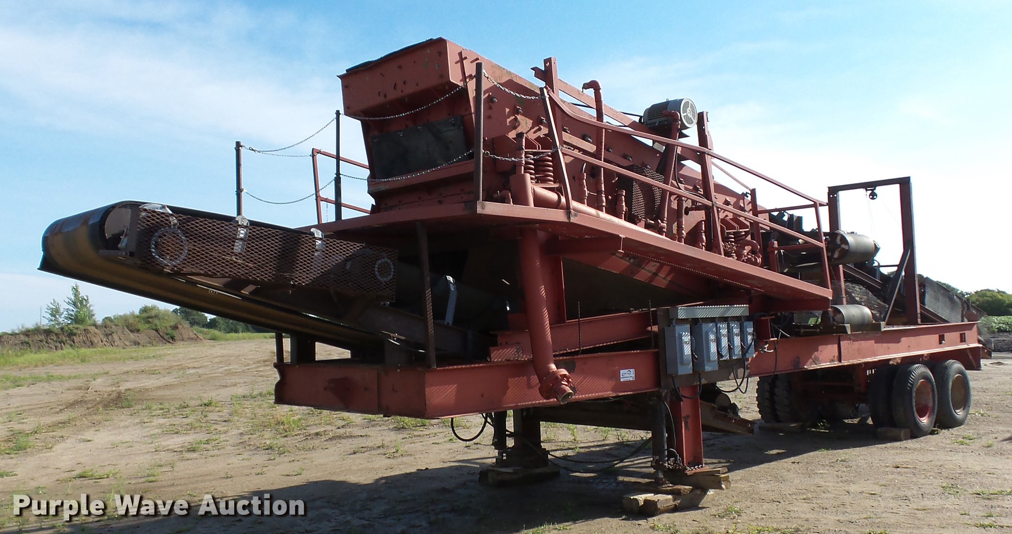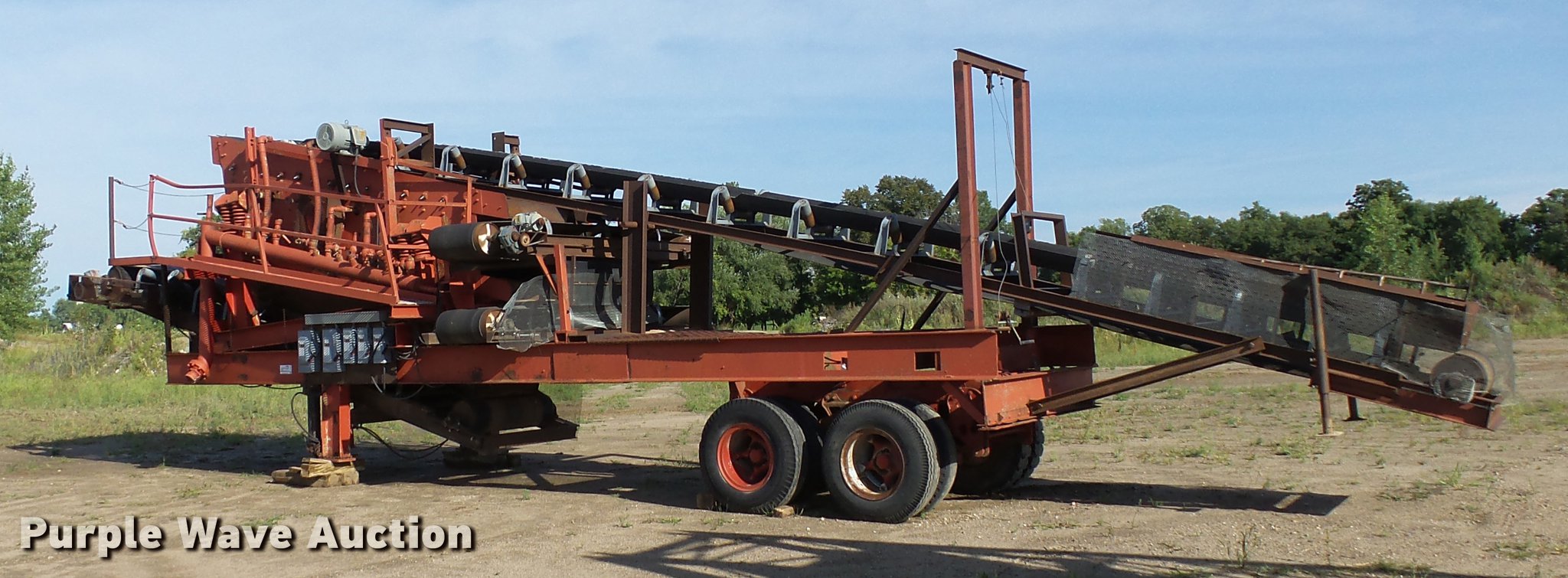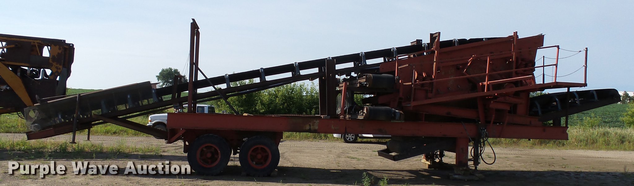 Purple Wave is selling a used Screen or Screening Plant in Minnesota. This item is a Simplicity two deck screen with the following: 40'L x 30"W conveyor, 24" x 11" side discharge, 22' x 4' fines conveyor, 1.5" top screen, 1" bottom screen, Dodge gear boxes, Three phase, Hydrualic lift, Tandem axle, No brakes, No lights
