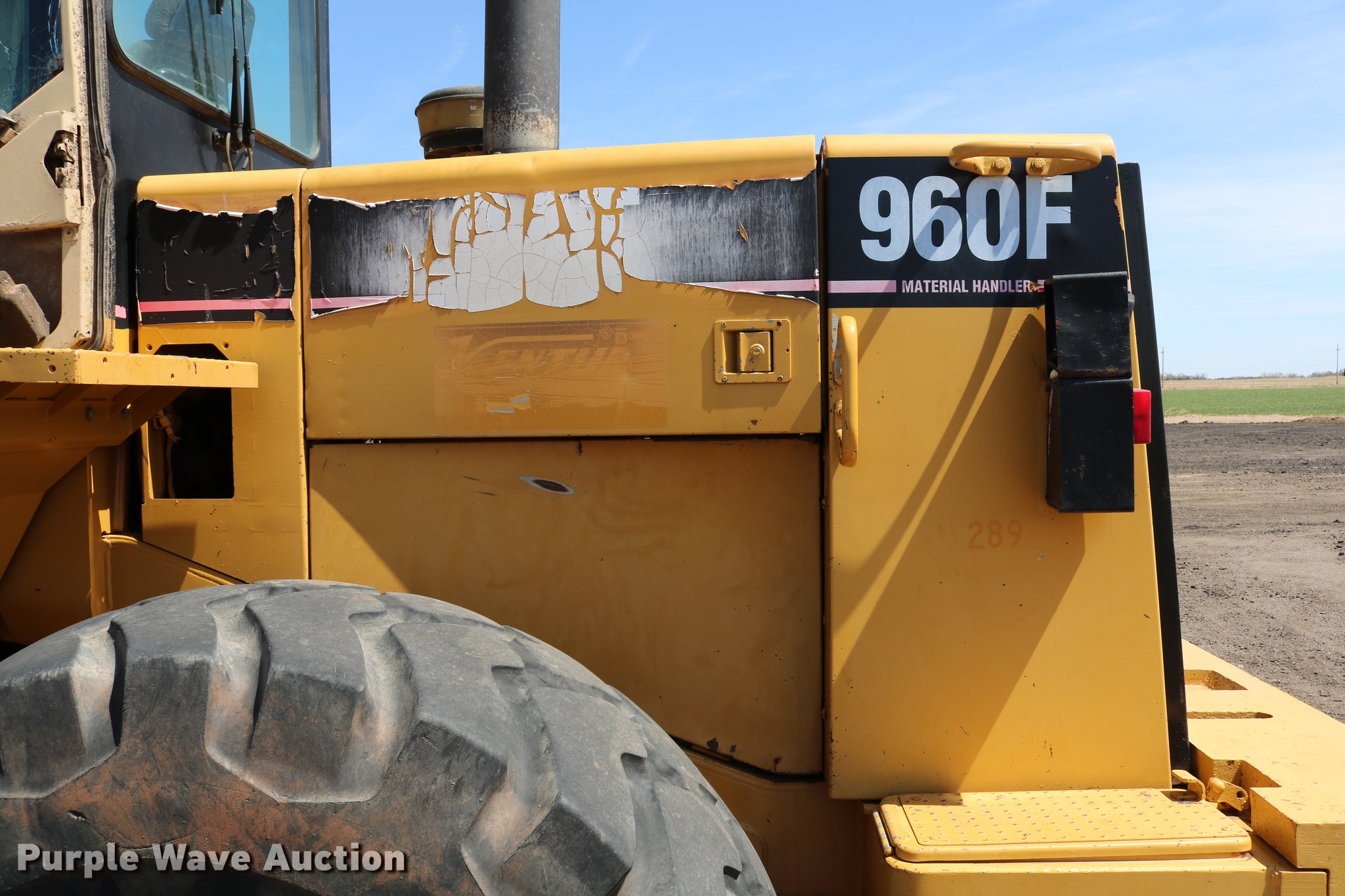 Purple Wave is selling a used Wheel Loader in Kansas. This item is a 1996 Caterpillar 960F wheel loader with the following: 17,952 hours on meter, Caterpillar 3116 six cylinder turbo diesel engine, Serial 98Z16330, Powershift transmission, 4F-4R gears, EROPS, AC and heat, Tilt steering wheel, Air suspension seat, Wipers, Front work lights, Backup alarm, Caterpillar 1070582-03A1 119"W general purpose bucket, Self-leveling, Counterweights, 23.5-25 tires, Window cracked, AC inoperable, Serial 9ZJ00400