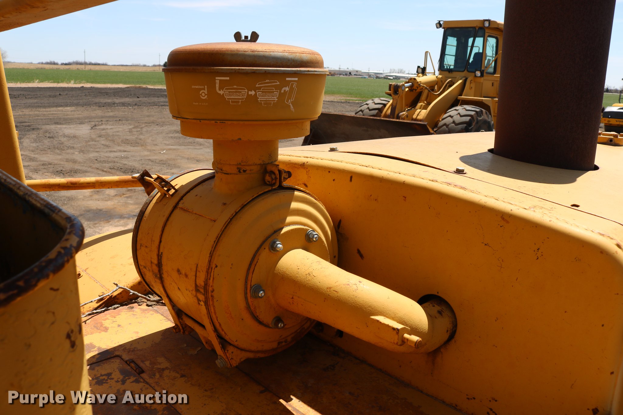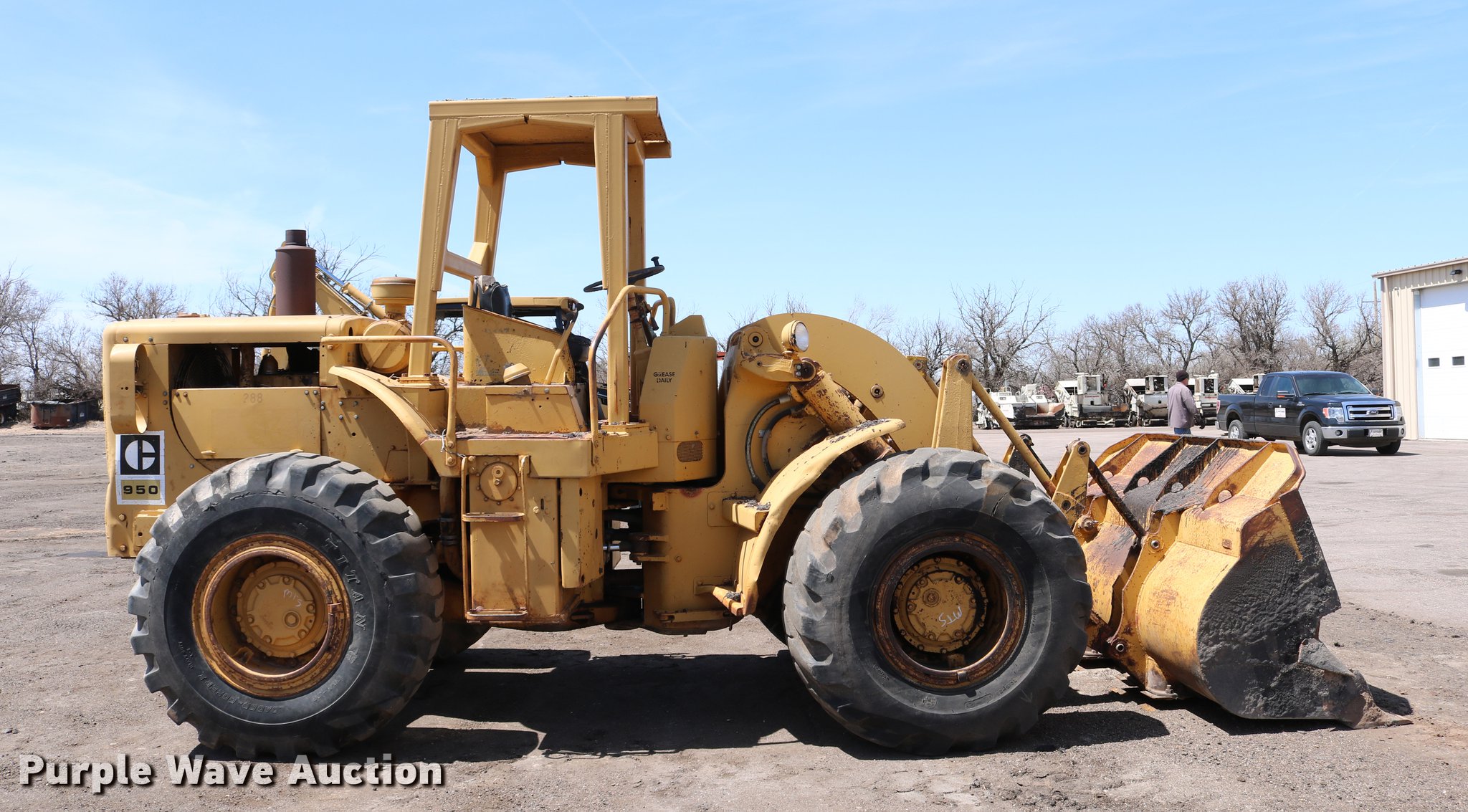 Purple Wave is selling a used Wheel Loader in Kansas. This item is a 1980 Caterpillar 950 wheel loader with the following: 9 hours on meter, Caterpillar four cylinder turbo diesel engine, Serial 43V19343, Powershift transmission, 4F-4R gears, OROPS, Two-lever bucket controls, Front and rear work lights, 103"W general purpose bucket, Bolt-on cutting edge, 20.5-25 tires, Hour meter inoperable, Front right wheel hydraulic leak, Bucket cutting edge broke, Serial 73J10006