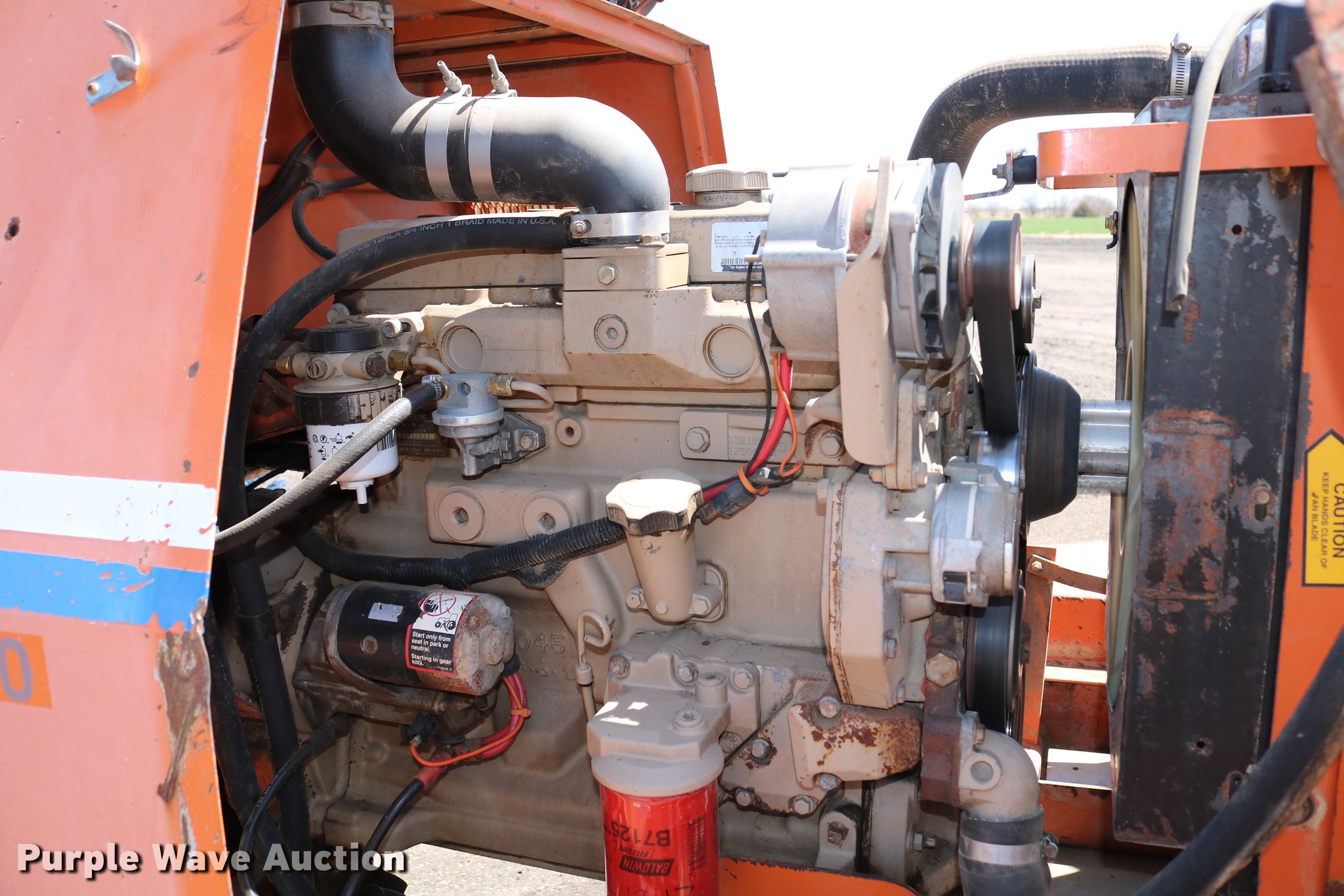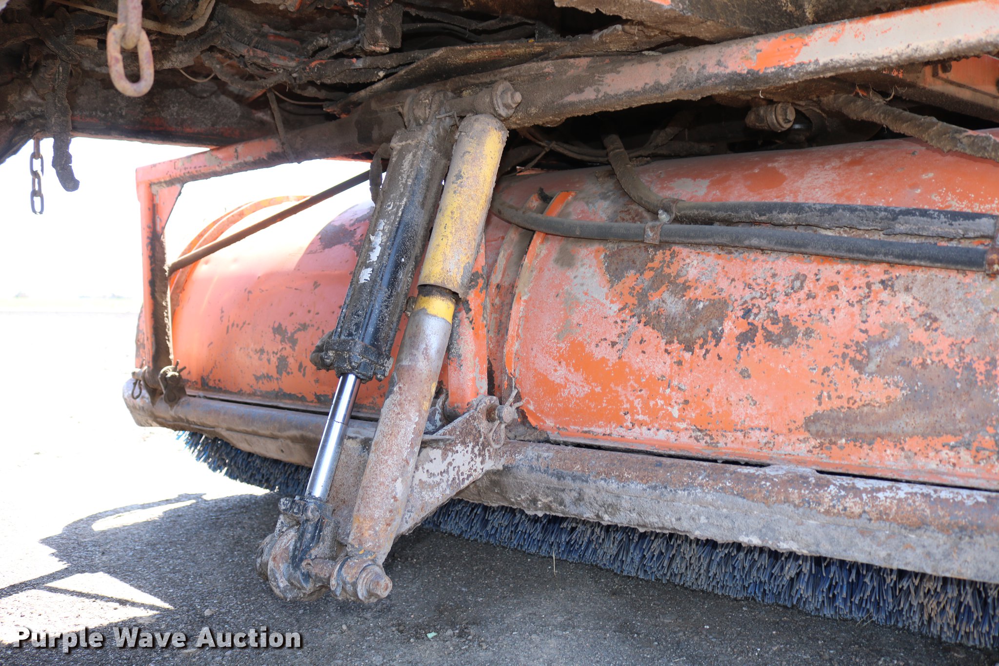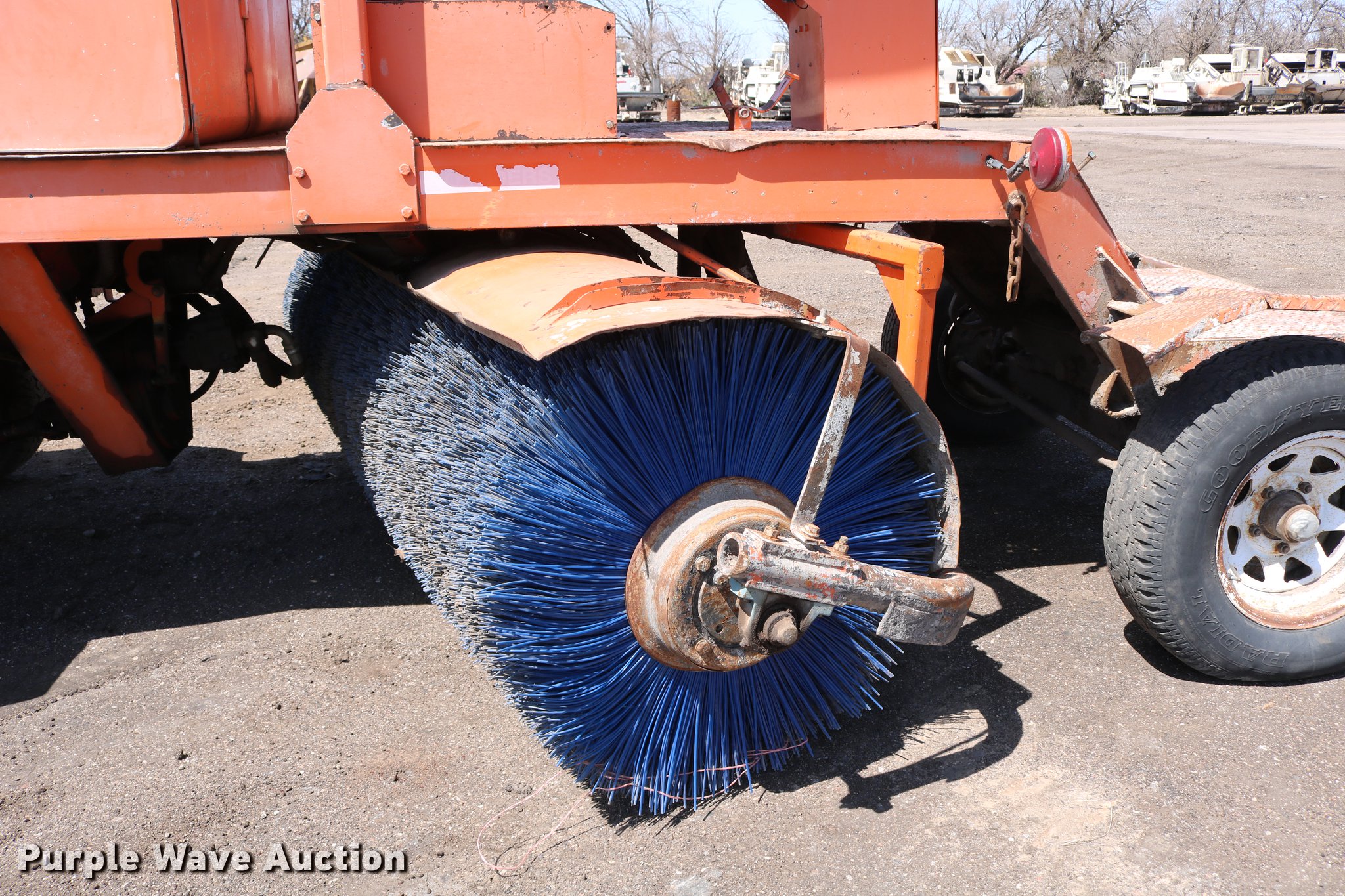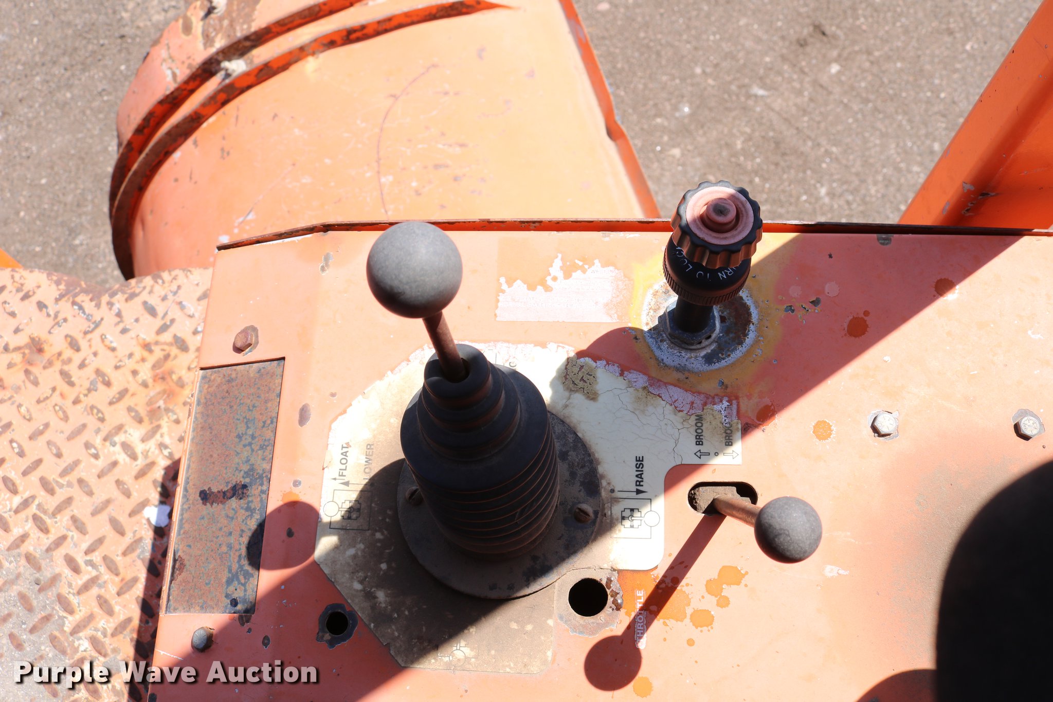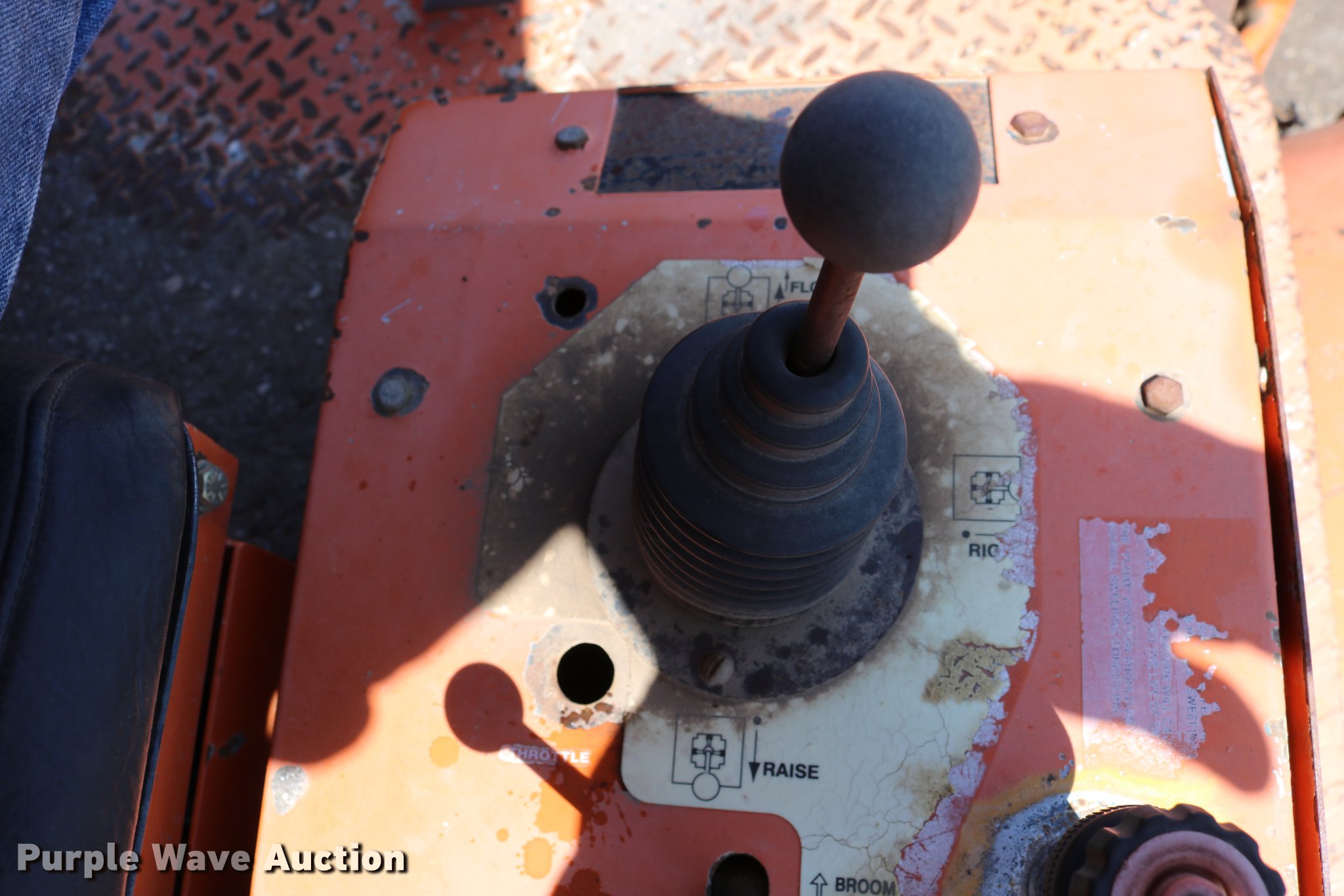 Purple Wave is selling a used Broom in Kansas. This item is a Broce RJ350 broom with the following: 4,210 hours on meter, John Deere 4045DF150 four cylinder diesel engine, 60 kW, Serial PE4045D199333, Two speed hydrostatic transmission, OROPS, Front work lights, 8'W broom, Hydraulic lift, tilt, and rotation, 235/75R15 tires, Lights broken, Serial RJ350402227