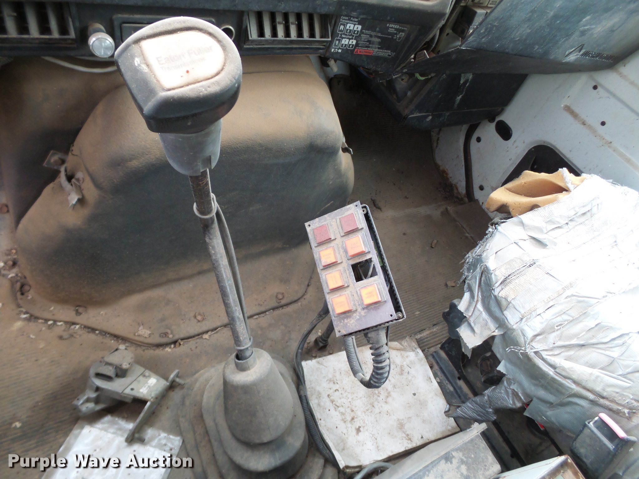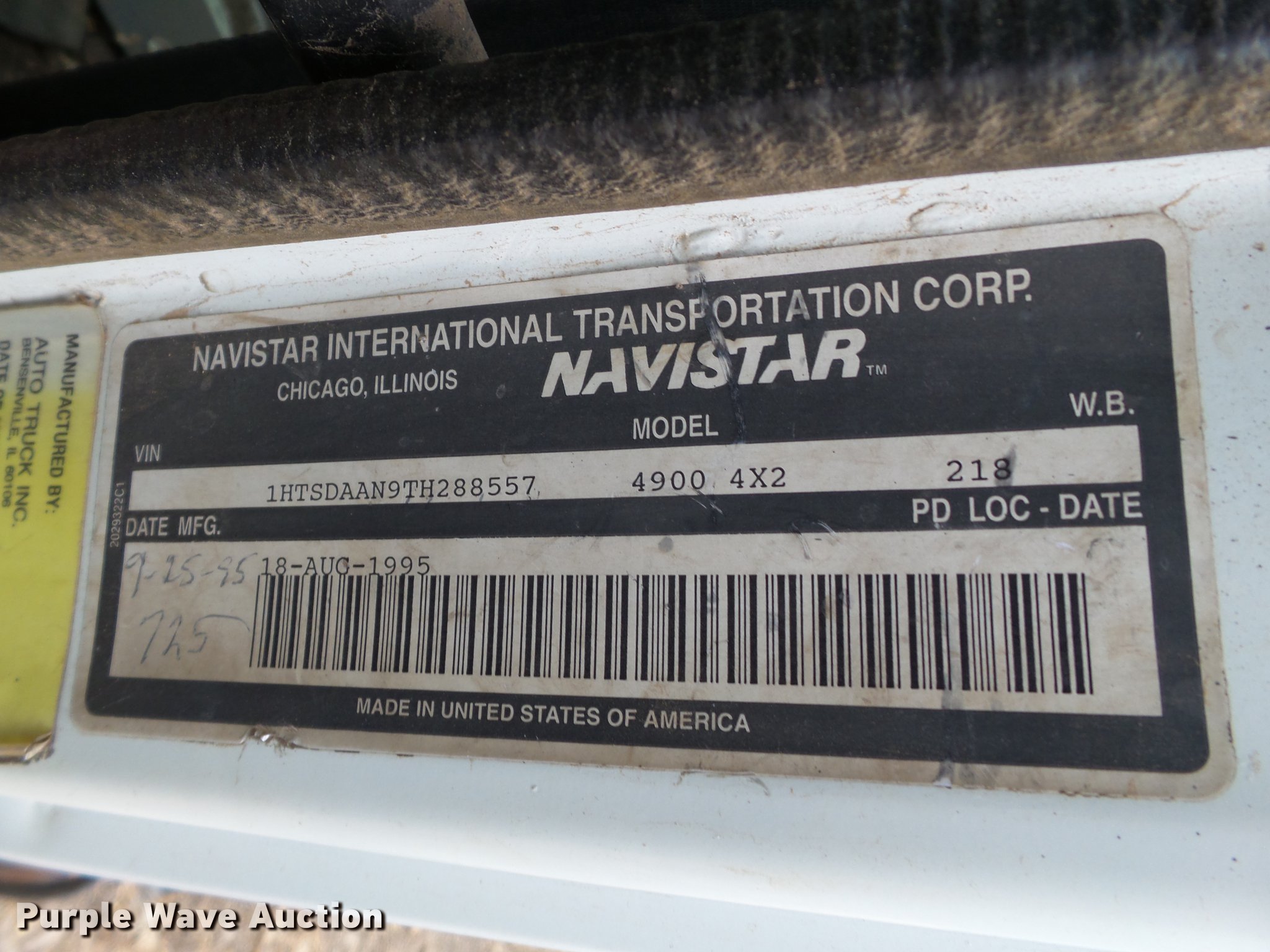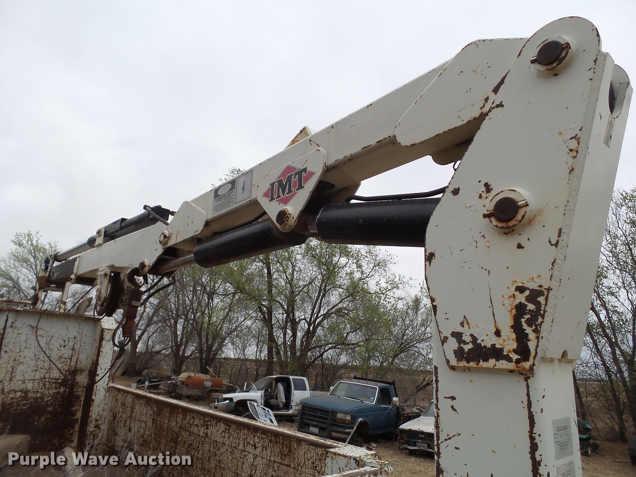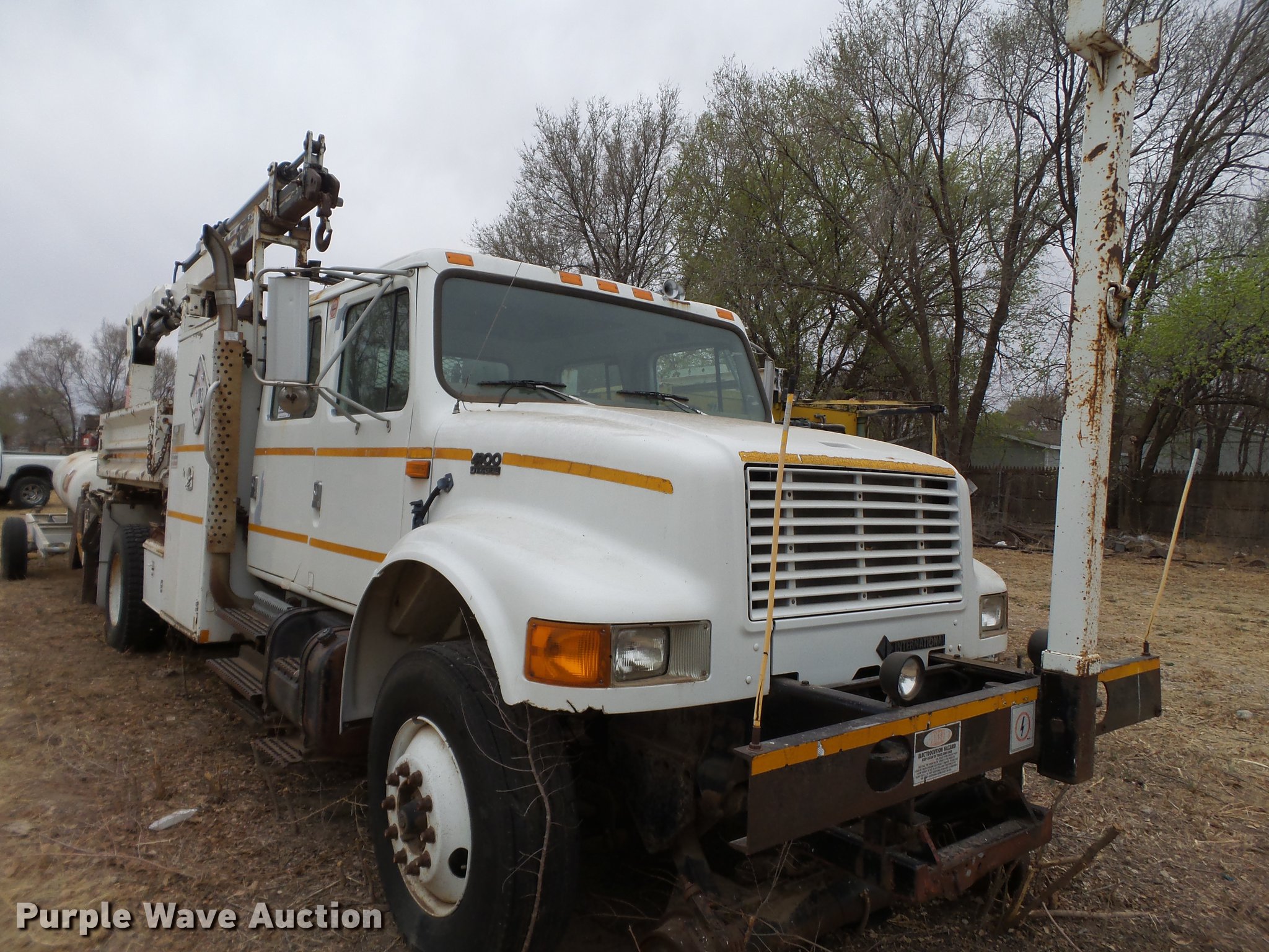 Purple Wave is selling a used Service Truck in Texas. This item is a 1996 International 4900 Crew Cab railroad service truck with crane with the following: 291,666 miles on odometer, International DT466 7.6L L6 turbo diesel engine, Eaton fuller nine speed manual transmission, Tandem axle, AC and heat, AM/FM/cassette, Suspension seat, PTO, Backup alarm, Front tow hooks, Utility bed, Side dump, Shelving, Hydraulic hose reel, Utility rack, Rail road wheels, IMT 425 crane, 25' boom length, 4,000 lbs maximum lift capacity, Remote control, Outriggers, Dual fuel tanks, Spring suspension, Air brakes, 11R22.5 tires, Non-operational vehicle