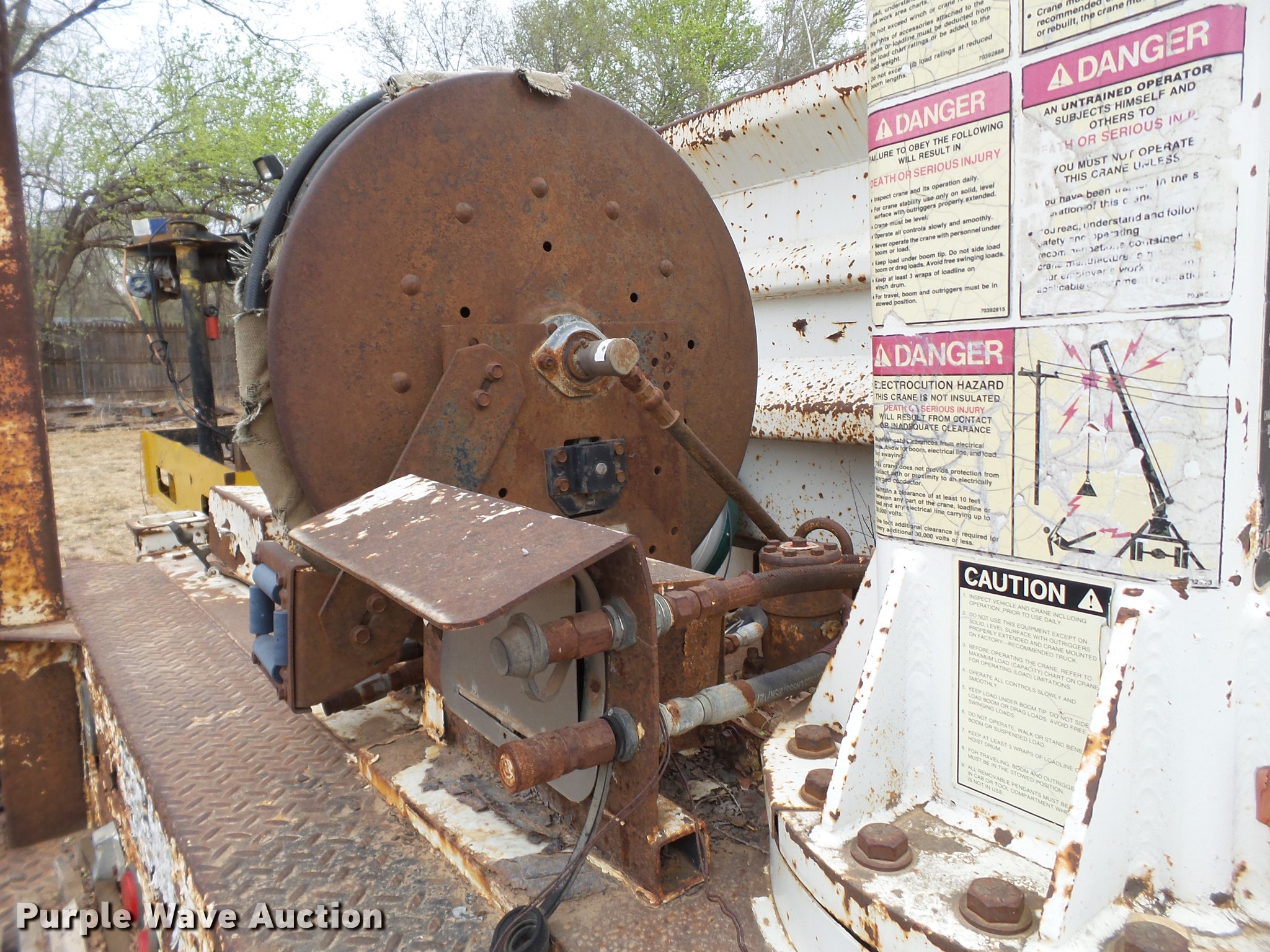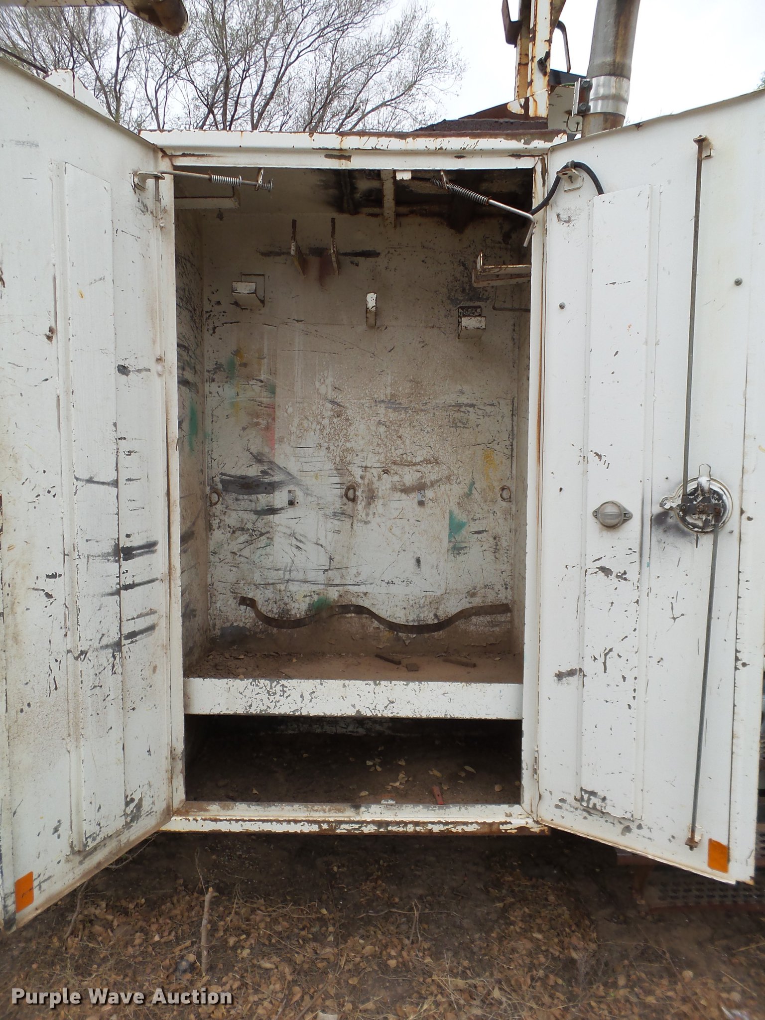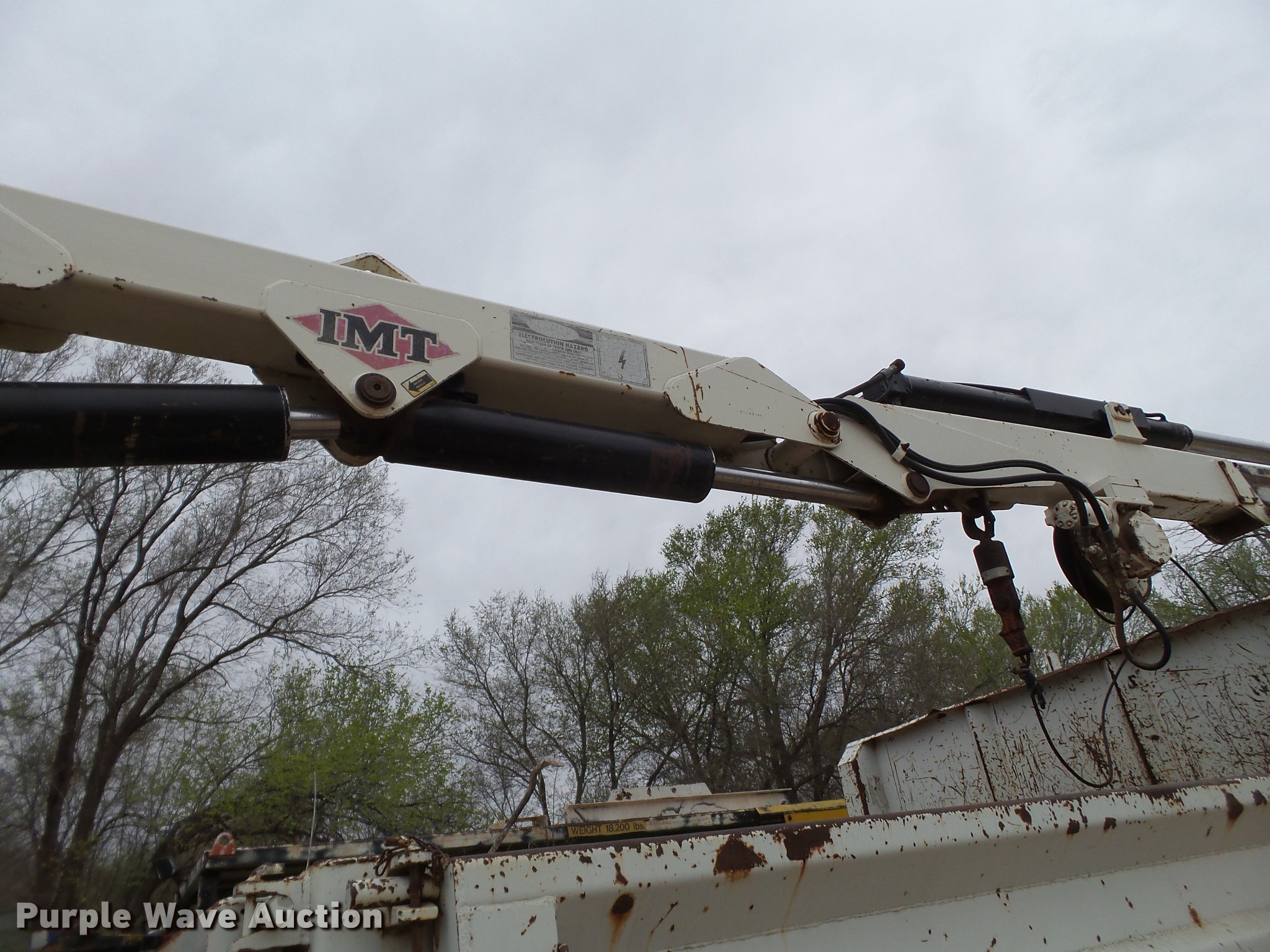 Purple Wave is selling a used Service Truck in Texas. This item is a 1996 International 4900 Crew Cab railroad service truck with crane with the following: 291,666 miles on odometer, International DT466 7.6L L6 turbo diesel engine, Eaton fuller nine speed manual transmission, Tandem axle, AC and heat, AM/FM/cassette, Suspension seat, PTO, Backup alarm, Front tow hooks, Utility bed, Side dump, Shelving, Hydraulic hose reel, Utility rack, Rail road wheels, IMT 425 crane, 25' boom length, 4,000 lbs maximum lift capacity, Remote control, Outriggers, Dual fuel tanks, Spring suspension, Air brakes, 11R22.5 tires, Non-operational vehicle