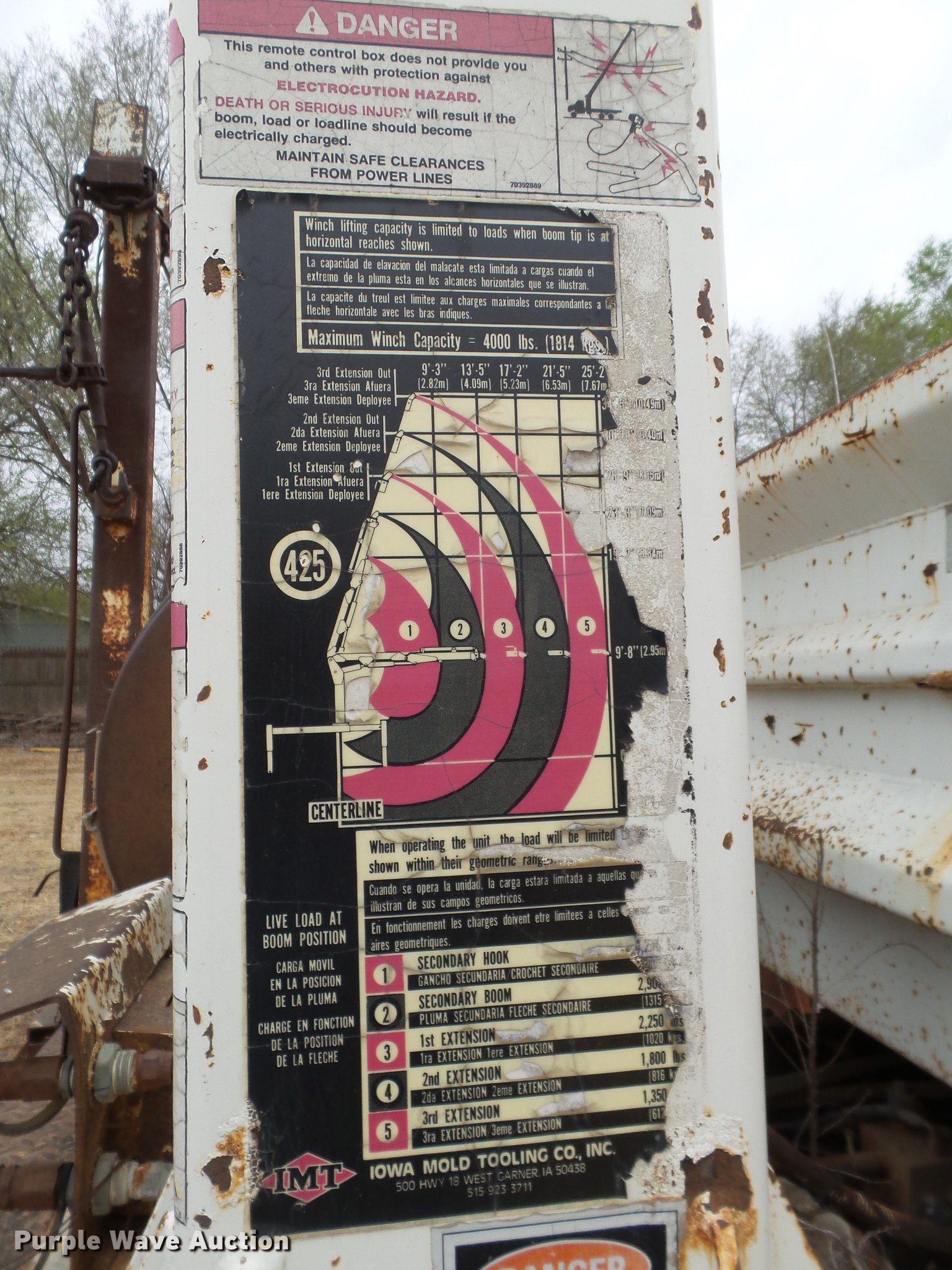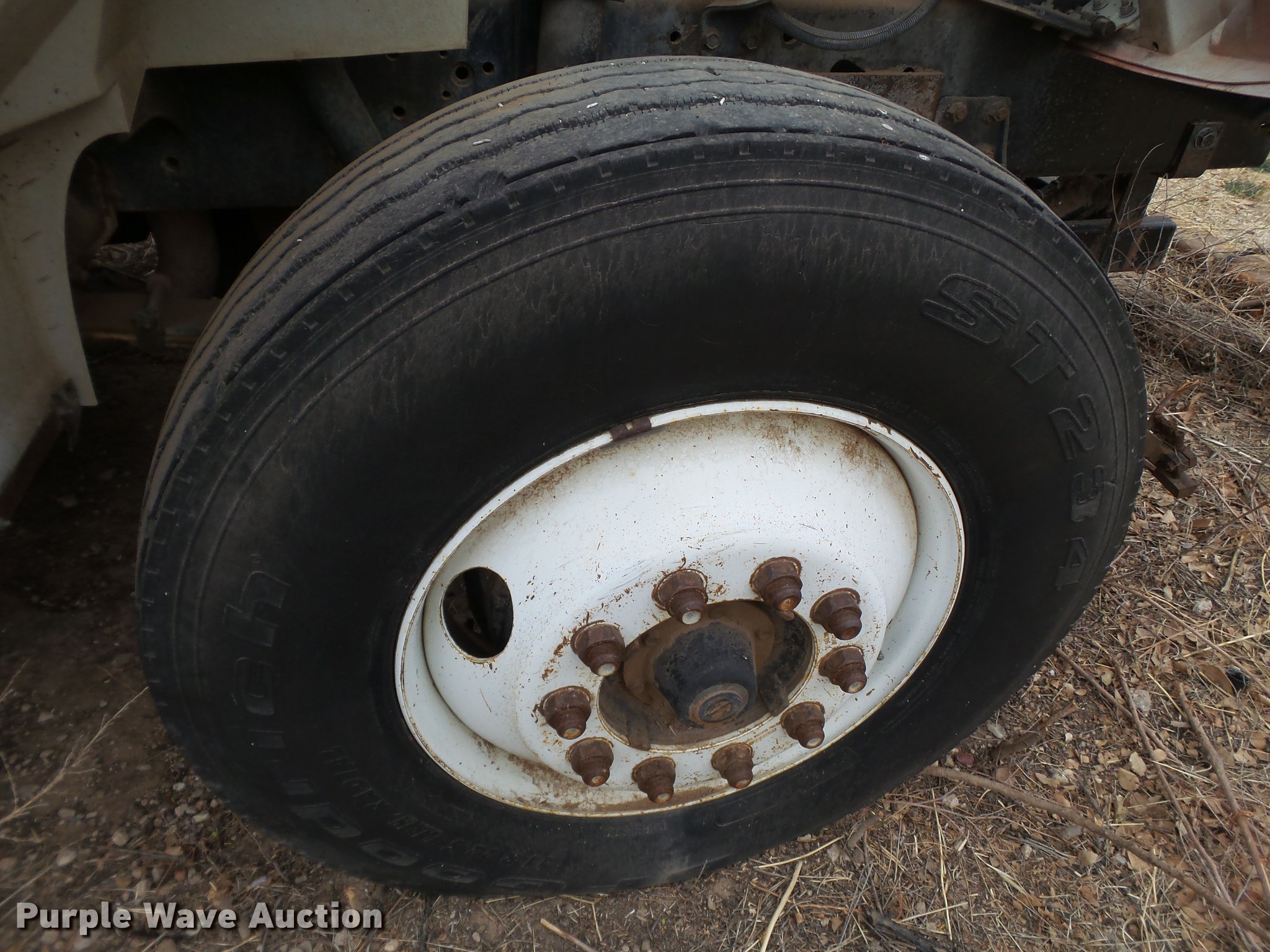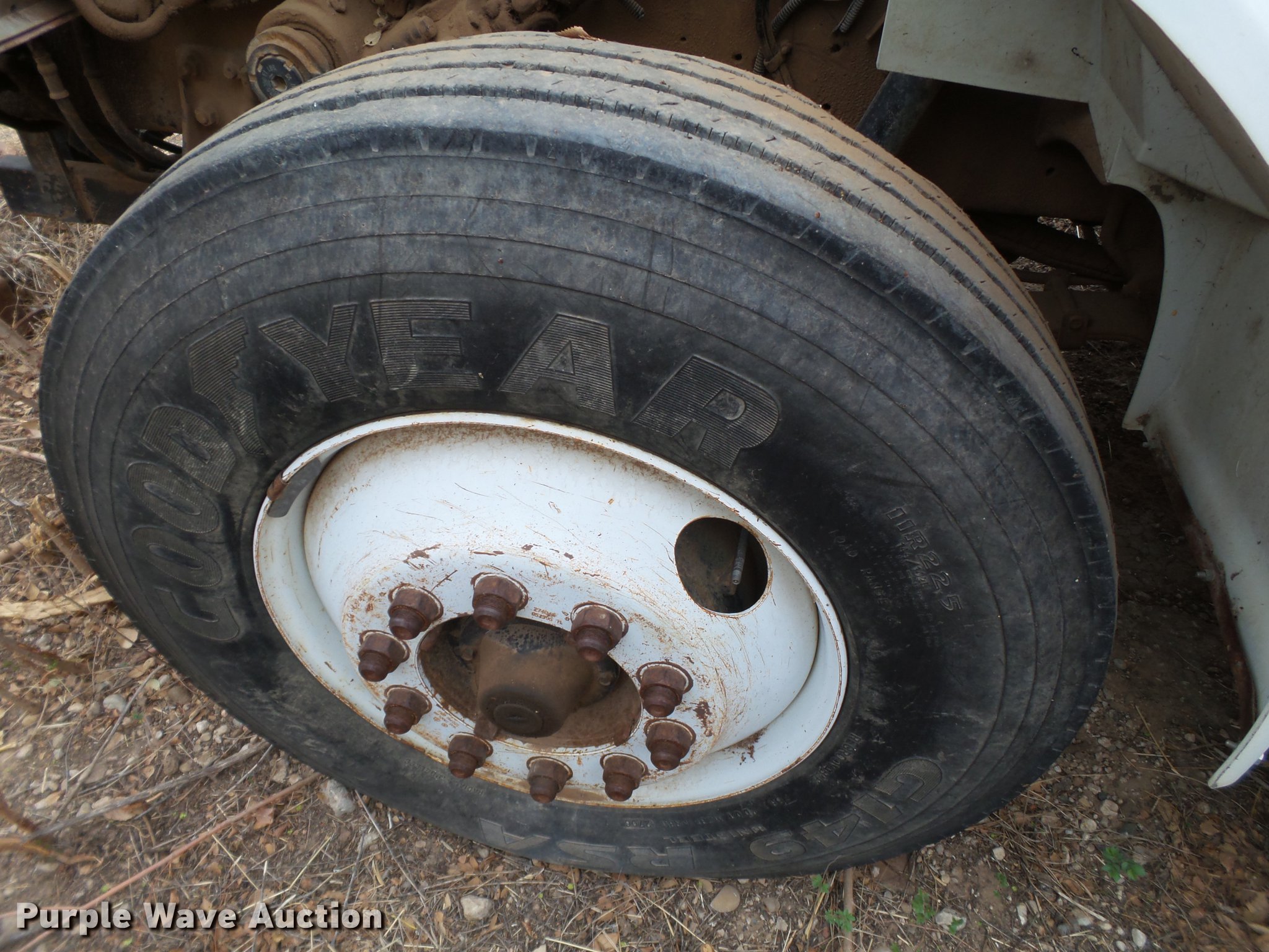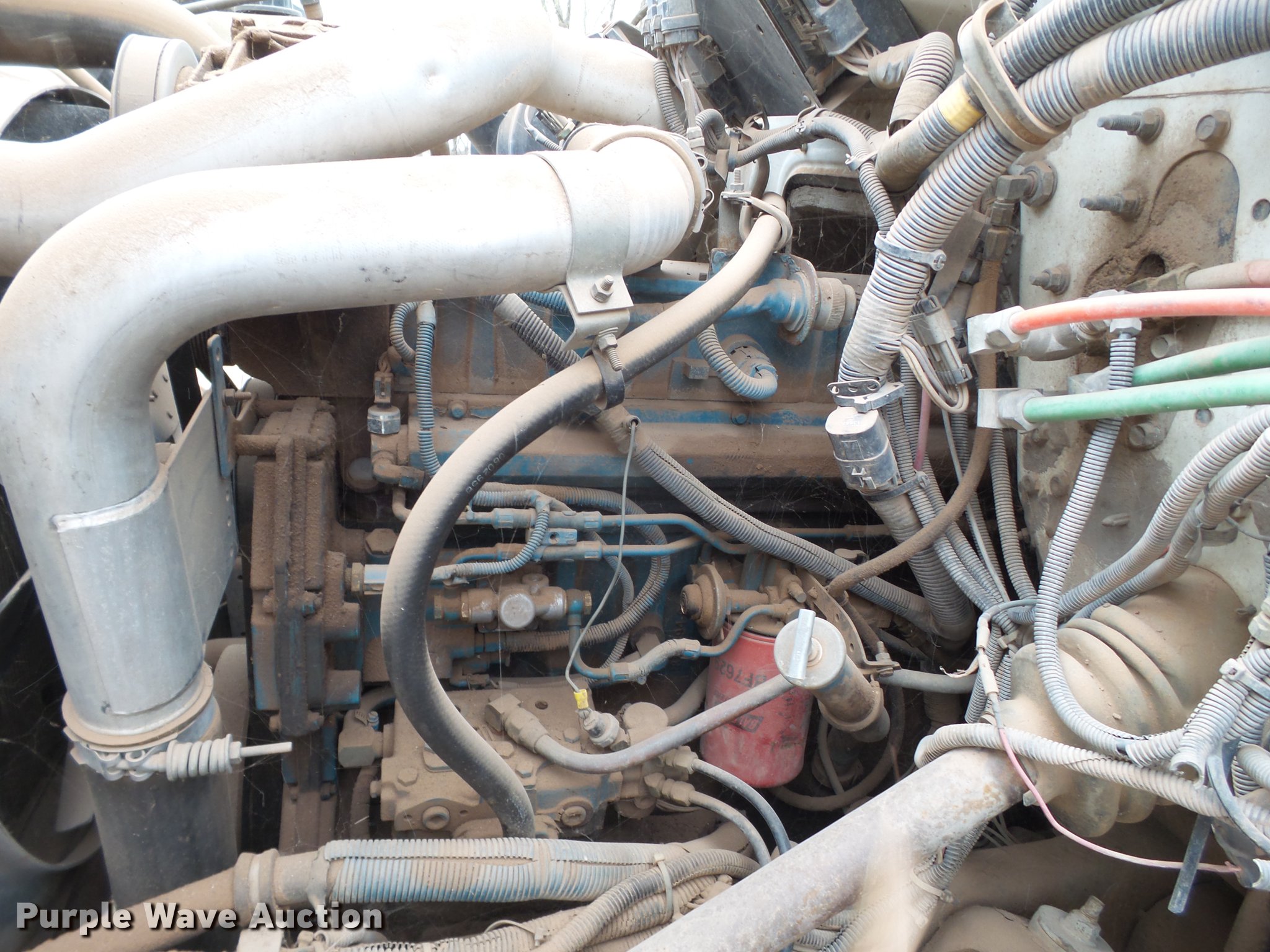 Purple Wave is selling a used Service Truck in Texas. This item is a 1996 International 4900 Crew Cab railroad service truck with crane with the following: 291,666 miles on odometer, International DT466 7.6L L6 turbo diesel engine, Eaton fuller nine speed manual transmission, Tandem axle, AC and heat, AM/FM/cassette, Suspension seat, PTO, Backup alarm, Front tow hooks, Utility bed, Side dump, Shelving, Hydraulic hose reel, Utility rack, Rail road wheels, IMT 425 crane, 25' boom length, 4,000 lbs maximum lift capacity, Remote control, Outriggers, Dual fuel tanks, Spring suspension, Air brakes, 11R22.5 tires, Non-operational vehicle