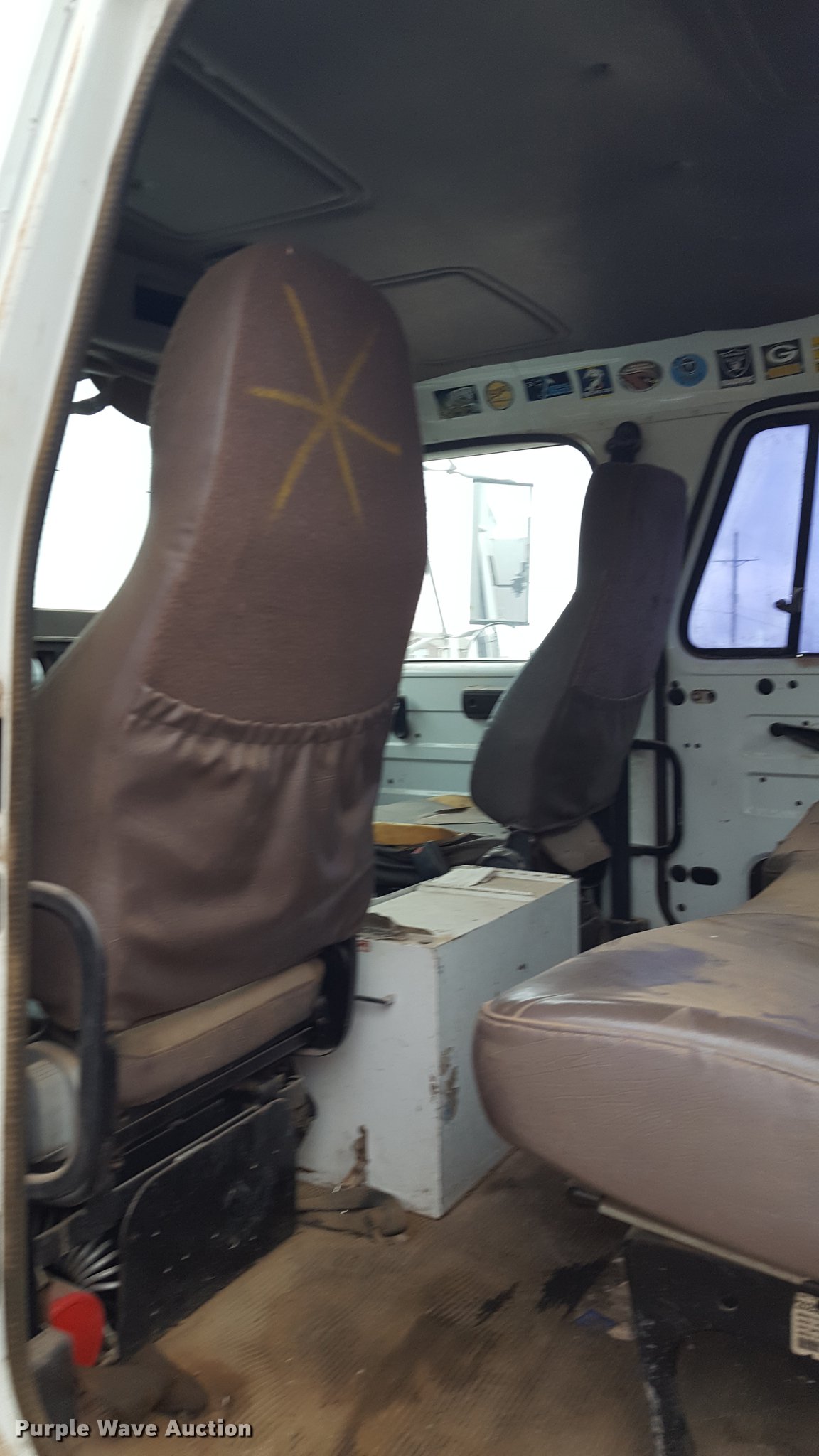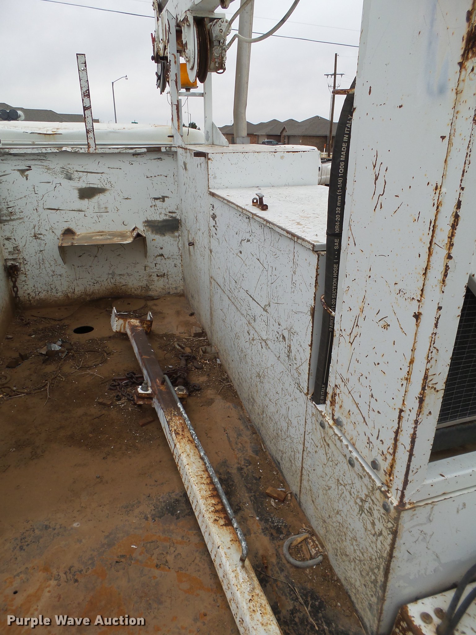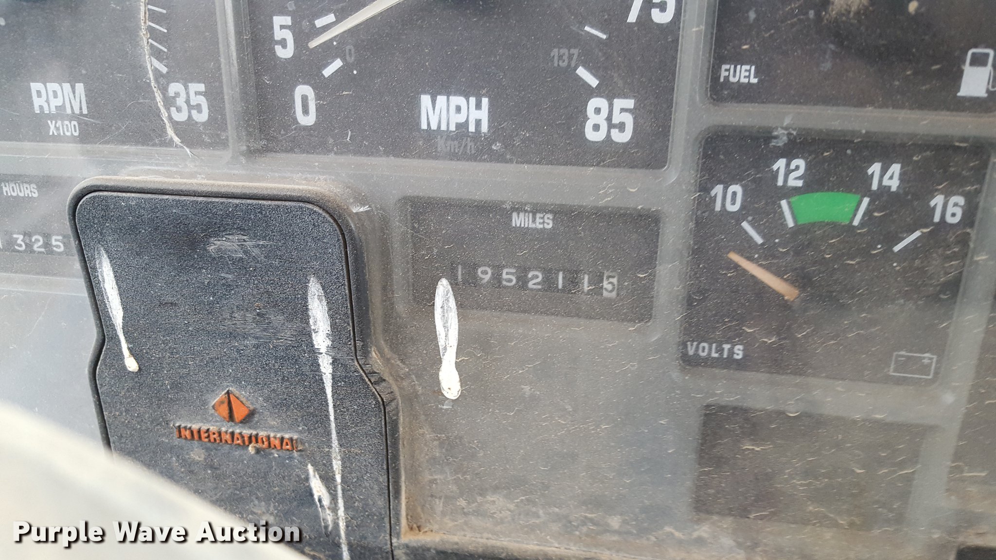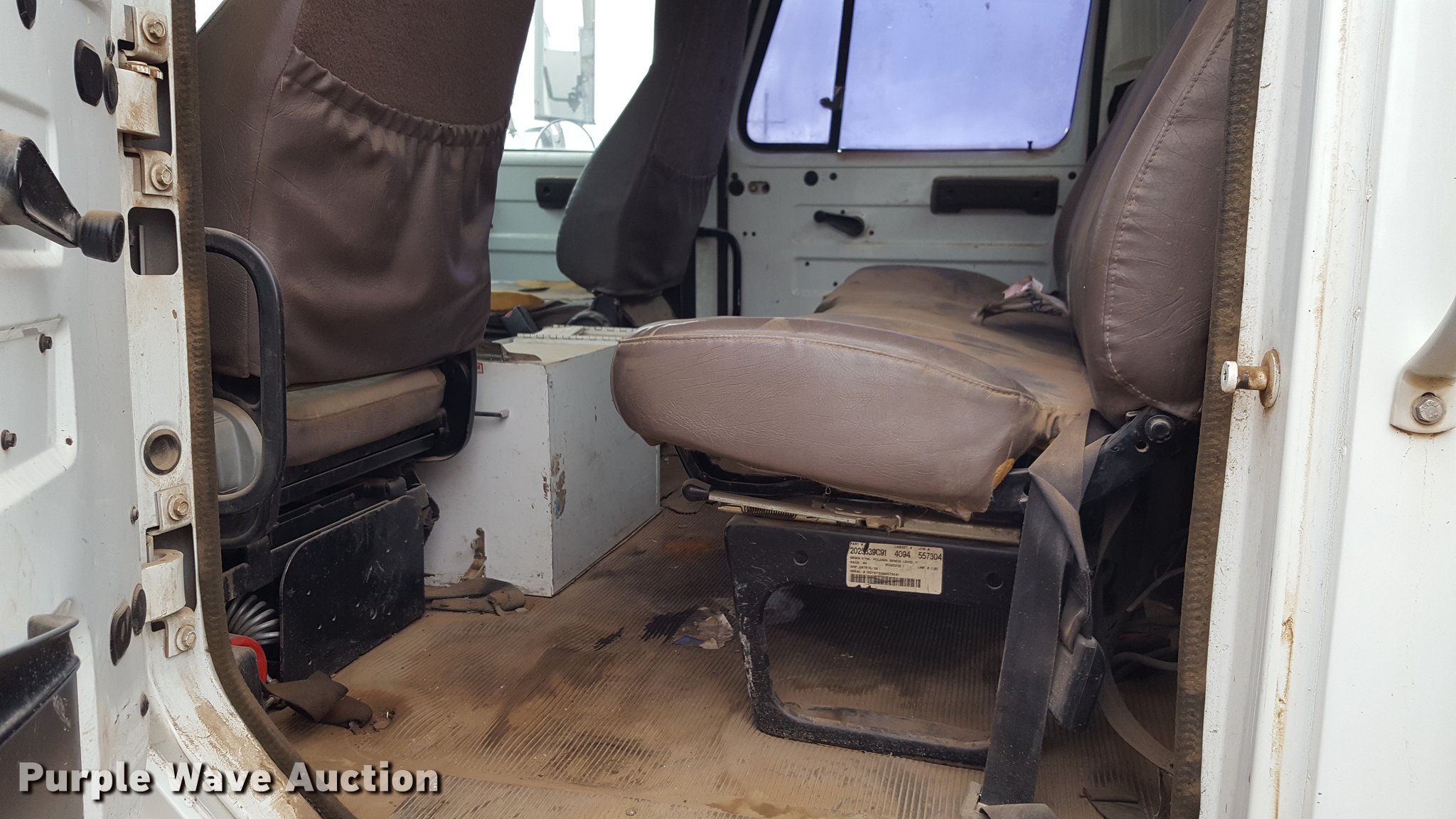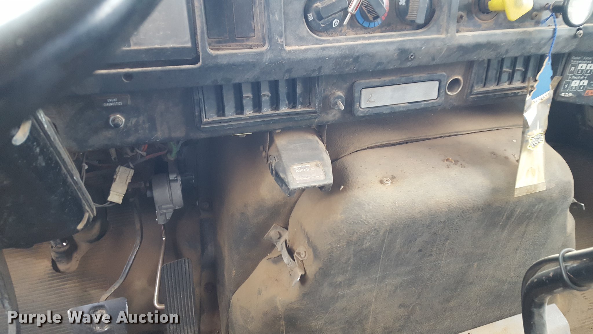 Purple Wave is selling a used Service Truck in Texas. This item is a 1998 International 4900 Crew Cab railroad service truck with crane with the following: 195,211 miles on odometer, 13,251 hours on meter, International DT466 7.6L L6 diesel engine, Single axle, Suspension seat, PTO, Backup alarm, Front tow hooks, Utility bed, Shelving, Hydraulic hoses, Utility rack, Hydraulic operated railroad wheels, Auto Truck 425AT crane, 31' boom length, 4,000 lbs maximum lift capacity, Remote control, Outriggers, Dual fuel tanks, Spring suspension, Air brakes, 11R22.5 tires