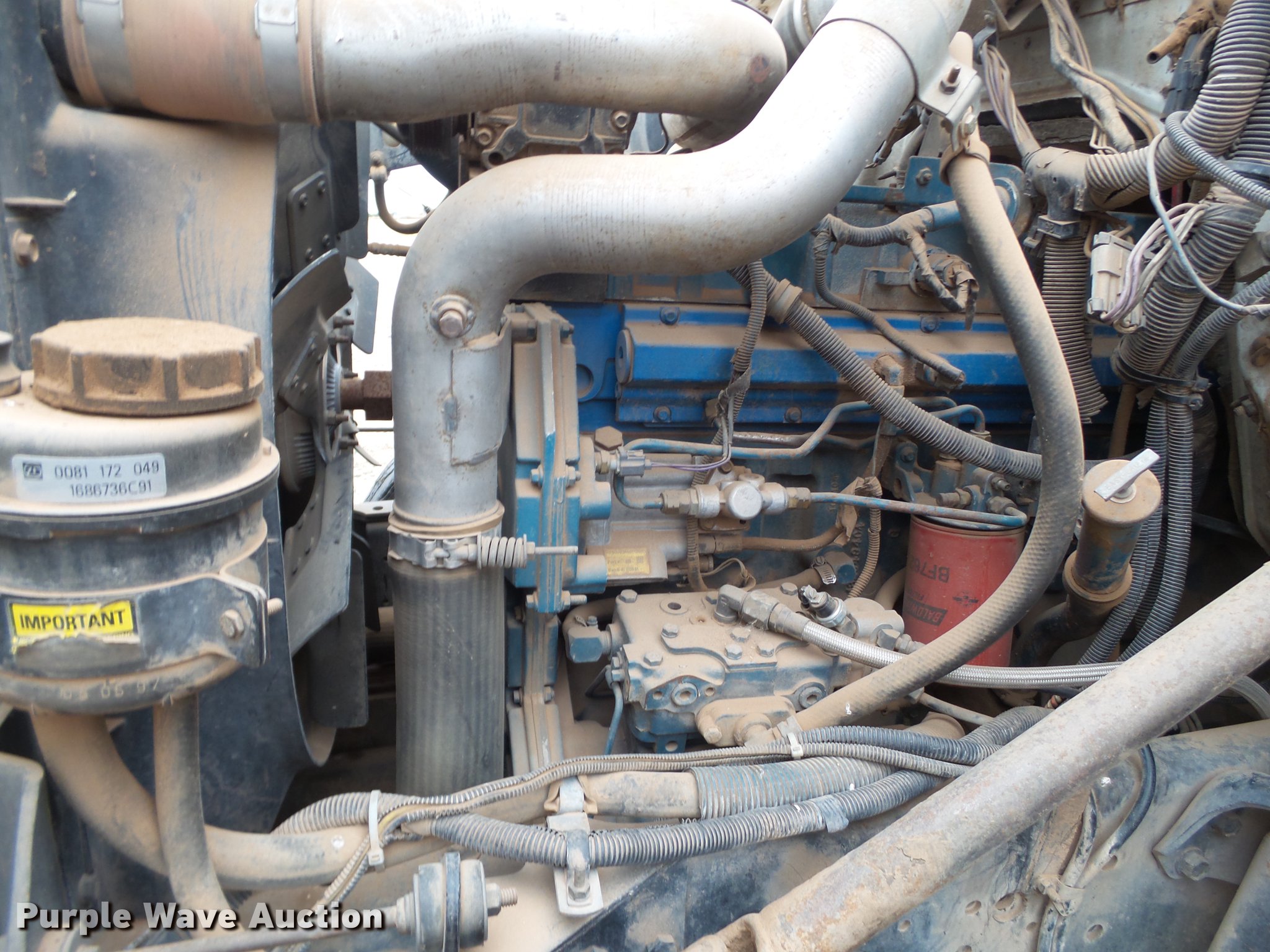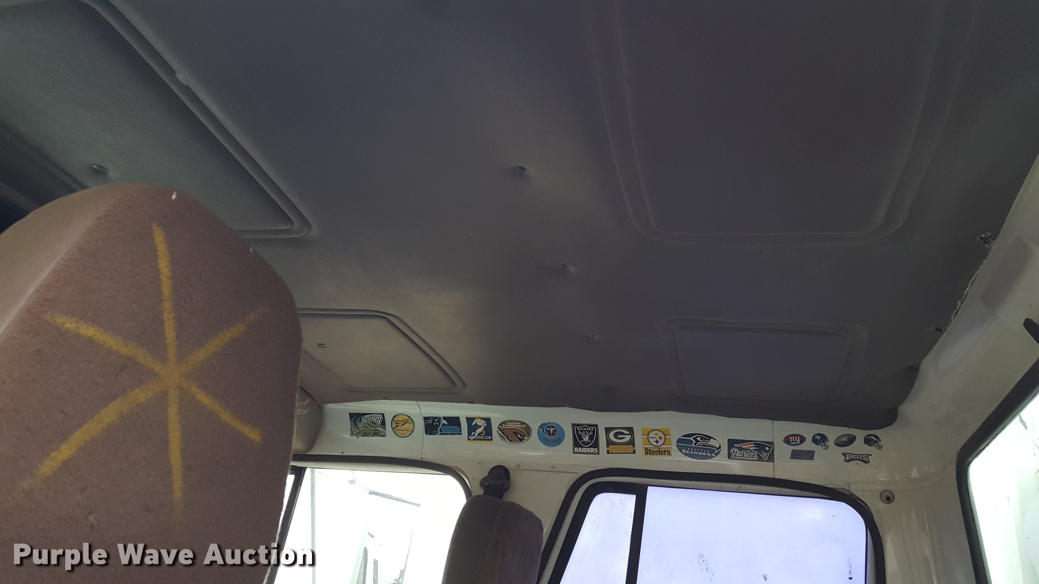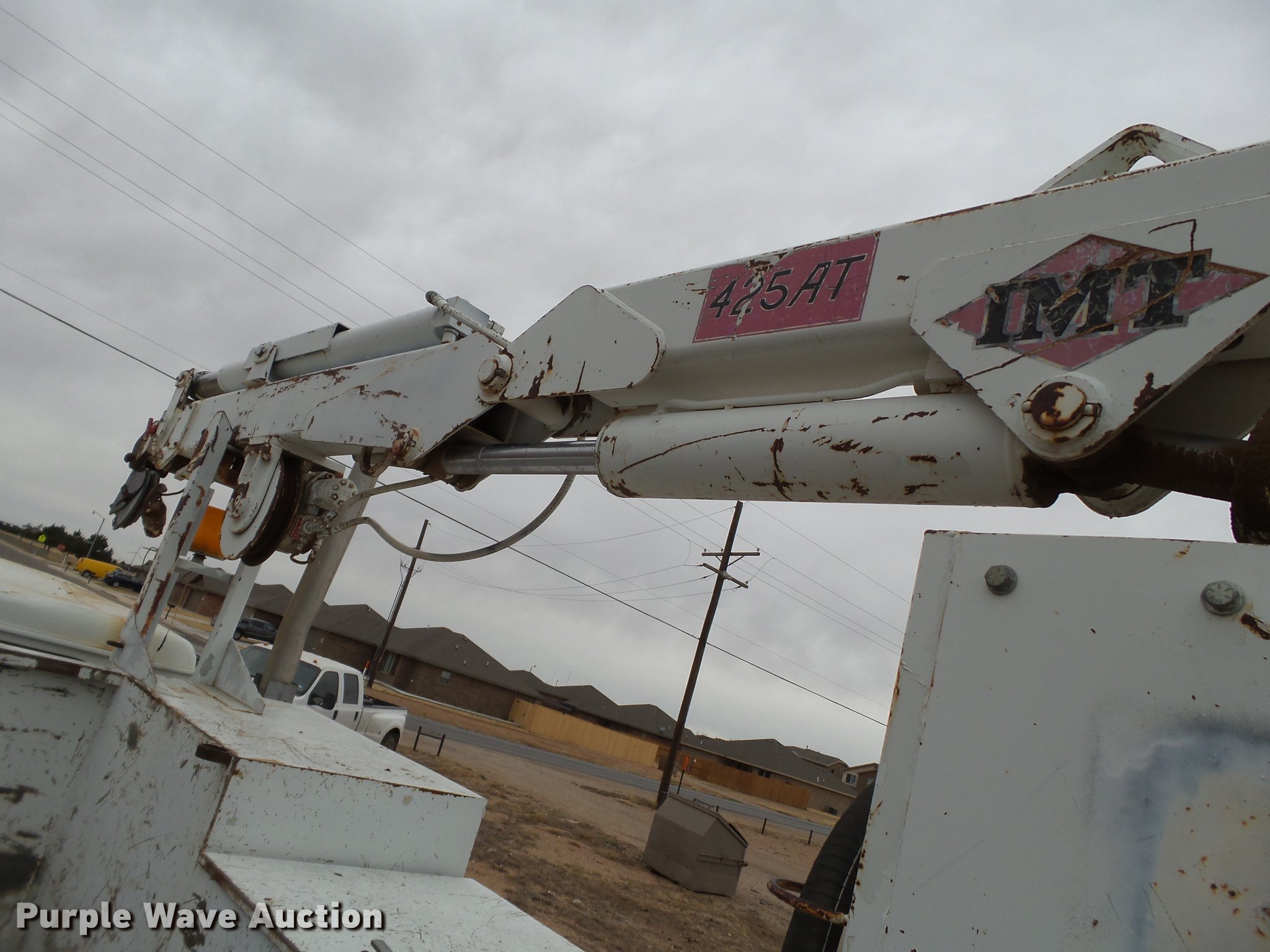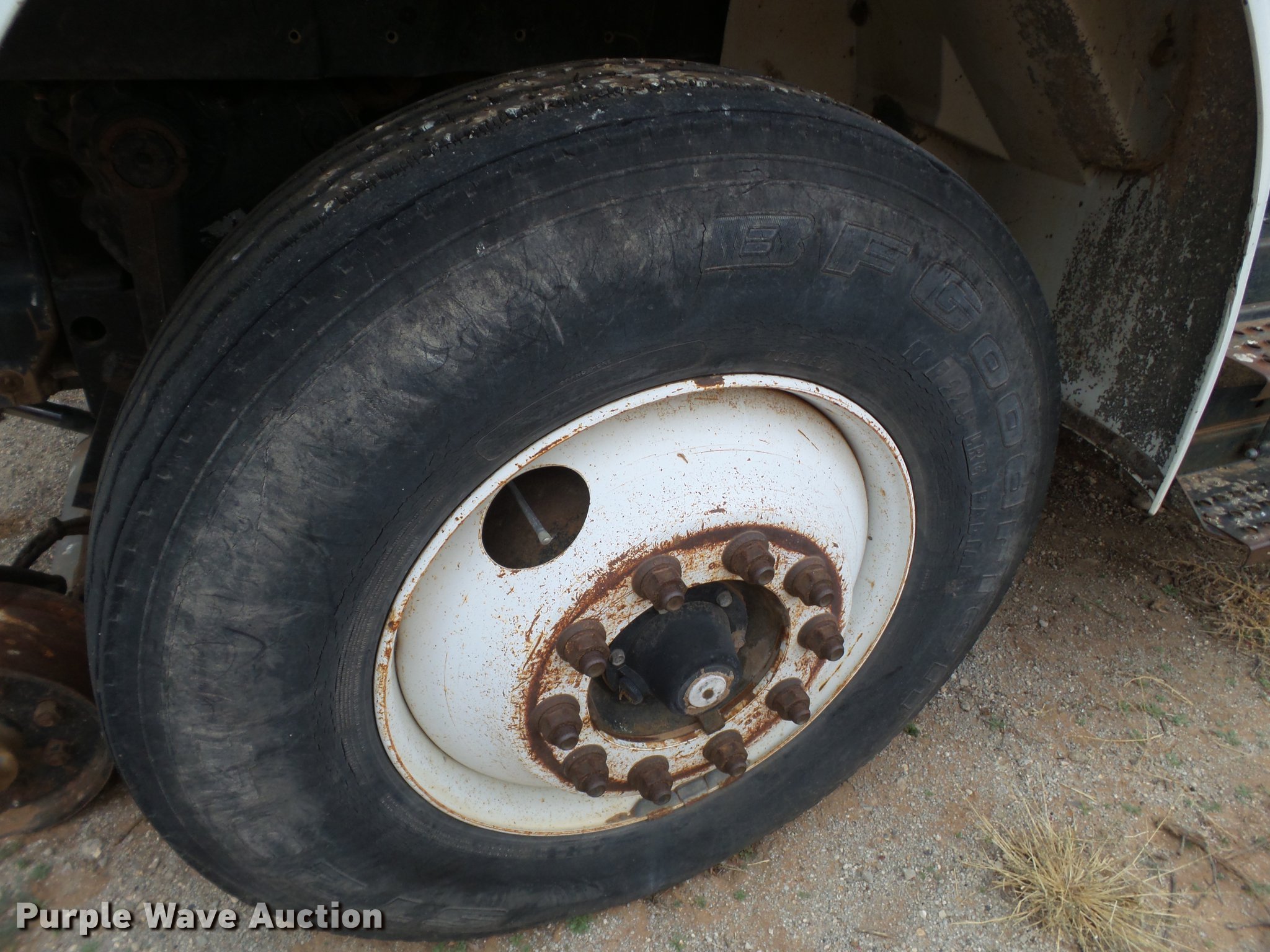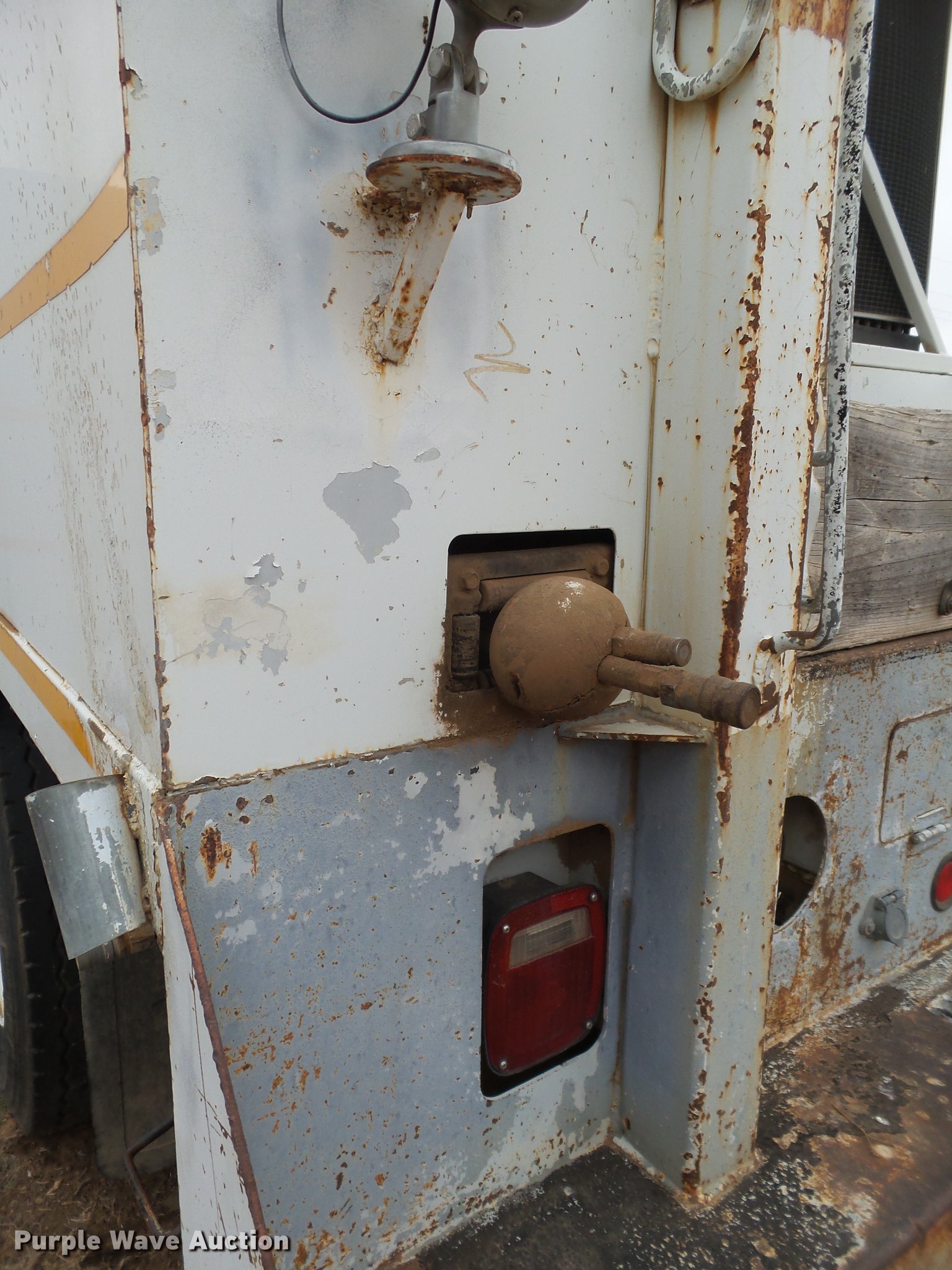 Purple Wave is selling a used Service Truck in Texas. This item is a 1998 International 4900 Crew Cab railroad service truck with crane with the following: 195,211 miles on odometer, 13,251 hours on meter, International DT466 7.6L L6 diesel engine, Single axle, Suspension seat, PTO, Backup alarm, Front tow hooks, Utility bed, Shelving, Hydraulic hoses, Utility rack, Hydraulic operated railroad wheels, Auto Truck 425AT crane, 31' boom length, 4,000 lbs maximum lift capacity, Remote control, Outriggers, Dual fuel tanks, Spring suspension, Air brakes, 11R22.5 tires