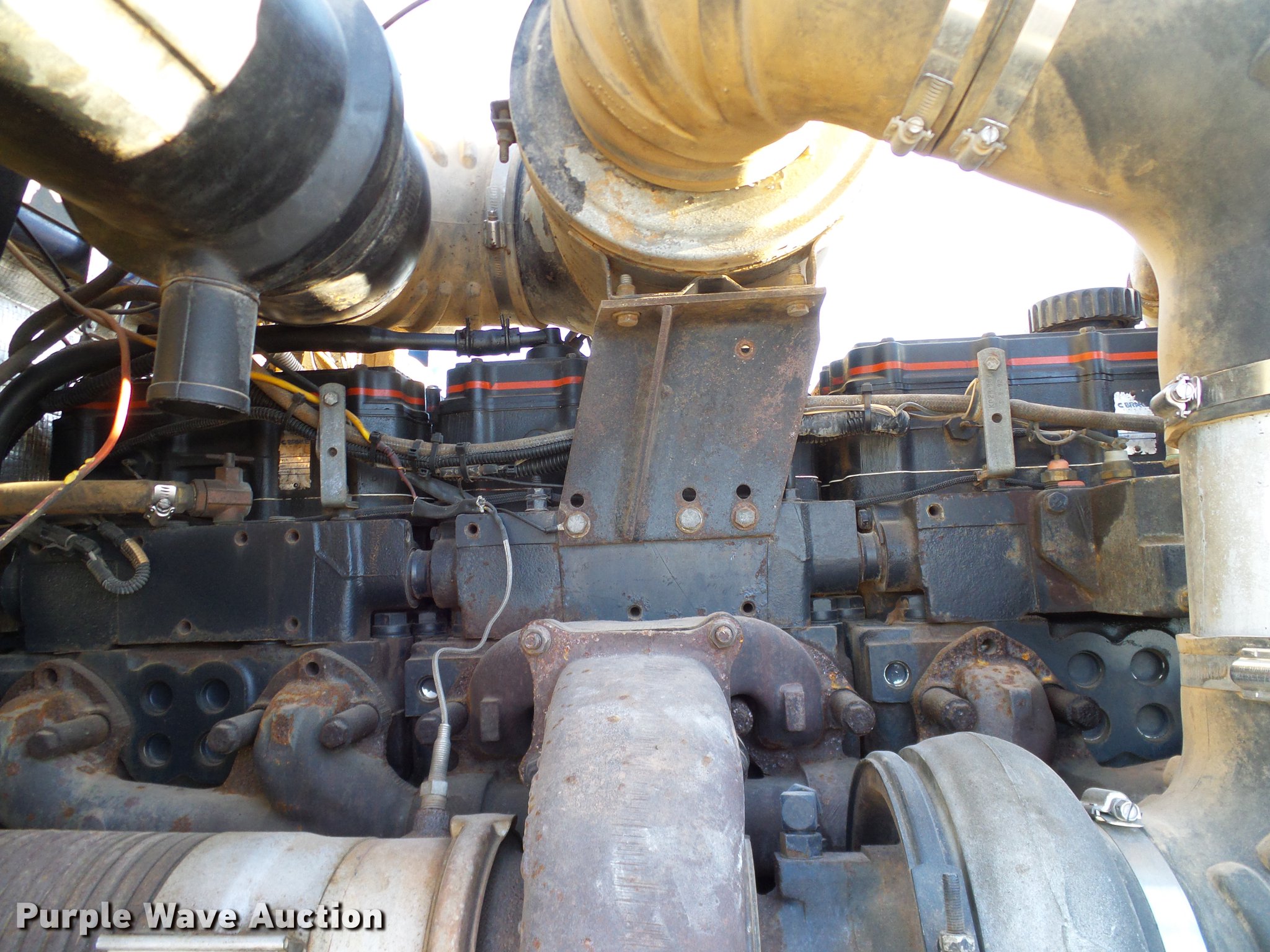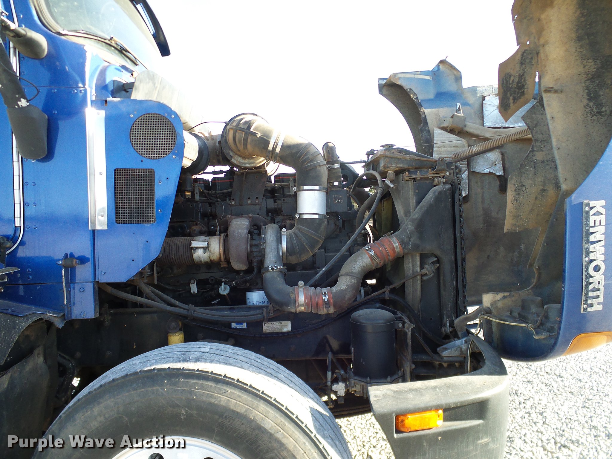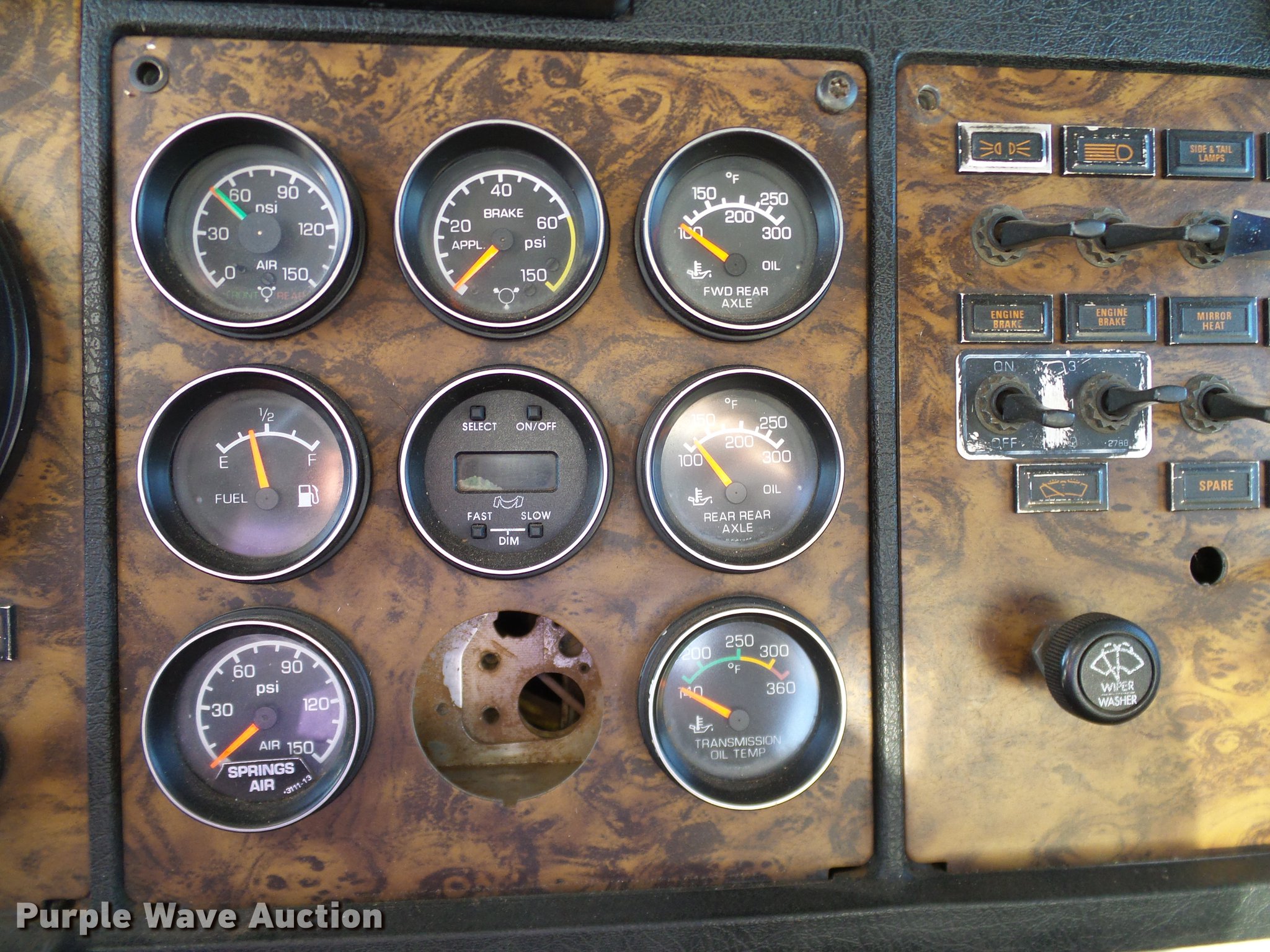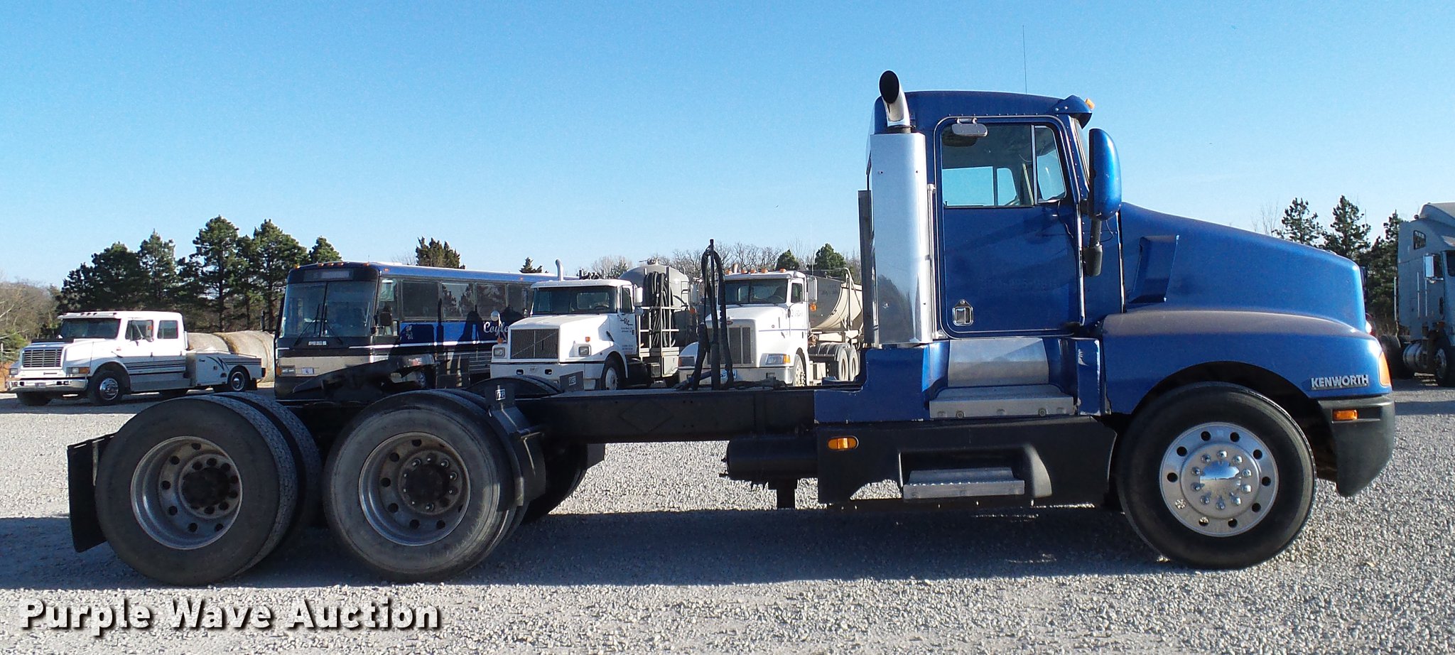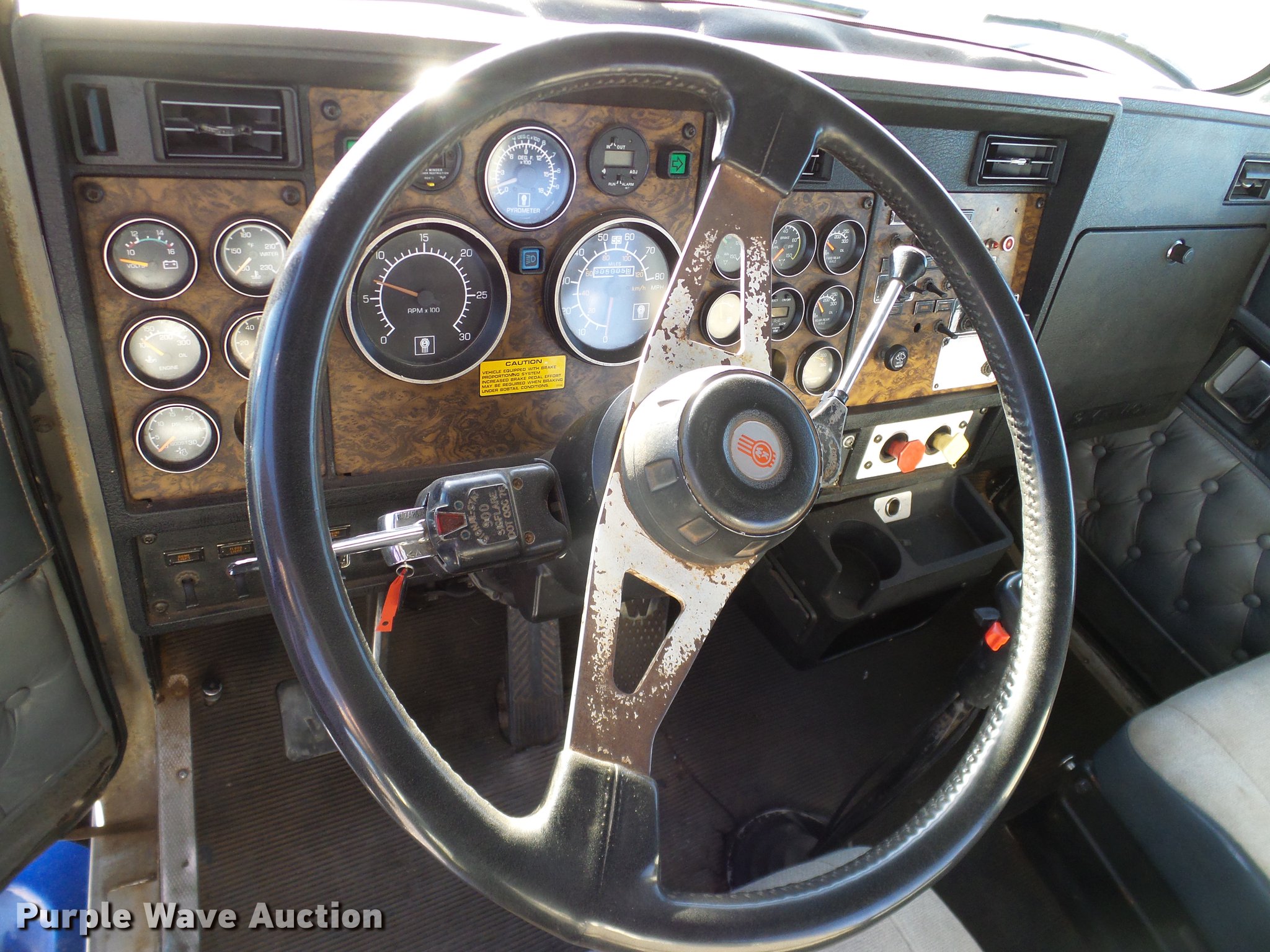 Purple Wave is selling a used Truck Tractor in Oklahoma. This item is a 1993 Kenworth semi truck with the following: 905,005 miles on odometer, Cummins N14 14.0L L6 turbo diesel engine, 410 HP, Serial 11871183, Eaton Fuller speed manual transmission, Tandem axle, Inter-axle differential lock, AC and heat, Tilt, AM/FM/cassette, Heated mirrors, Air suspension seat, Exterior visor, Dump valves, Dual front exhaust stacks, Steel deck plate, Fixed fifth wheel plate, Single fuel tank, Quarter fenders, Mud flaps, 208" wheelbase, Air suspension, Air brakes, Engine brake, 11R24.5 tires