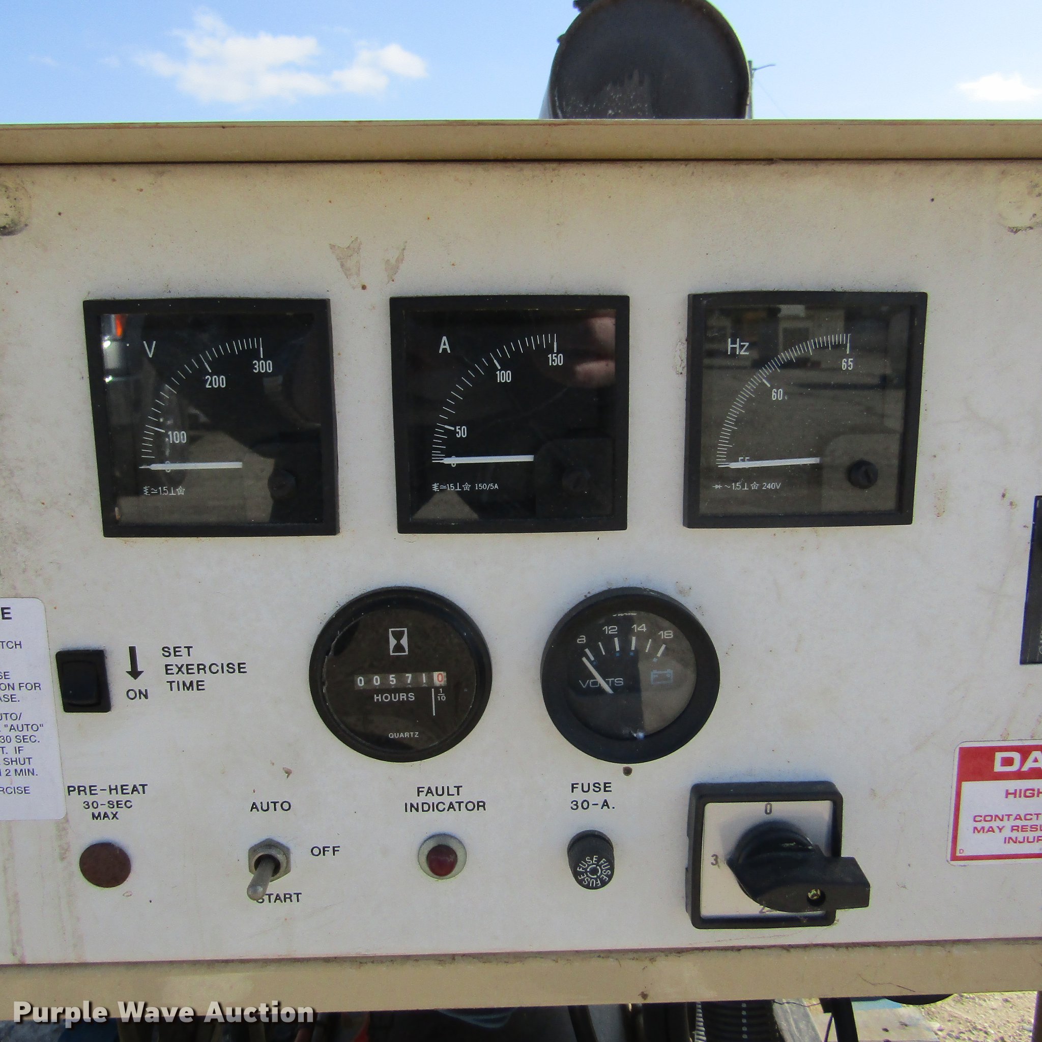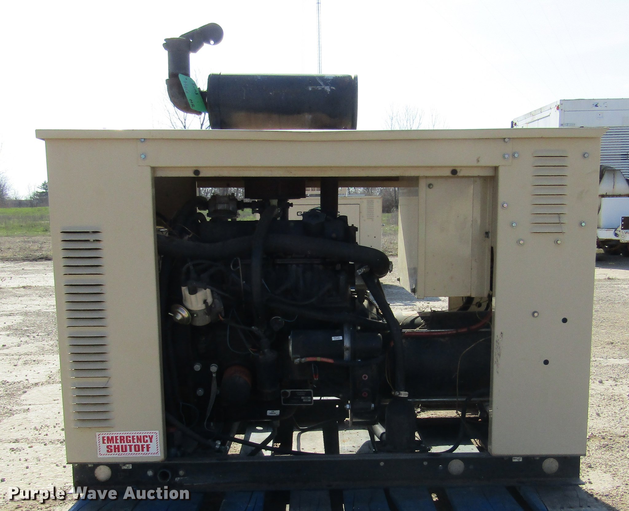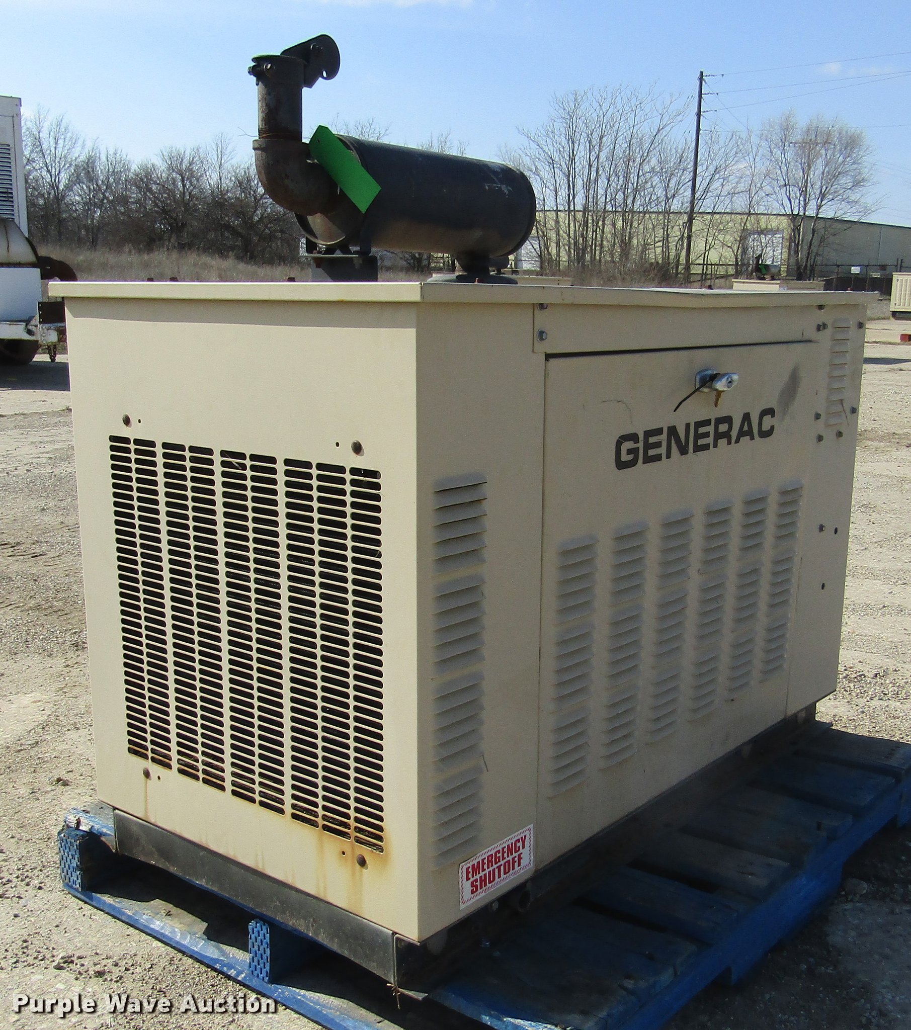 Purple Wave is selling a used Generator Set in Illinois. This item is a 1998 Generac 00752-6 generator with the following: 571 hours on meter, Fiat 1.6L four cylinder propane engine, 15 kW, Serial 97390, 1,800 RPM, Control panel, 120/240V, 62.5 amps, 60 Hz, 15 kVA, 15 kW, Single phase, Built-in automatic transfer switch, Block heater, Skid mounted, No battery, Serial 3096182