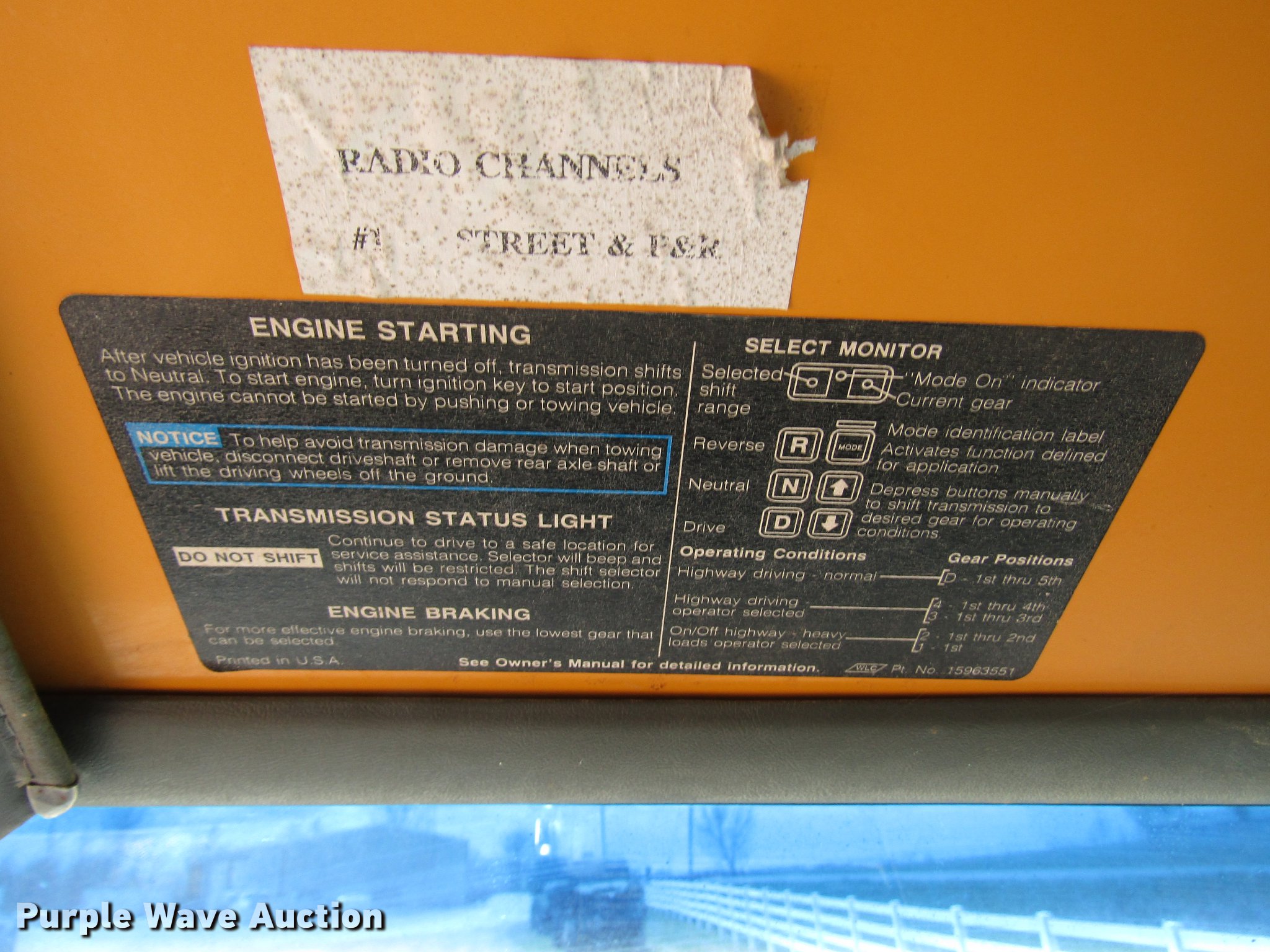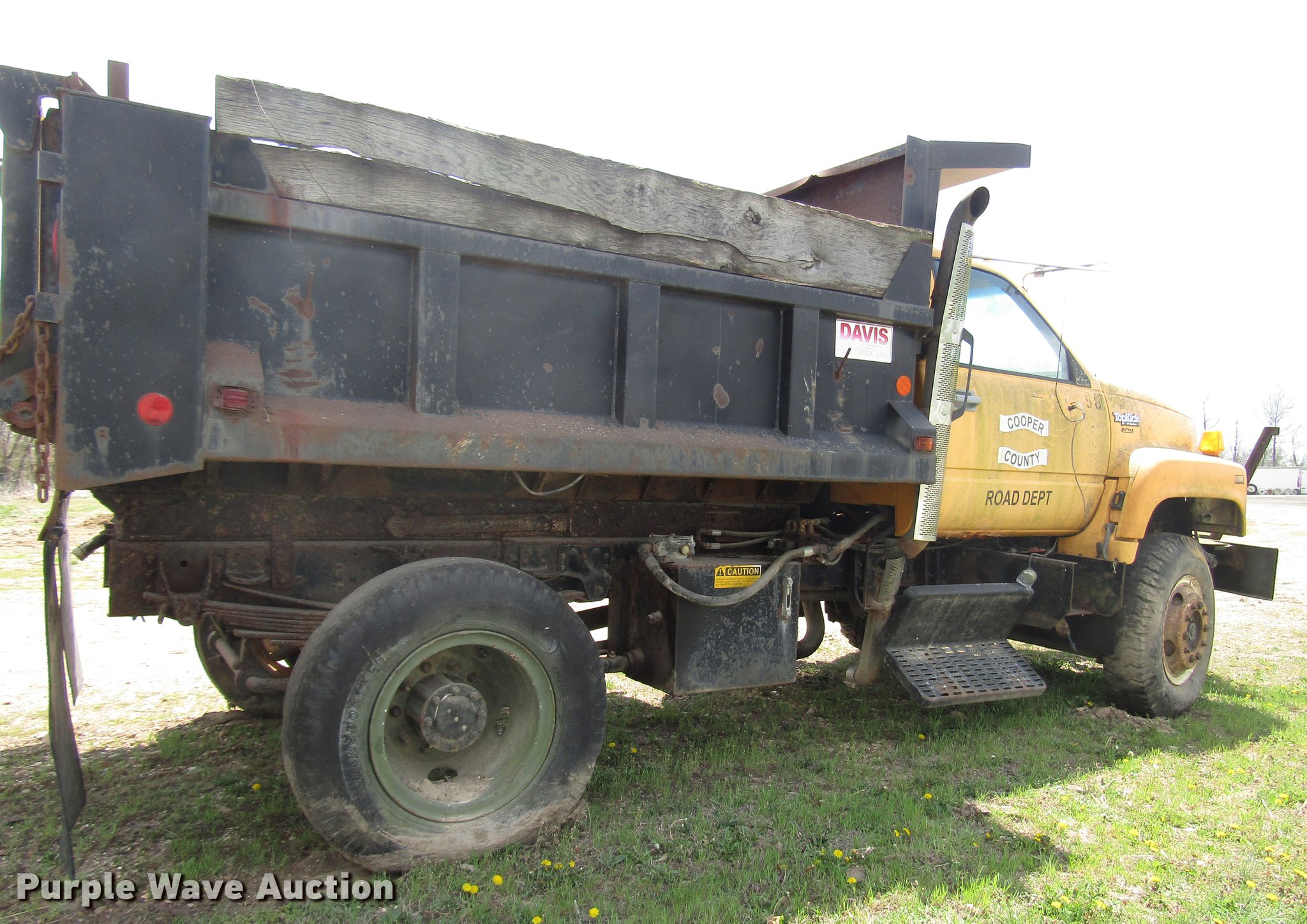 1993 GMC TopKick dump truck. 36,370 miles on odometer, 938 hours on meter, Caterpillar 3116 6.6L L6 turbo diesel engine, Allison automatic transmission, Single axle, Heat, AM/FM, In-cab plow controls, PTO, 9'10"L x 7'7"W steel dump bed 28" side height, 12" side board height, Manual operated end gate, Front snow plow bracket, Single fuel tank, Spring suspension, Air brakes, 11.00R20XL tires, GVWR 33,000 lbs, No drivers seat, Non-operational unit. Missouri title. Seller is a government entity who will be assigning and distributing the title. Please contact the seller for distribution questions. 1GDM7H1J0PJ516166. Cooper County. 200 Main St. Boonville, MO 65233