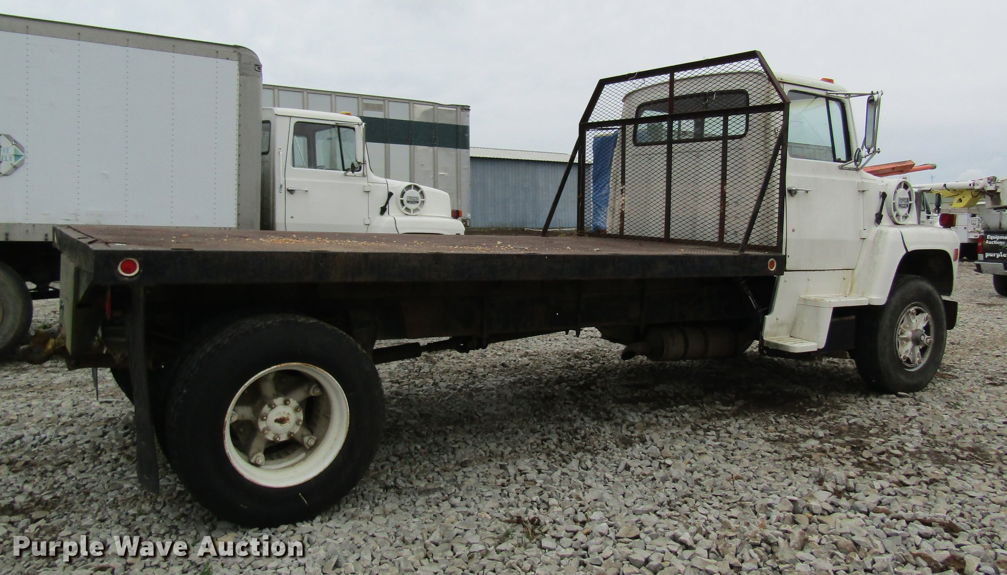 Purple Wave is selling a used Flat Bed Truck in Missouri. This item is a 1985 Ford 8000 flatbed truck with the following: 187,270 miles on odometer, Caterpillar 3208 10.4L V8 diesel engine, Five speed manual transmission, Heat, Suspension seat, 14'L x 8'W flatbed, Steel floor, Single fuel tank, Spring suspension, Hydraulic brakes, 11R22.5 front tires, 295/75R22.5 rear tires, GVWR 30,200 lbs