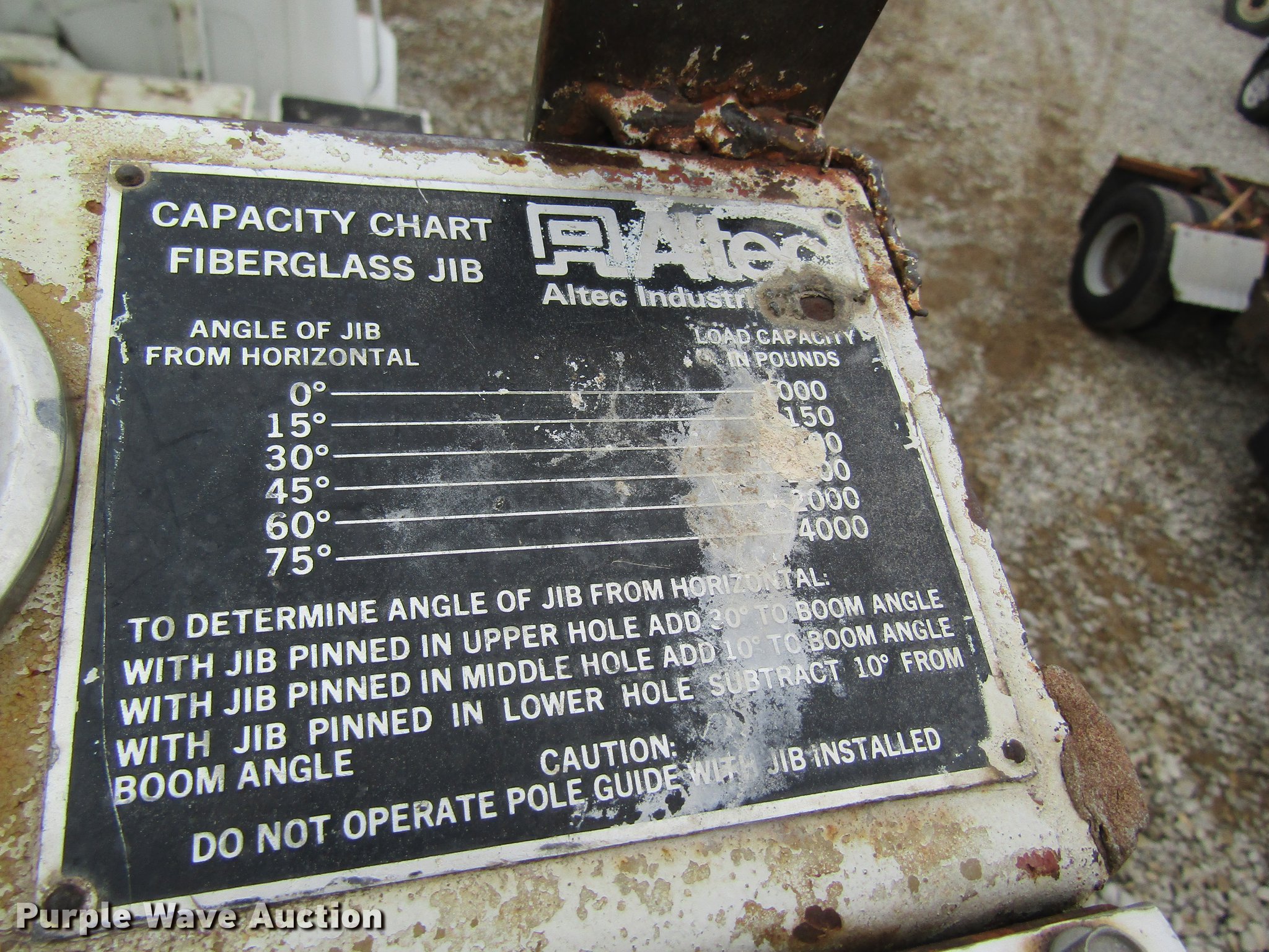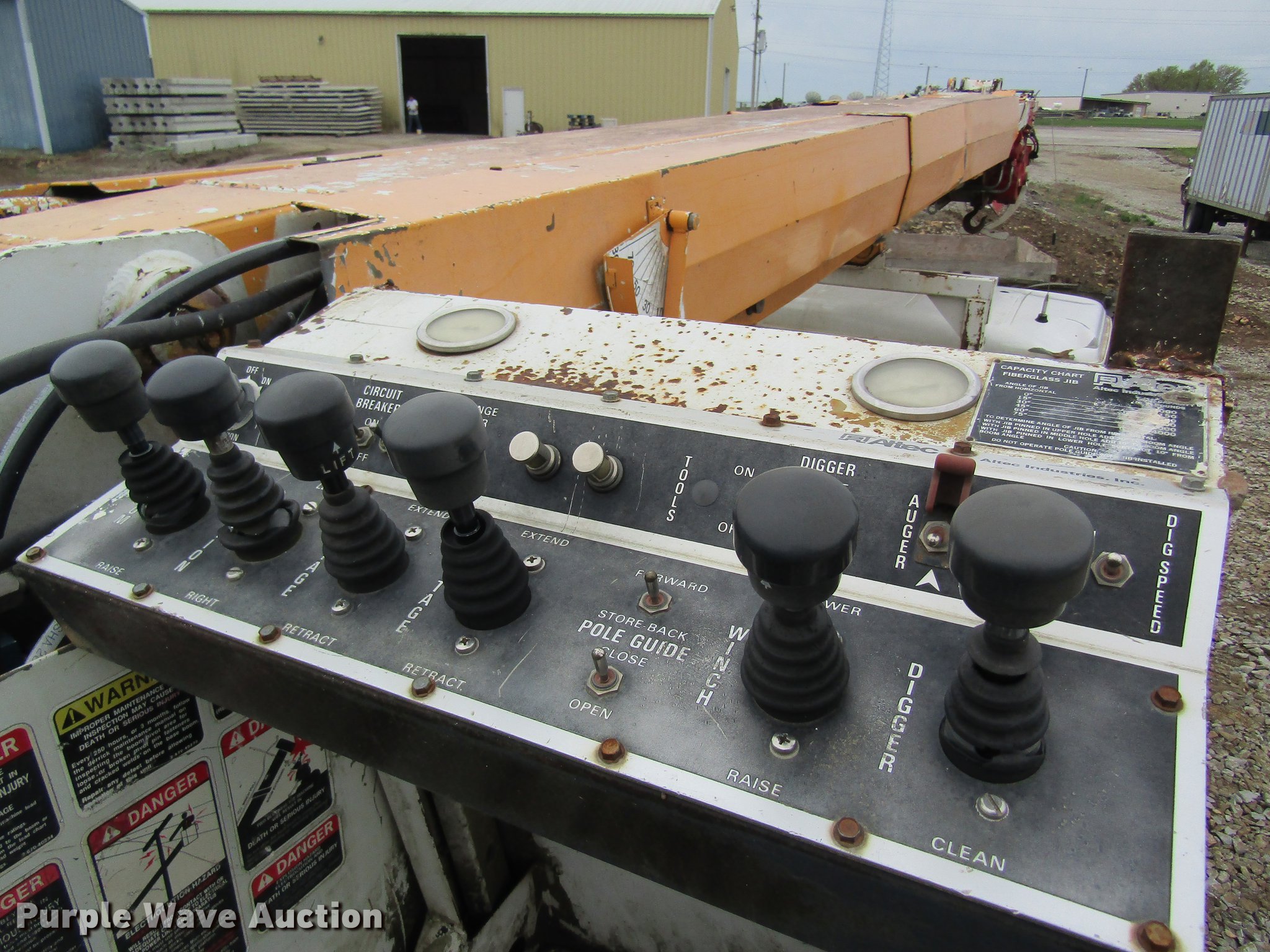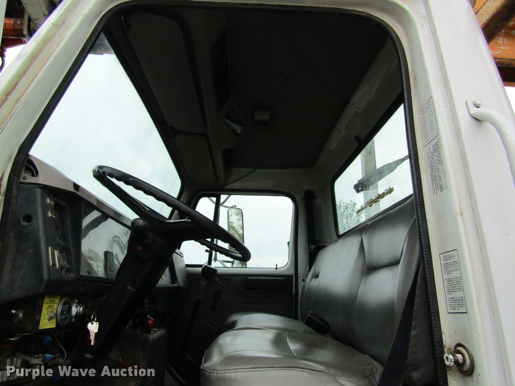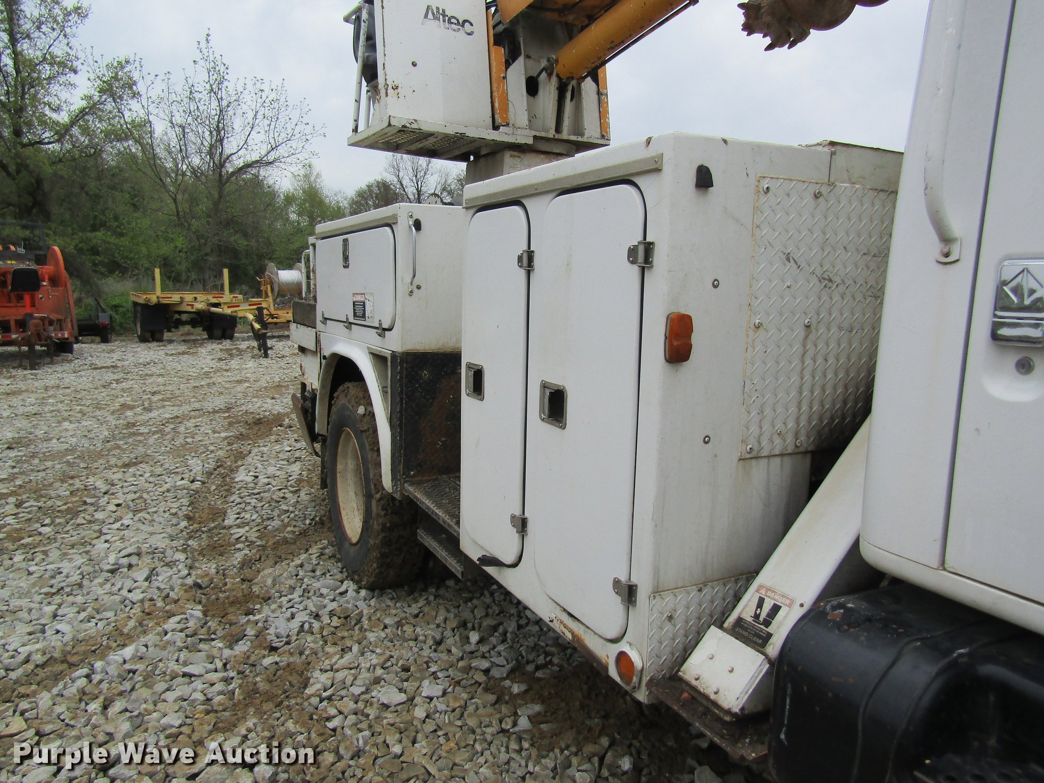 Purple Wave is selling a used Digger Derrick Truck in Missouri. This item is a 1996 International 4800 digger derrick truck with the following: 168,824 miles on odometer, 7,378 hours on meter, International DT466 7.6L L6 turbo diesel engine, Eaton Fuller six speed manual transmission, Four wheel drive, Single axle, AC and heat, AM/FM, Suspension seat, PTO, 10'L utility bed, Shelving, 3'L platform, Altec D842-BR digger derrick, 21,450 lbs max lift capacity, 42' max lift height, Platform boom controls, Pole guide, Telescopic boom, Serial 1289-T0890, Single fuel tank, Pintle hitch, Trailer wiring, Spring suspension, Air brakes, 11R22.5 tires, GVWR 33,000 lbs, No auger bit included