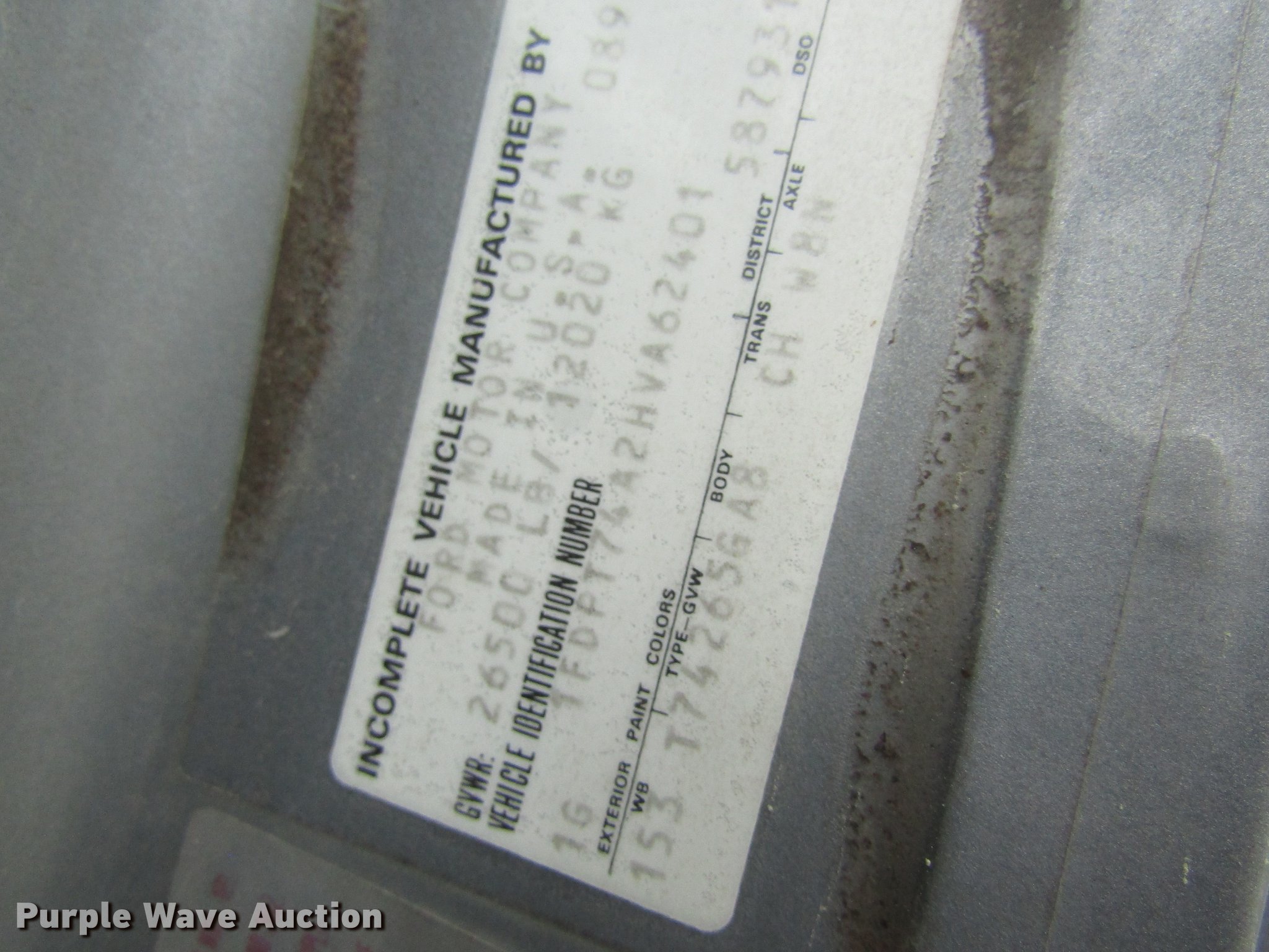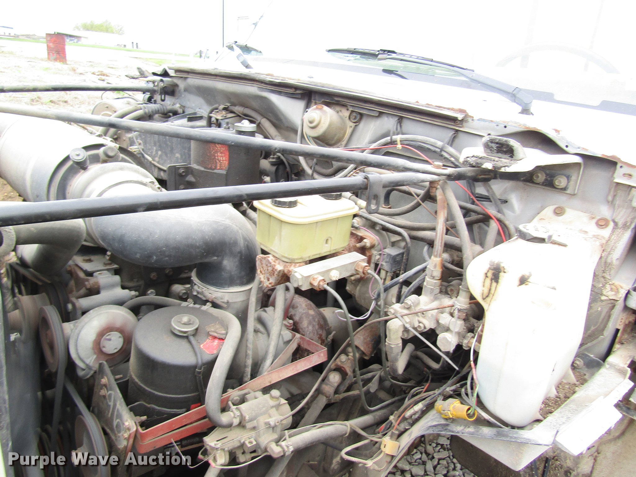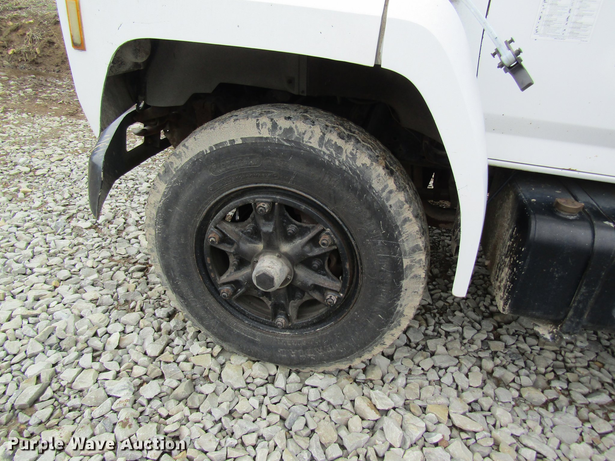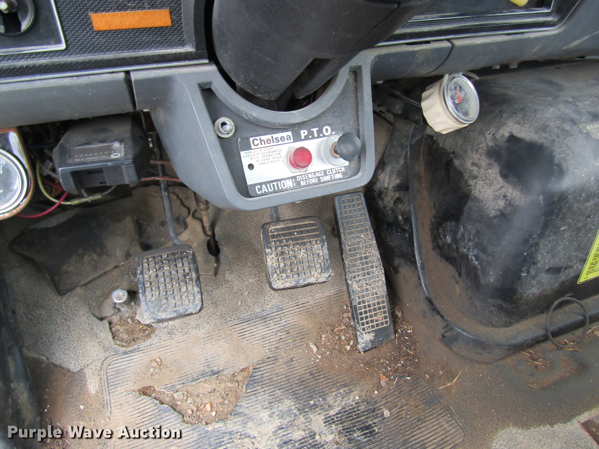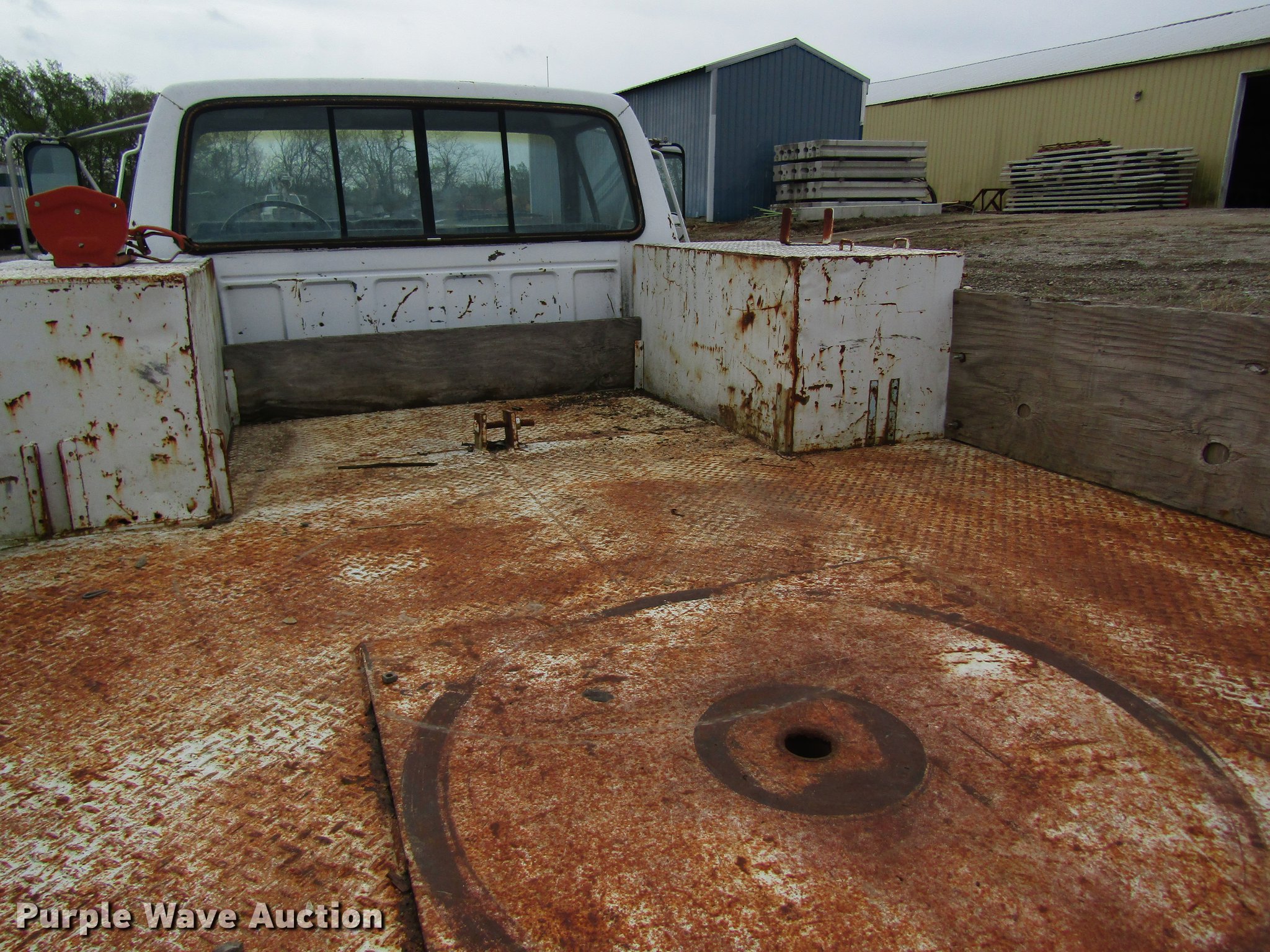 Purple Wave is selling a used Flat Bed Truck in Missouri. This item is a 1987 Ford F700 flatbed truck with the following: 48,231 miles on odometer, 7.8L L6 turbo diesel engine, Five speed manual transmission, Two speed rear end, Heat, AM/FM, Manual locks, Vinyl interior, Flatbed, 10'L x 8'W, 16" side height, Toolbox, Pintle hitch, Trailer wiring, Spring suspension, Hydraulic brakes, 10R22.5 tires