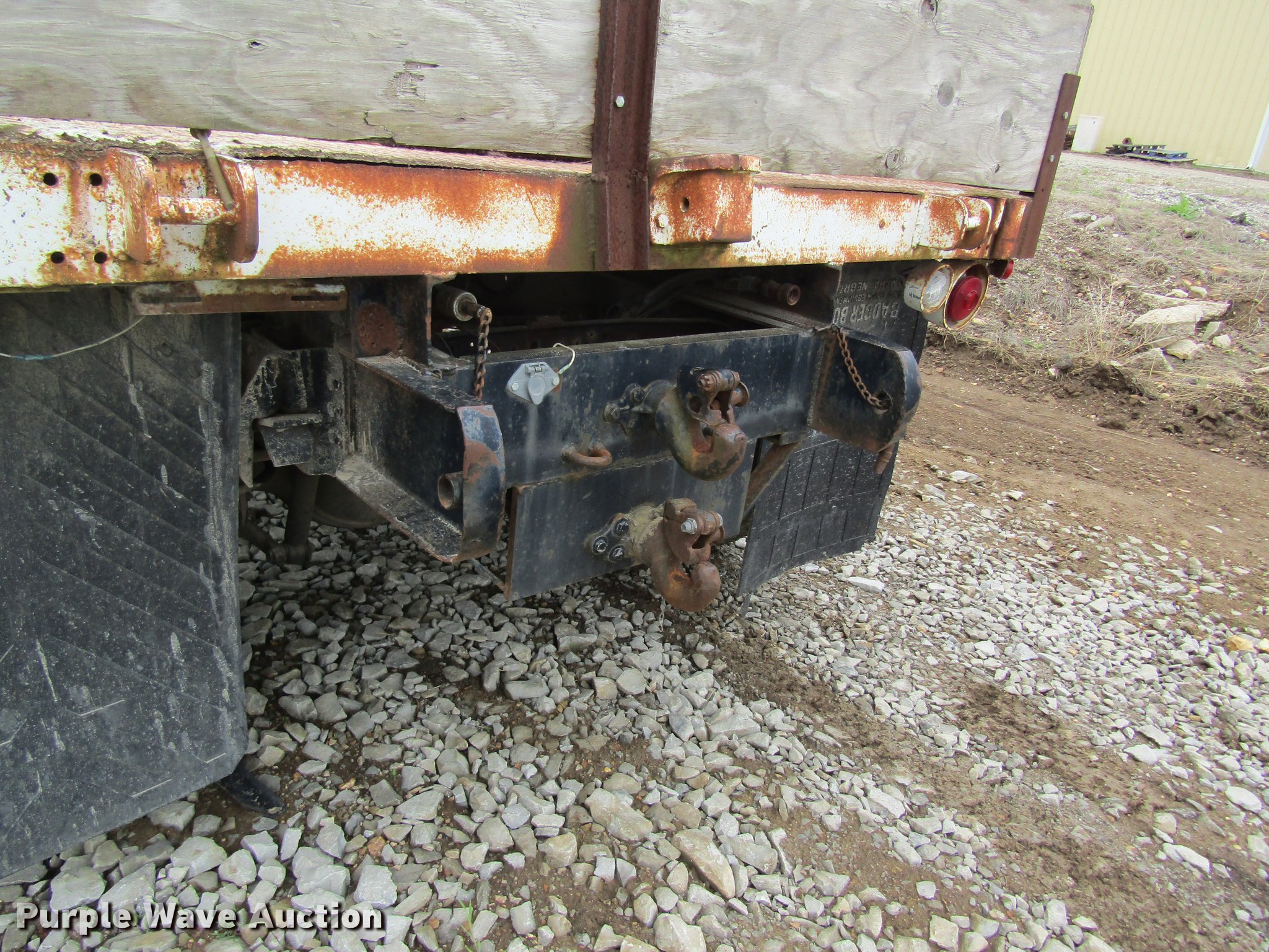 1987 Ford F700 flatbed truck. 48,231 miles on odometer, 7.8L L6 turbo diesel engine, Five speed manual transmission, Two speed rear end, Heat, AM/FM, Manual locks, Vinyl interior, Flatbed 10'L x 8'W, 16" side height, Toolbox, Pintle hitch, Trailer wiring, Spring suspension, Hydraulic brakes, 10R22.5 tires. Missouri title. 1FDPT74A2HVA62401. Kiowa Line Builders. 801 MO-5. Tipton, MO 65081