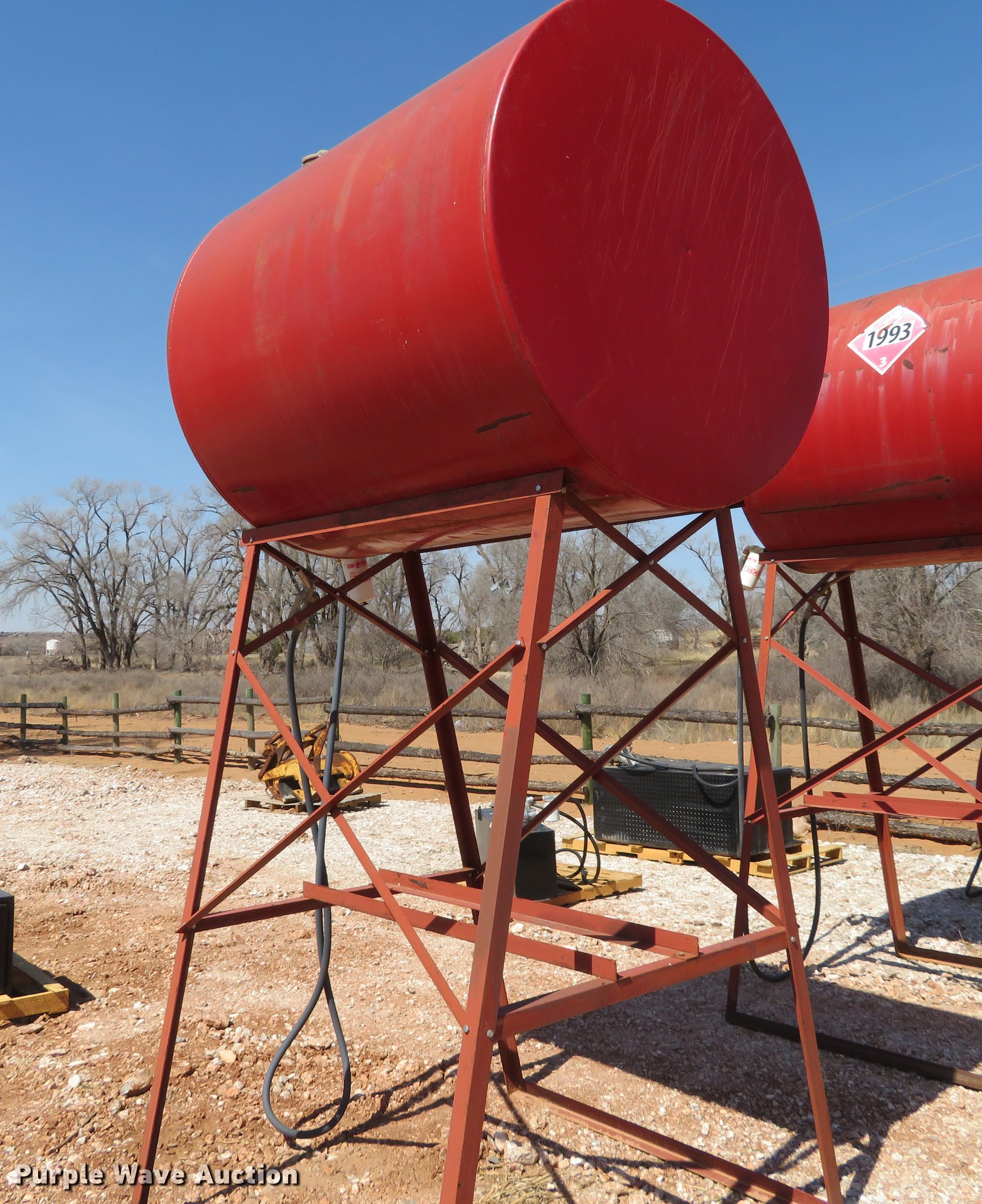 Purple Wave is selling a used Fuel and Lube in Oklahoma. This item is a Steel fuel tank with the following: 5'L x 50" diameter, Approximately 500 gallon capacity, Stand
