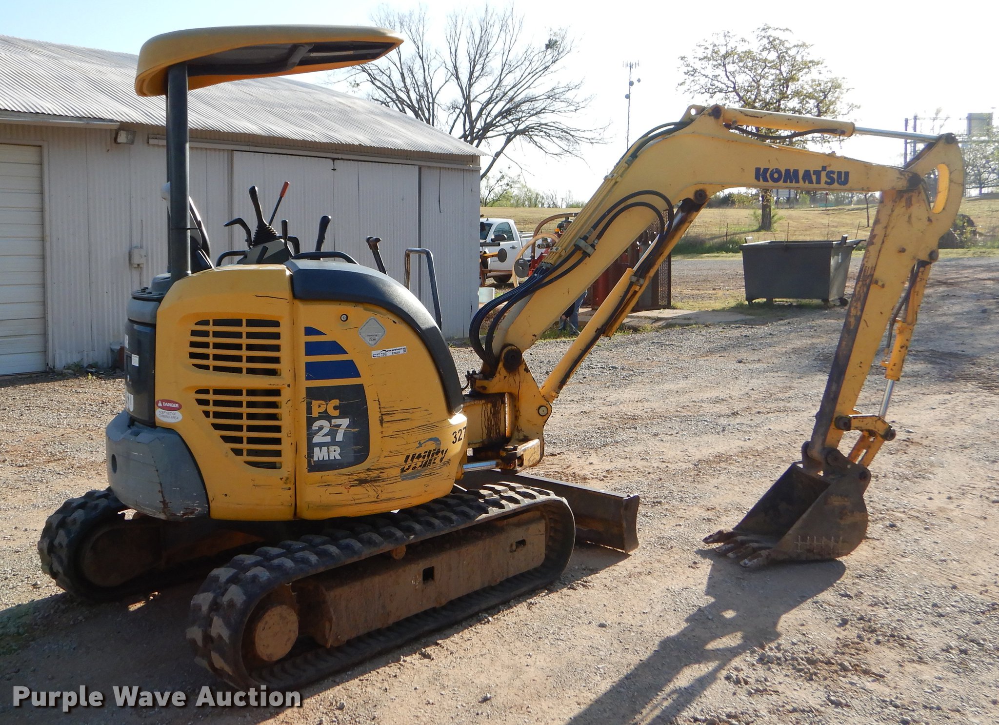 Purple Wave is selling a used Mini Excavator in Oklahoma. This item is a 2007 Komatsu PC27MR-2 mini excavator with the following: 4,034 hours on meter, Hours may vary, unit still in use, Three cylinder diesel engine, Hydrostatic transmission, OROPS, Suspension seat, Standard boom, 49 stick length, Kirby Smith 13"W bucket, (4) bolt-on teeth, 61"W backfill blade, 12"W rubber tracks, Serial KMTPC120C05017085