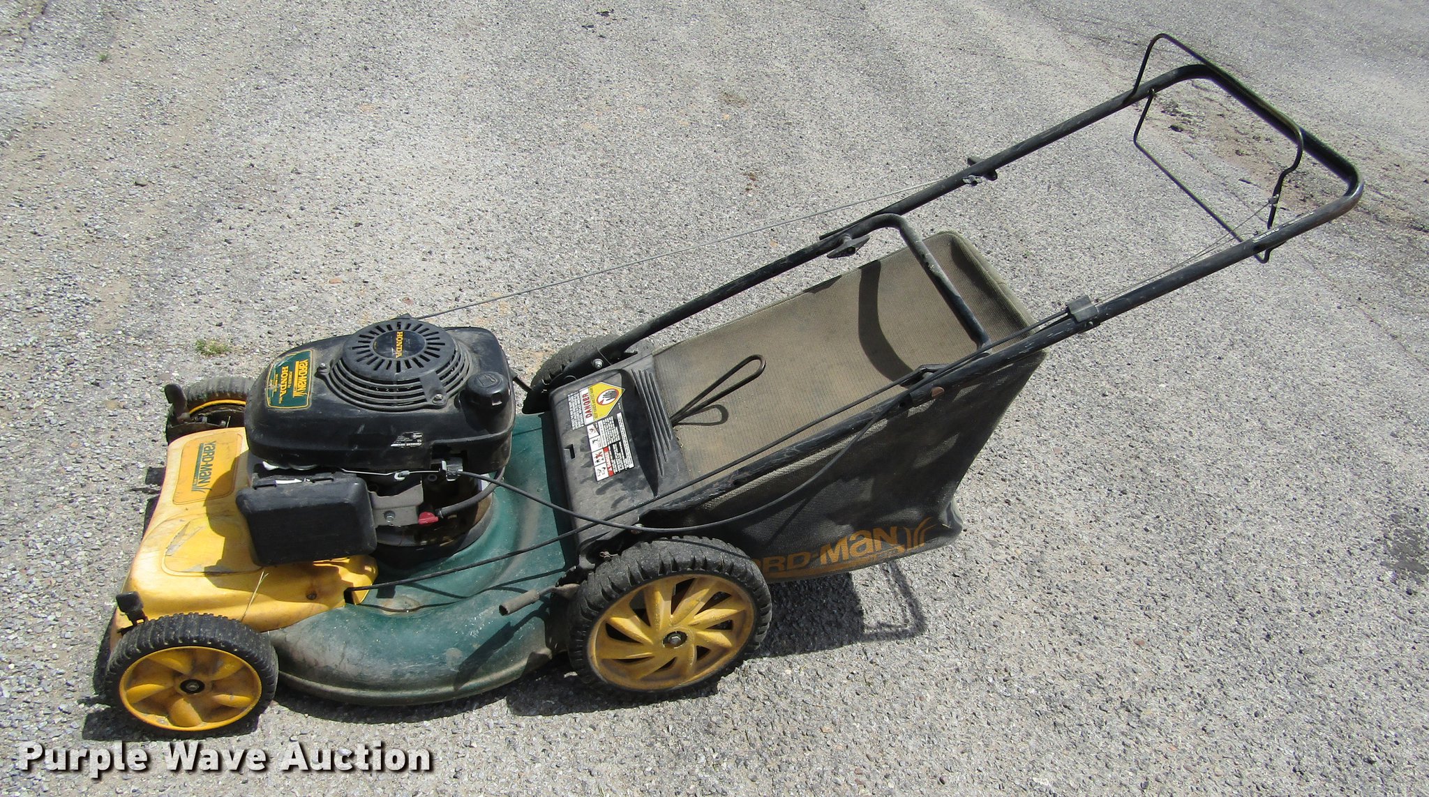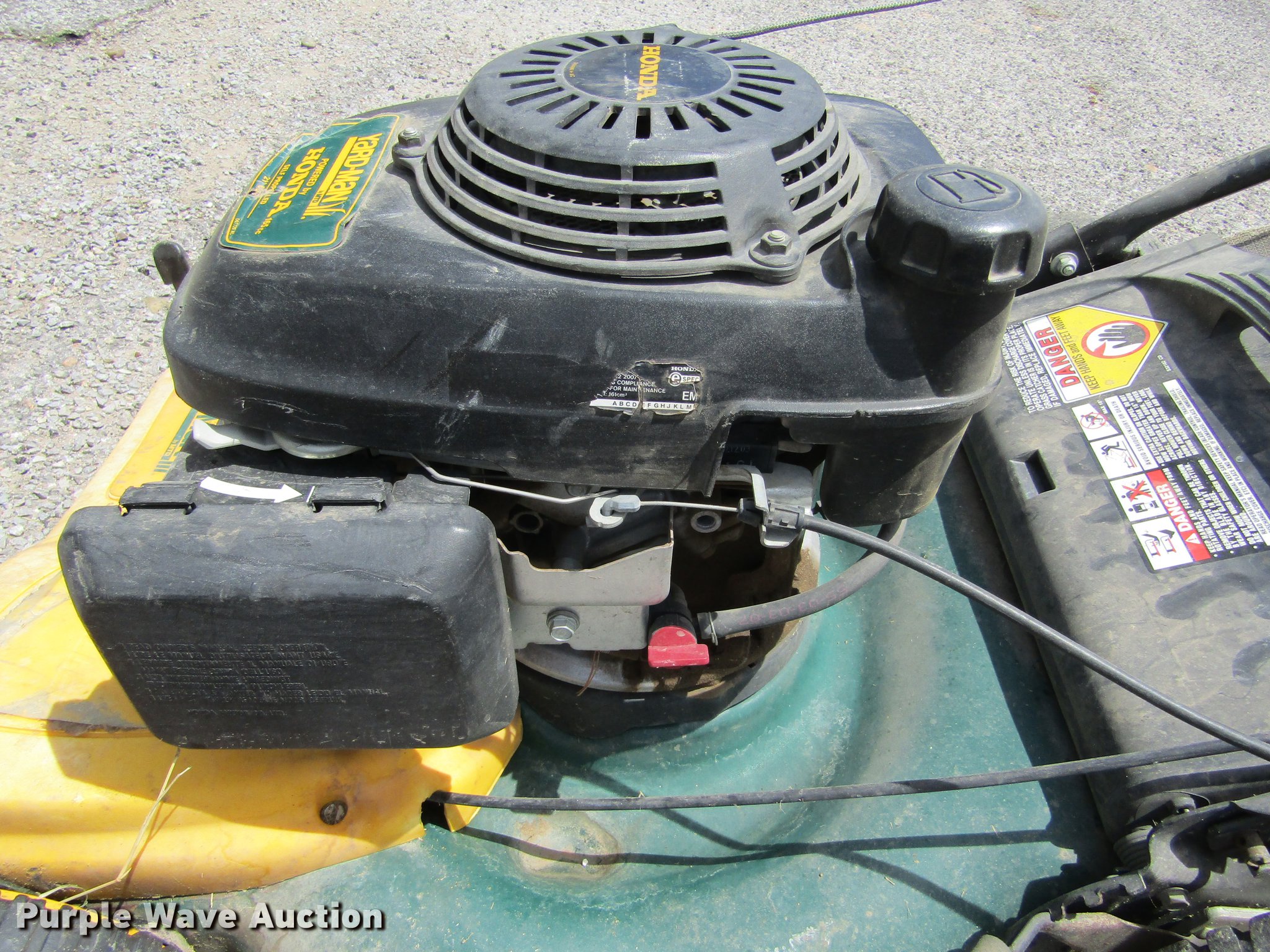 Purple Wave is selling a used Lawn Mower in Kansas. This item is a (2) lawn mowers with the following: Yardman, 20" cutting capacity, Honda single cylinder gas engine, Honda, 20" cutting capacity, Honda GCU160 single cylinder gas engine, Smart drive control, Chop saw table