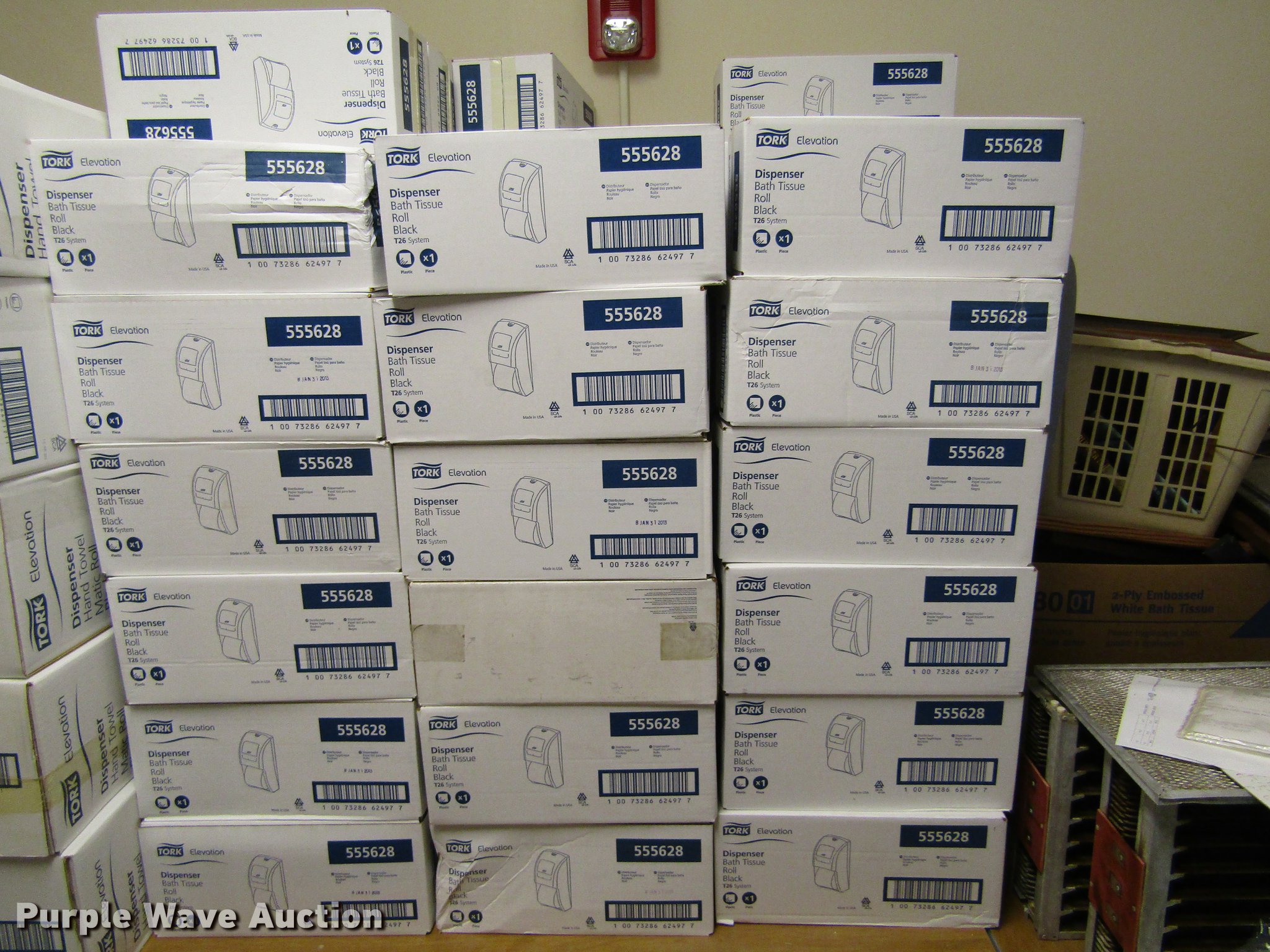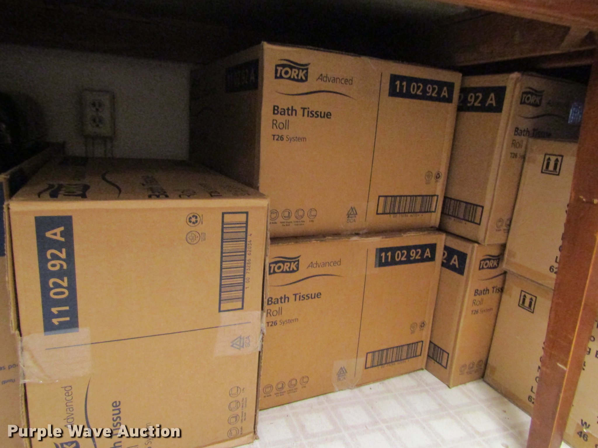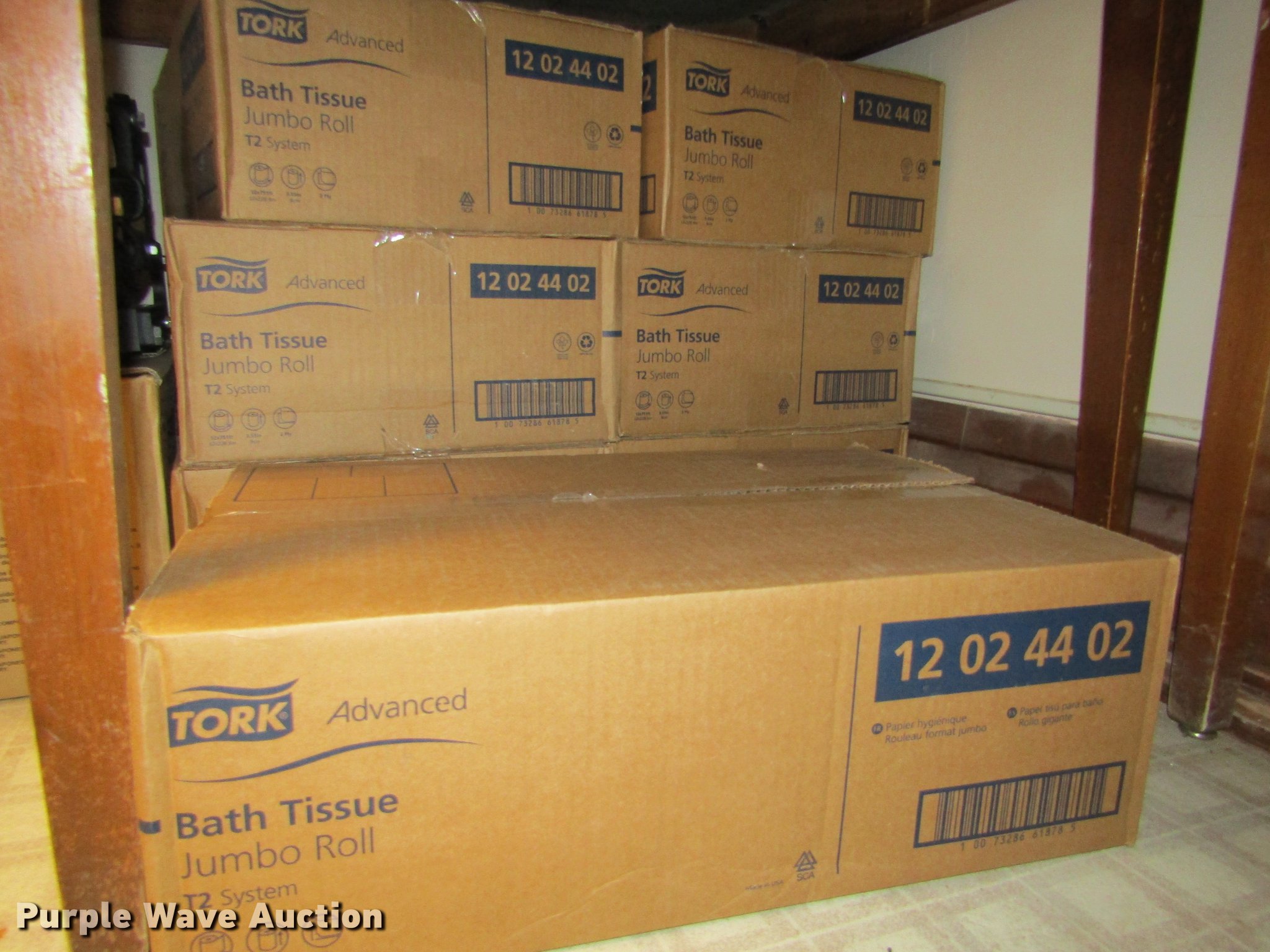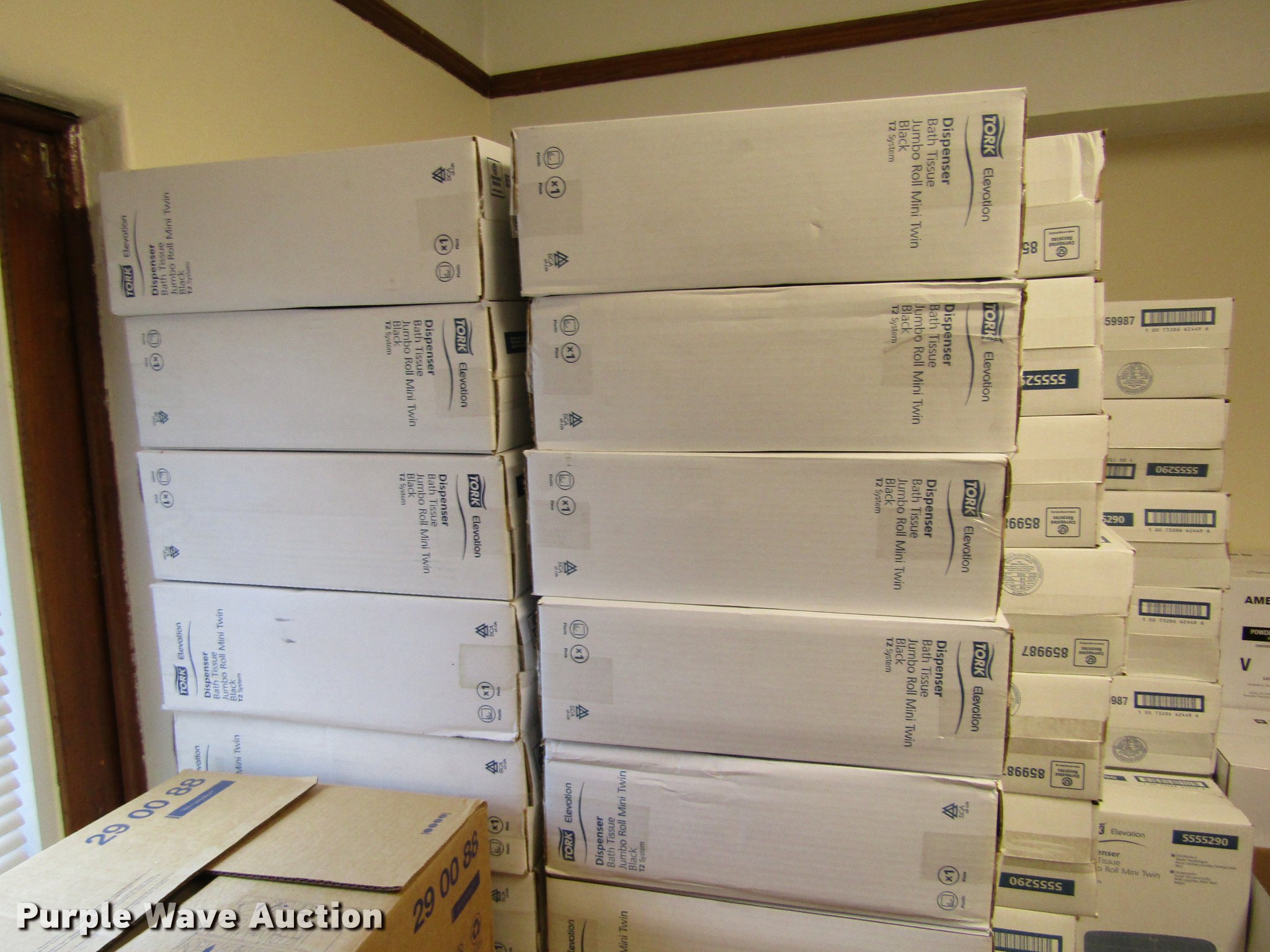 Purple Wave is selling a used Restaurant Equip. in Kansas. This item is a Restroom equipment and supplies with the following: Approx. 81 jumbo roll mini twin bath tissue dispensers, Approx. 7 cases of bath tissues, Approx. 40 bath tissue dispensers, Approx. 7 cases of bath tissue paper