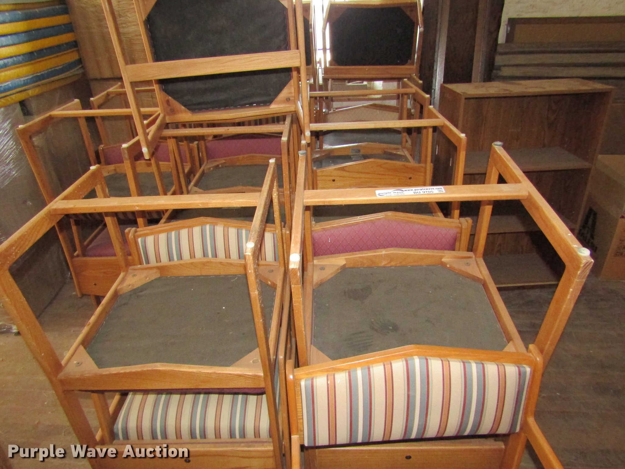 Purple Wave is selling a used Furniture in Kansas. This item is a Approximately 26 wood chairs with the following: Approximately 26 wood chairs. Kansas Soldiers Home. 101 Pershing St. Fort Dodge, KS 67843