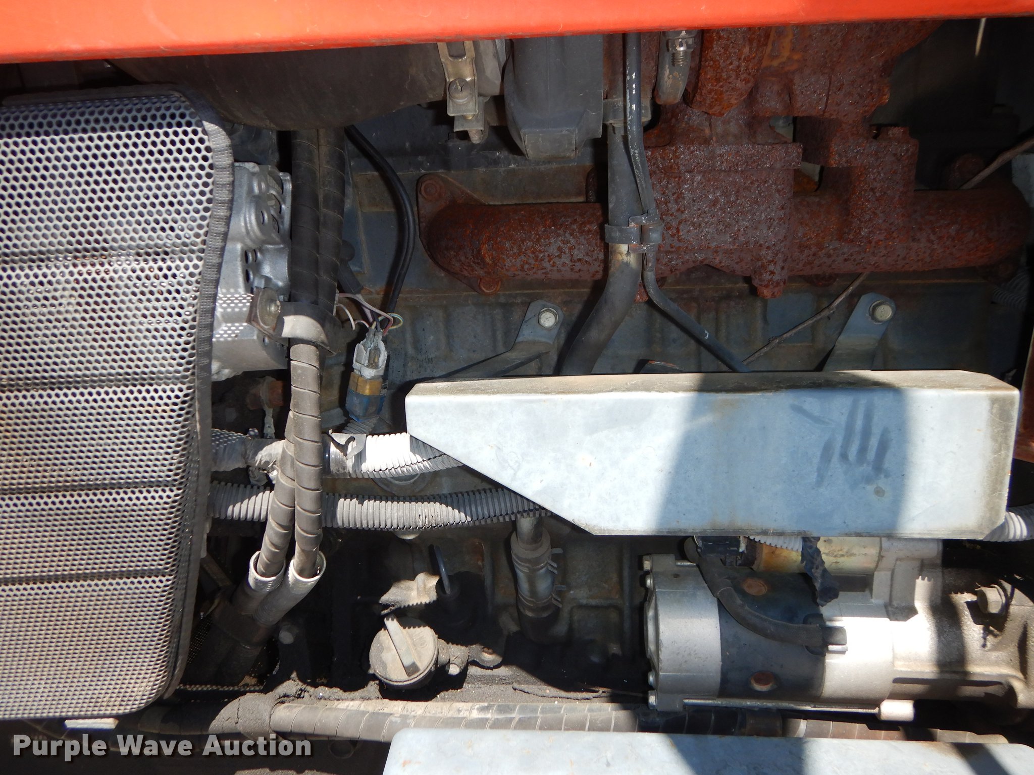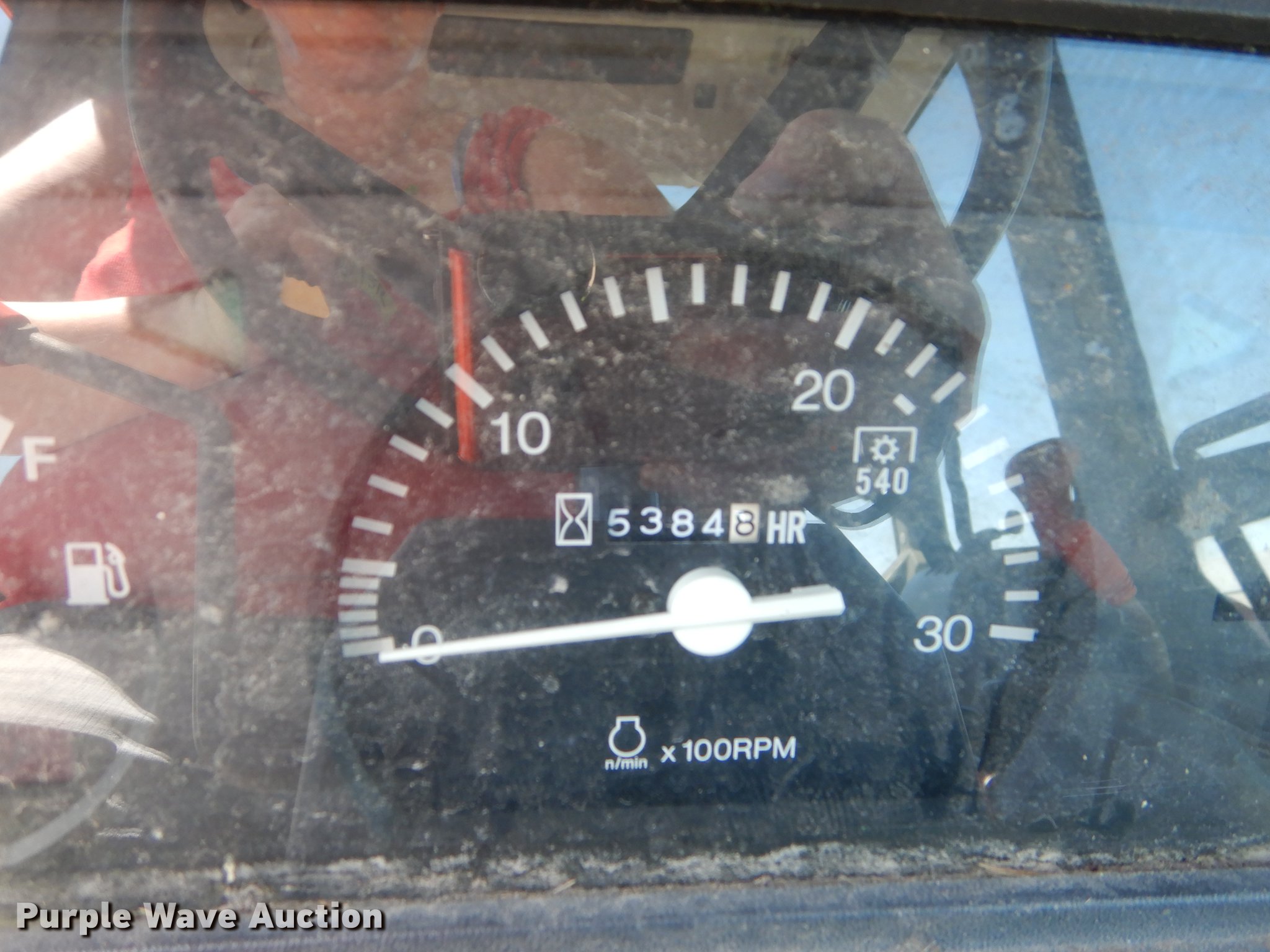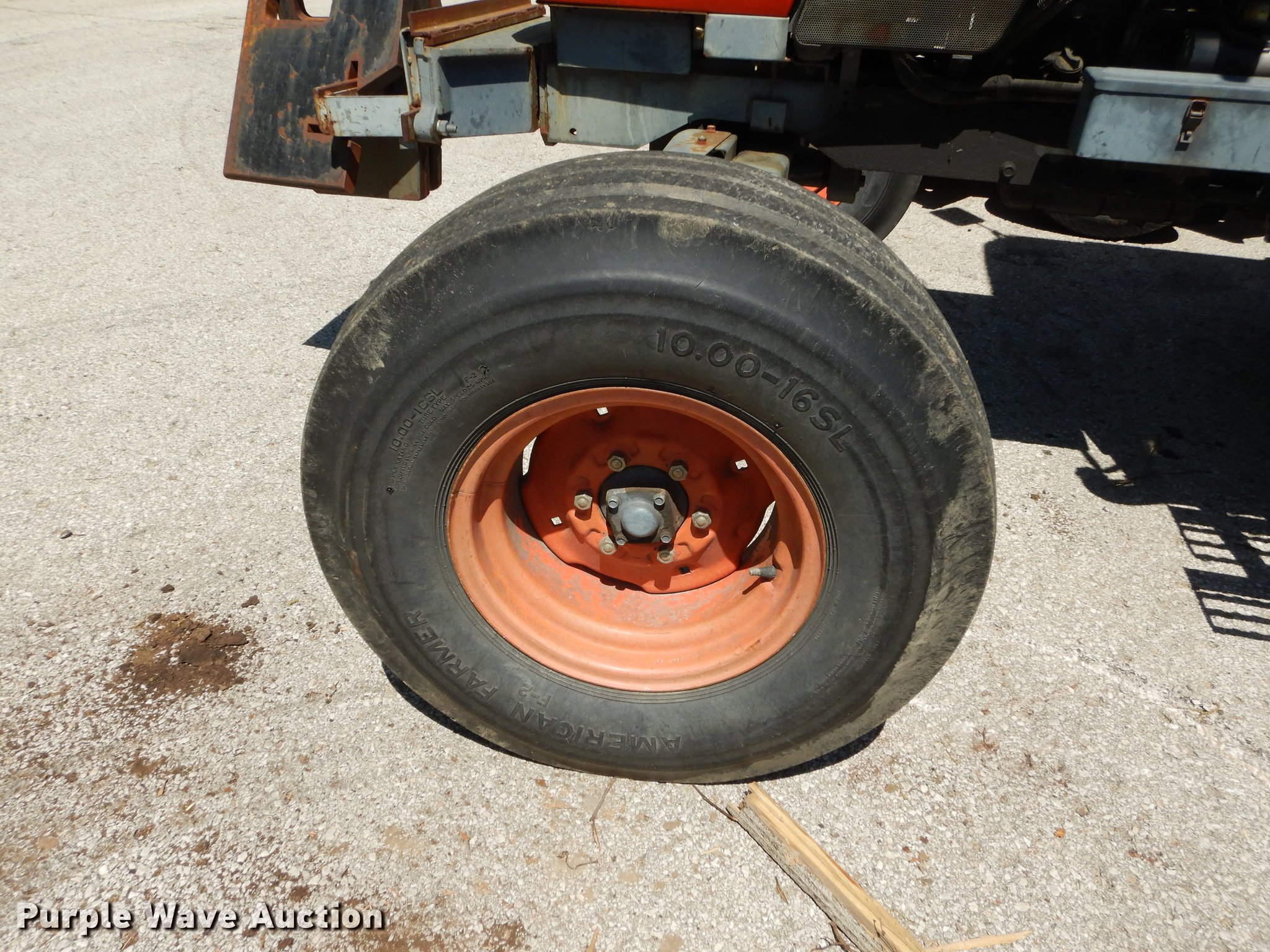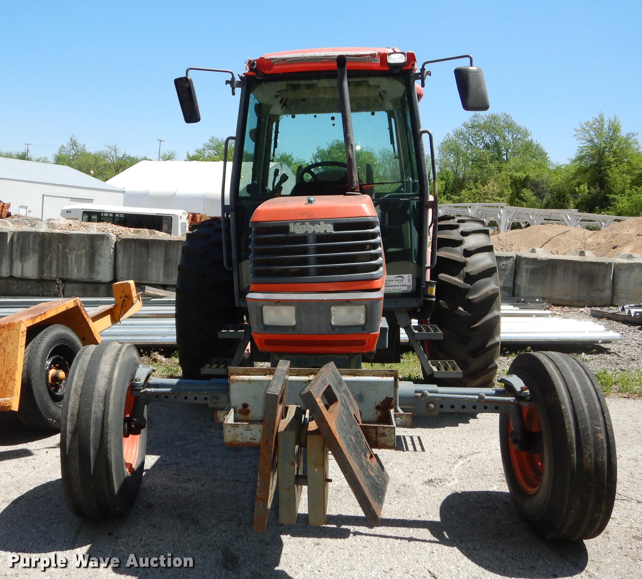 Purple Wave is selling a used Tractor in Kansas. This item is a 1999 Kubota M8200 Utility Special tractor with the following: 5,384 hours on meter, Kubota 3.3L four cylinder diesel engine, 85 HP, 8F-1R gears, Heat, Headlights, Flashers, Three point, 540 PTO, (3) rear hydraulic remote sets, (4) suitcase weights, 18.4-30 front tires, 10.00-16 rear tires, Roof damage, Dead battery, Serial M820-10509, Unit# 215