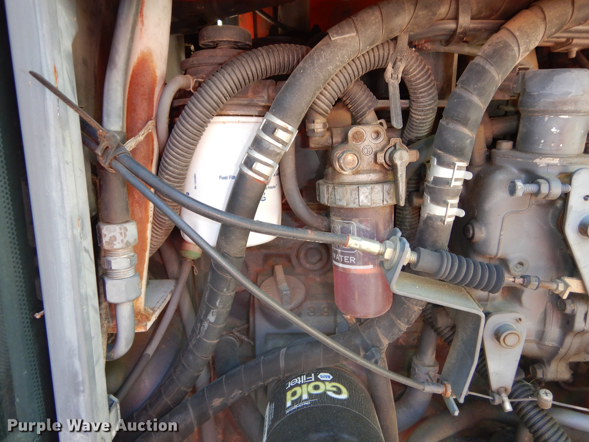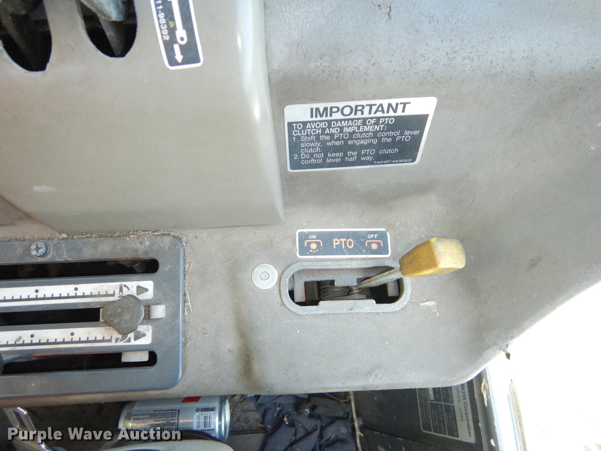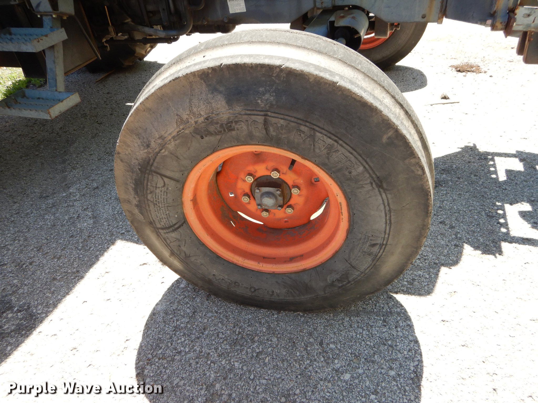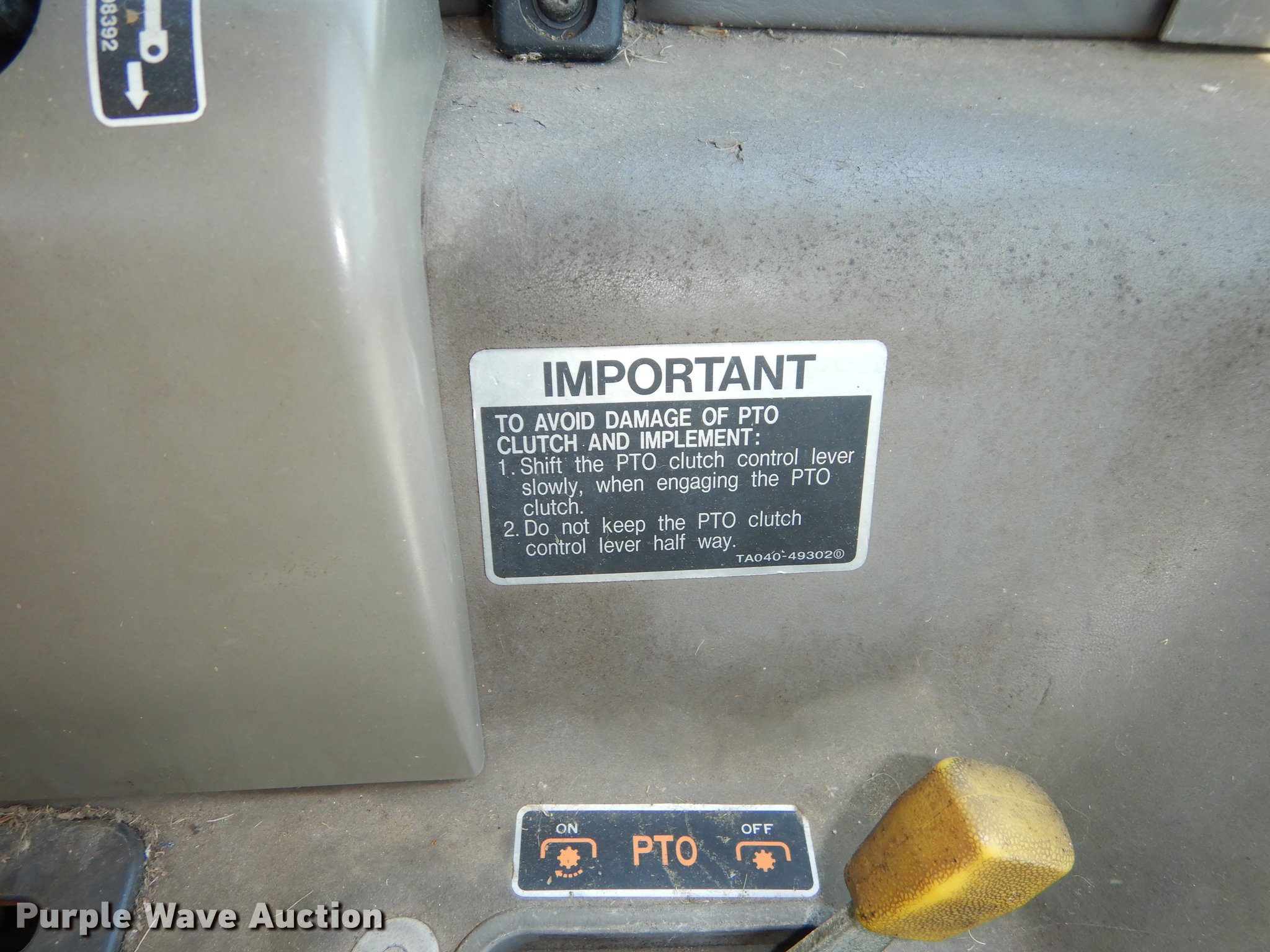 Purple Wave is selling a used Tractor in Kansas. This item is a 1999 Kubota M8200 Utility Special tractor with the following: 5,384 hours on meter, Kubota 3.3L four cylinder diesel engine, 85 HP, 8F-1R gears, Heat, Headlights, Flashers, Three point, 540 PTO, (3) rear hydraulic remote sets, (4) suitcase weights, 18.4-30 front tires, 10.00-16 rear tires, Roof damage, Dead battery, Serial M820-10509, Unit# 215