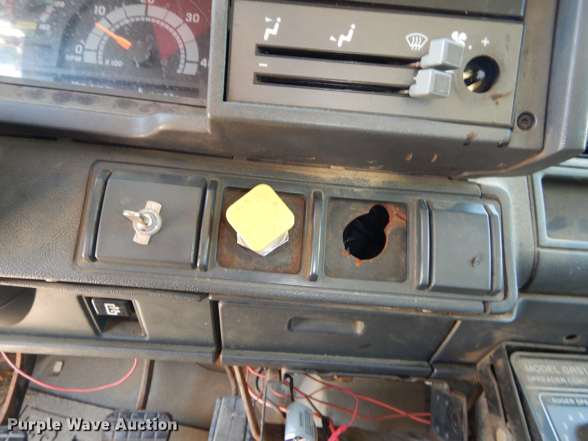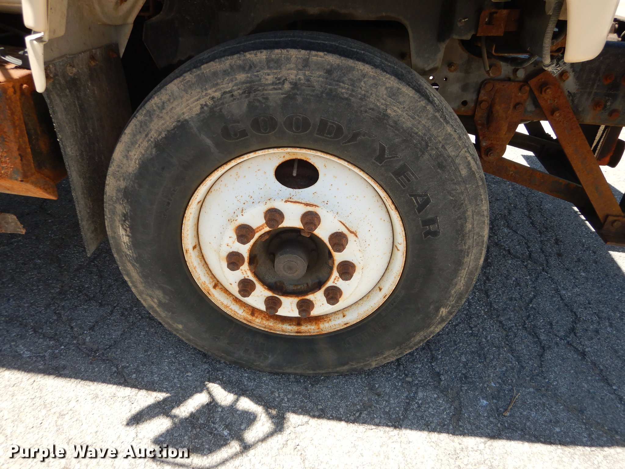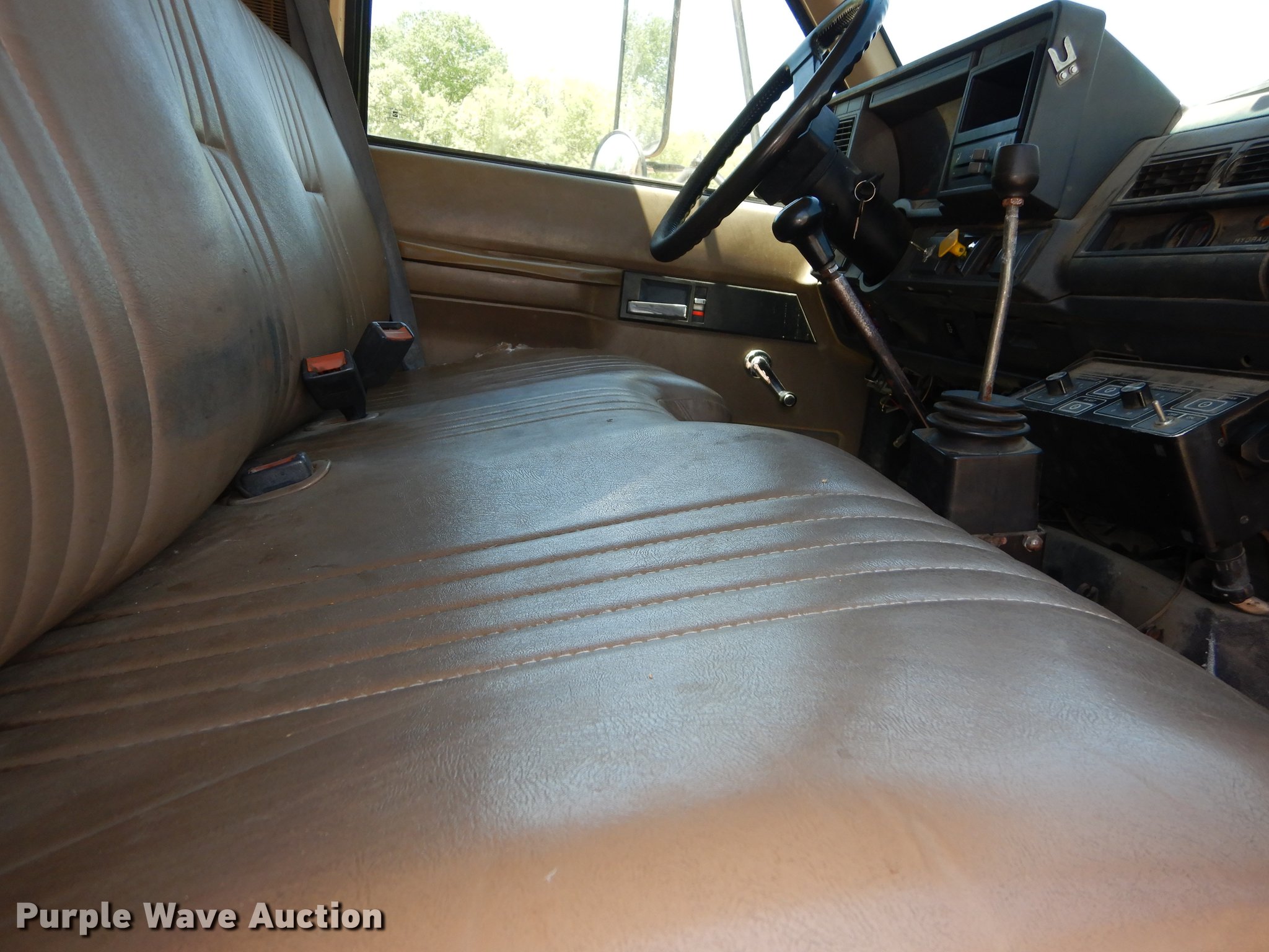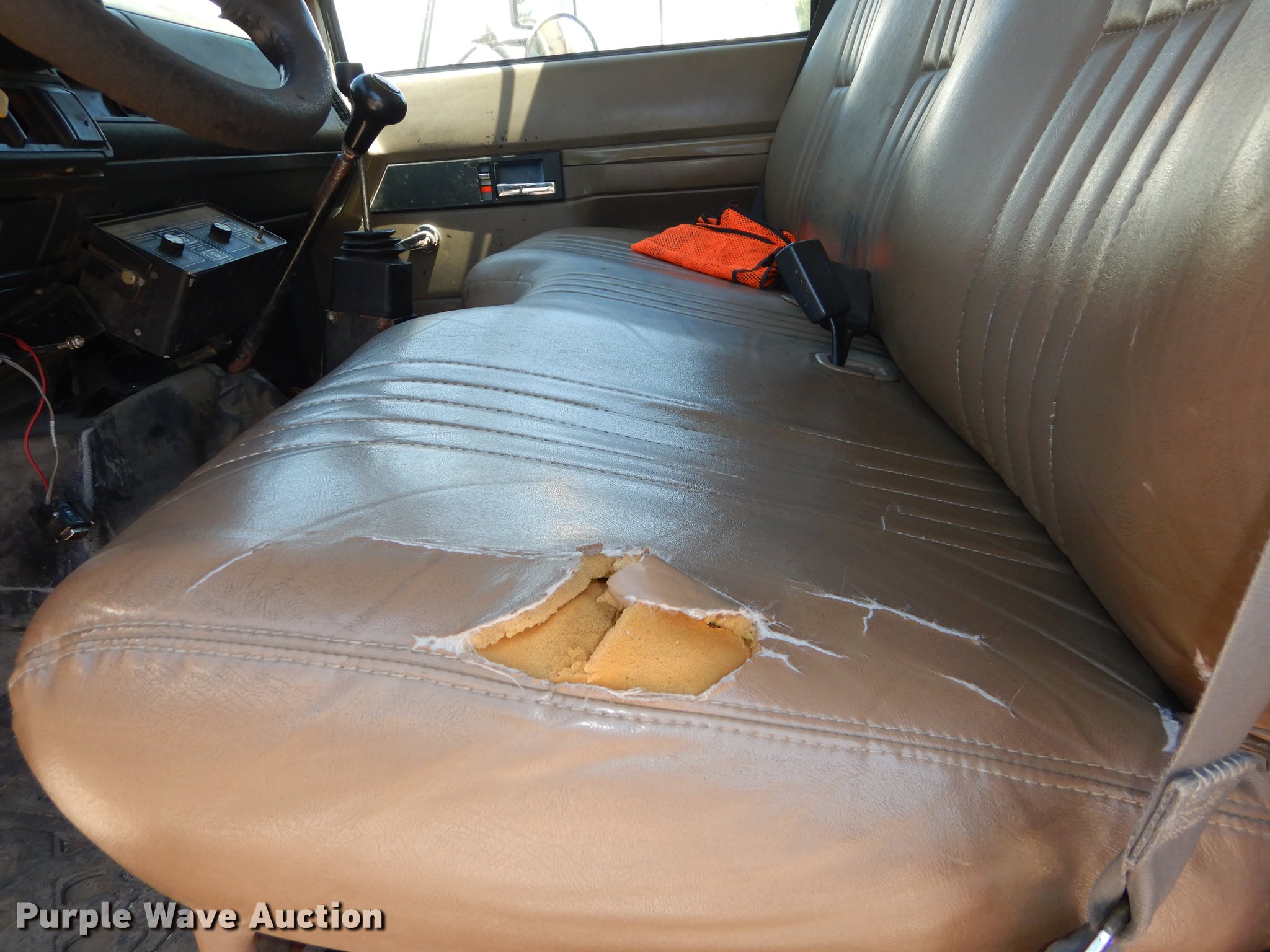 Purple Wave is selling a used Construction Dump Truck in Kansas. This item is a 1997 GMC C8500 dump truck with the following: 84,468 miles on odometer, Caterpillar 3116 6.6L L6 turbo diesel engine, 230 HP, Six speed manual transmission, Single axle, Heat, Front mounted PTO, Knapheide steel dump bed, 10'L x 95"W, 25" side height, Single ram hoist, Manual operated end gate, Snow plow mount, Swenson 10' spreader, Single fuel tank, Pintle hitch, Spring suspension, Air brakes, 11R22.5 tires, GVWR 35,050 lbs, FAWR 12,350 lbs, RAWR 22,700 lbs