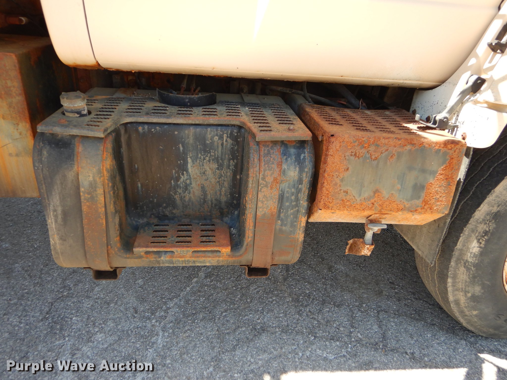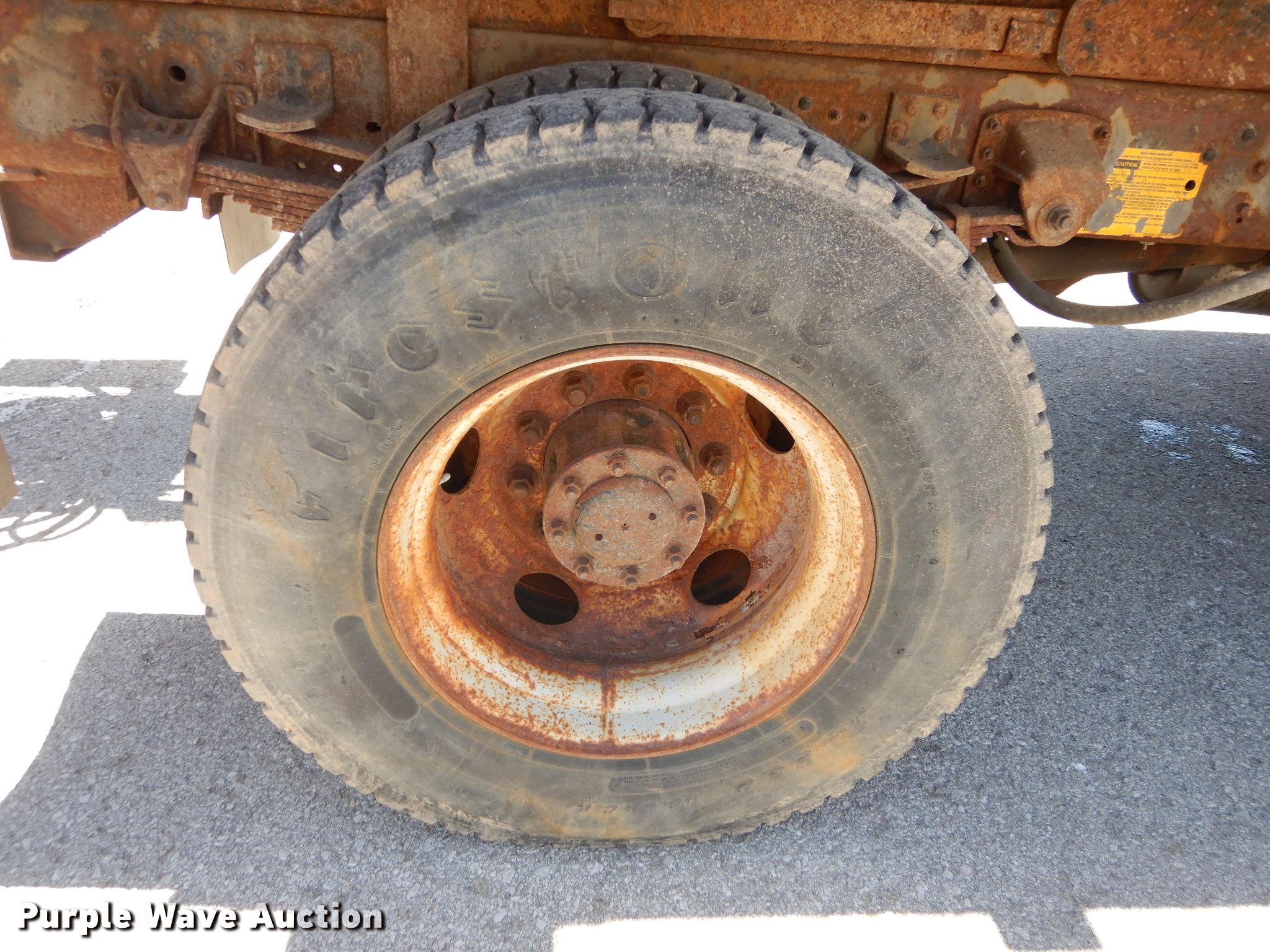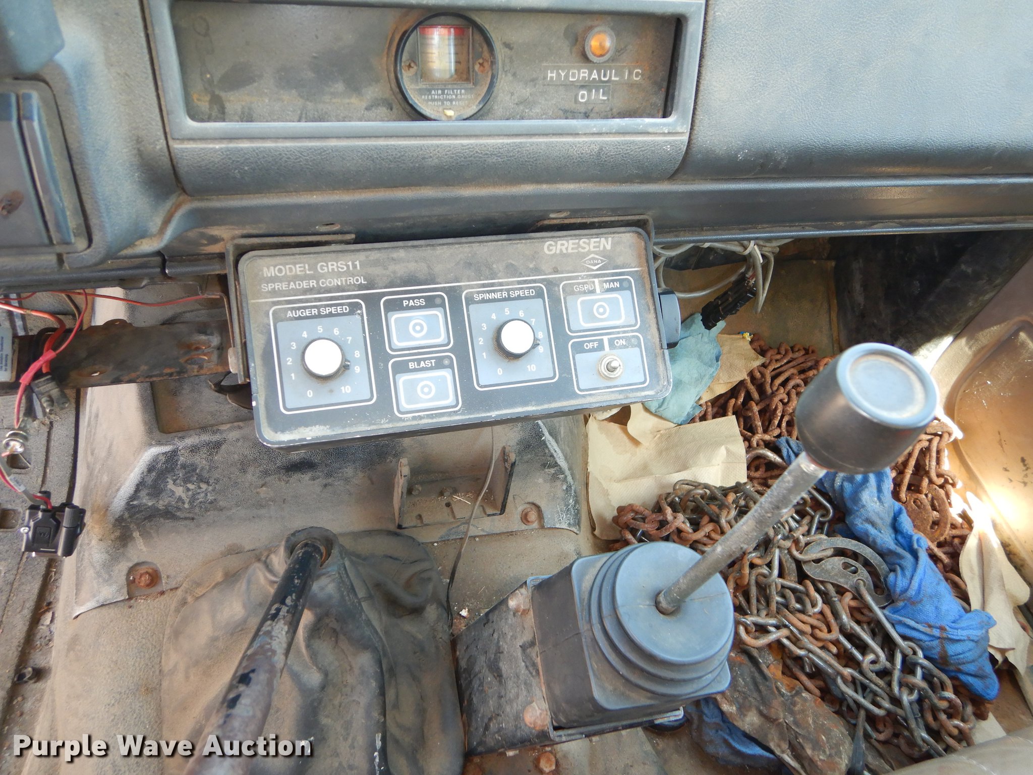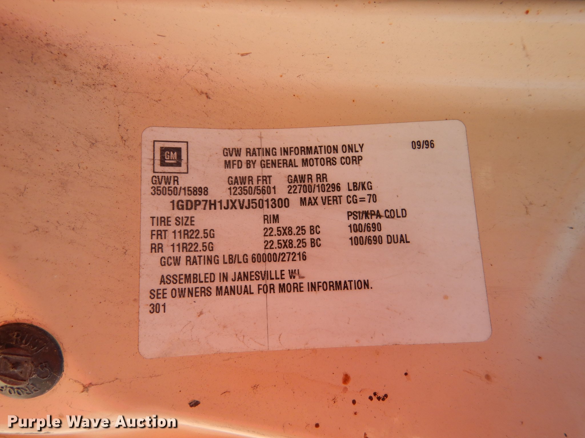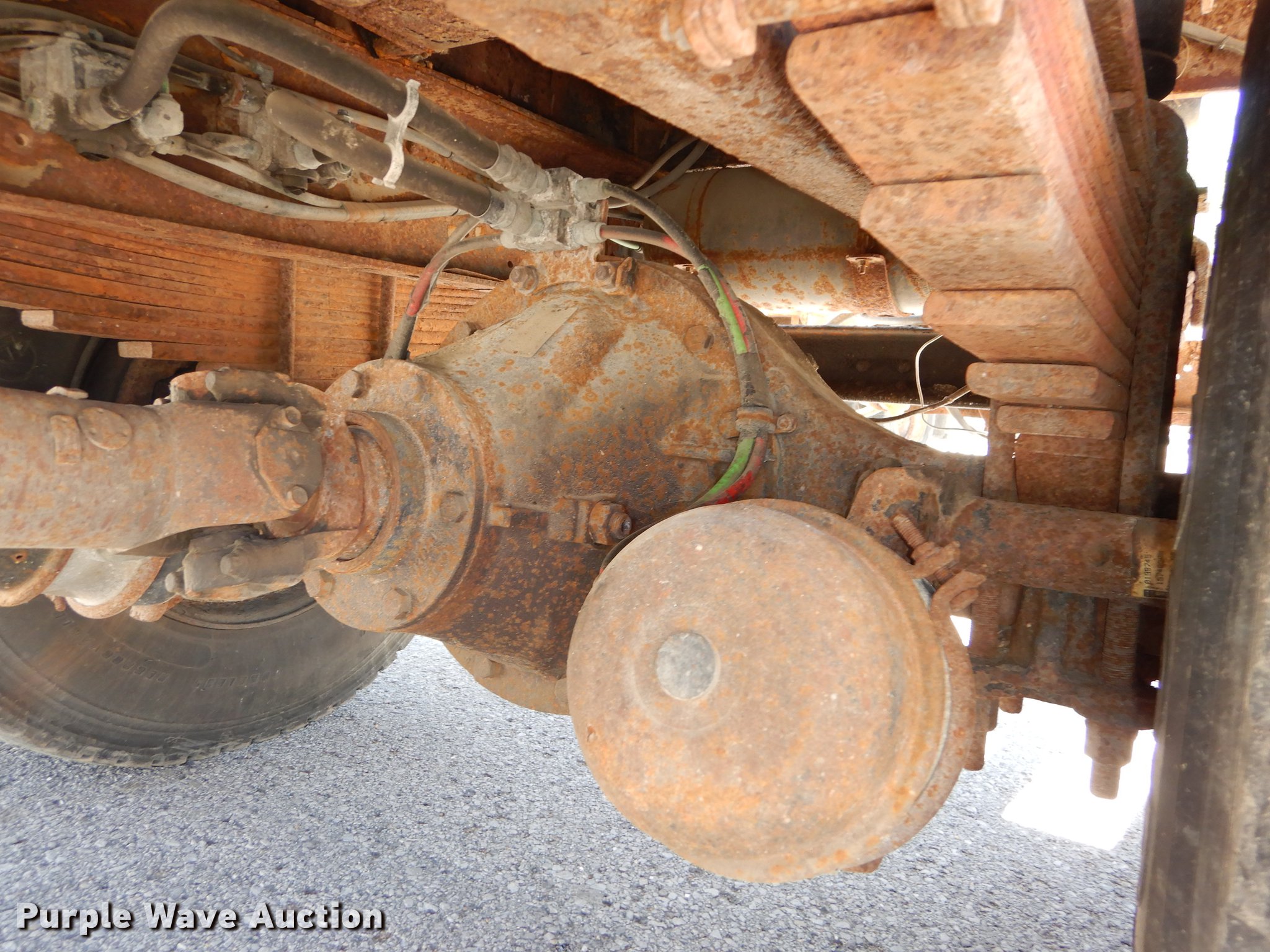 Purple Wave is selling a used Construction Dump Truck in Kansas. This item is a 1997 GMC C8500 dump truck with the following: 84,468 miles on odometer, Caterpillar 3116 6.6L L6 turbo diesel engine, 230 HP, Six speed manual transmission, Single axle, Heat, Front mounted PTO, Knapheide steel dump bed, 10'L x 95"W, 25" side height, Single ram hoist, Manual operated end gate, Snow plow mount, Swenson 10' spreader, Single fuel tank, Pintle hitch, Spring suspension, Air brakes, 11R22.5 tires, GVWR 35,050 lbs, FAWR 12,350 lbs, RAWR 22,700 lbs