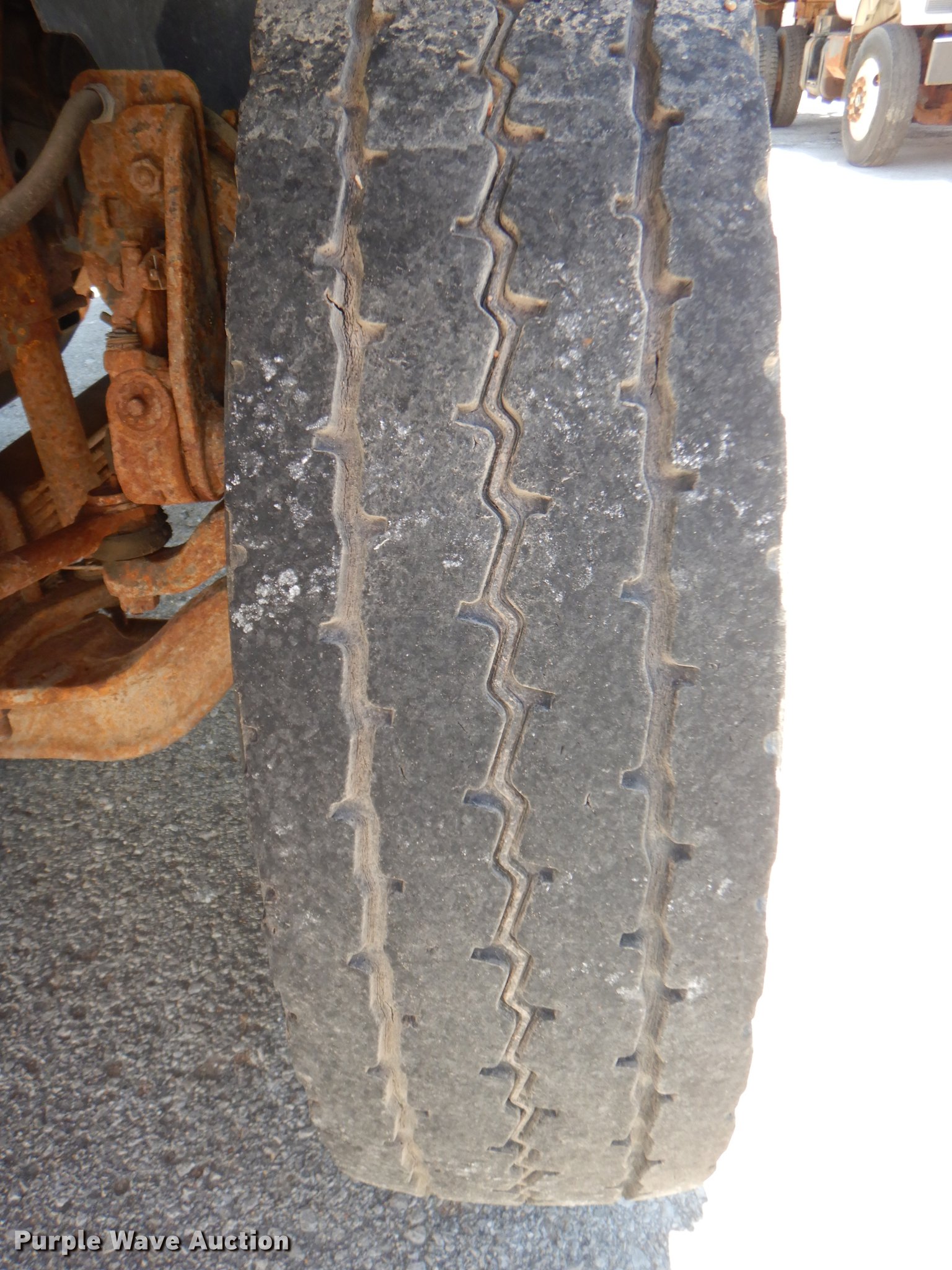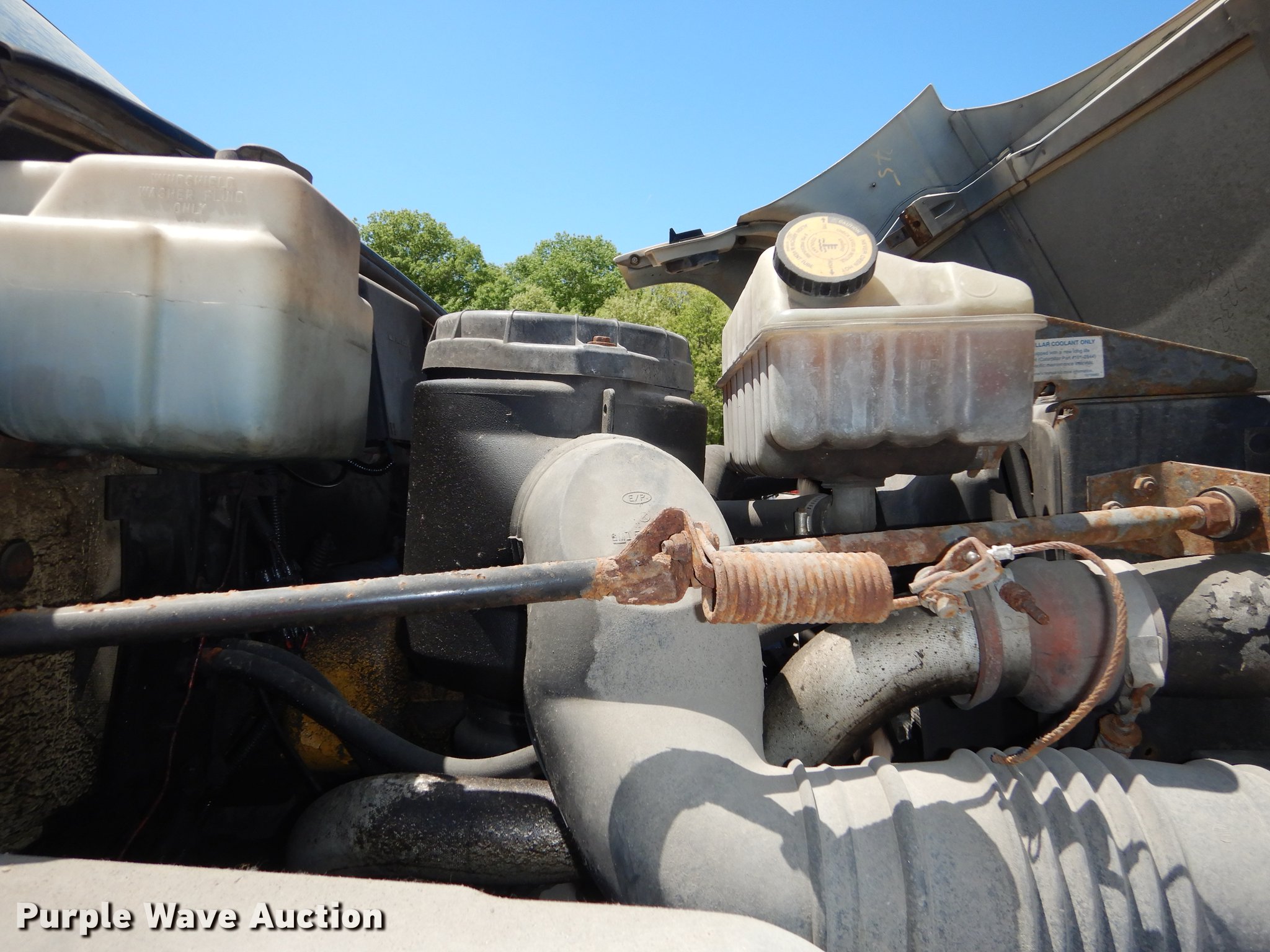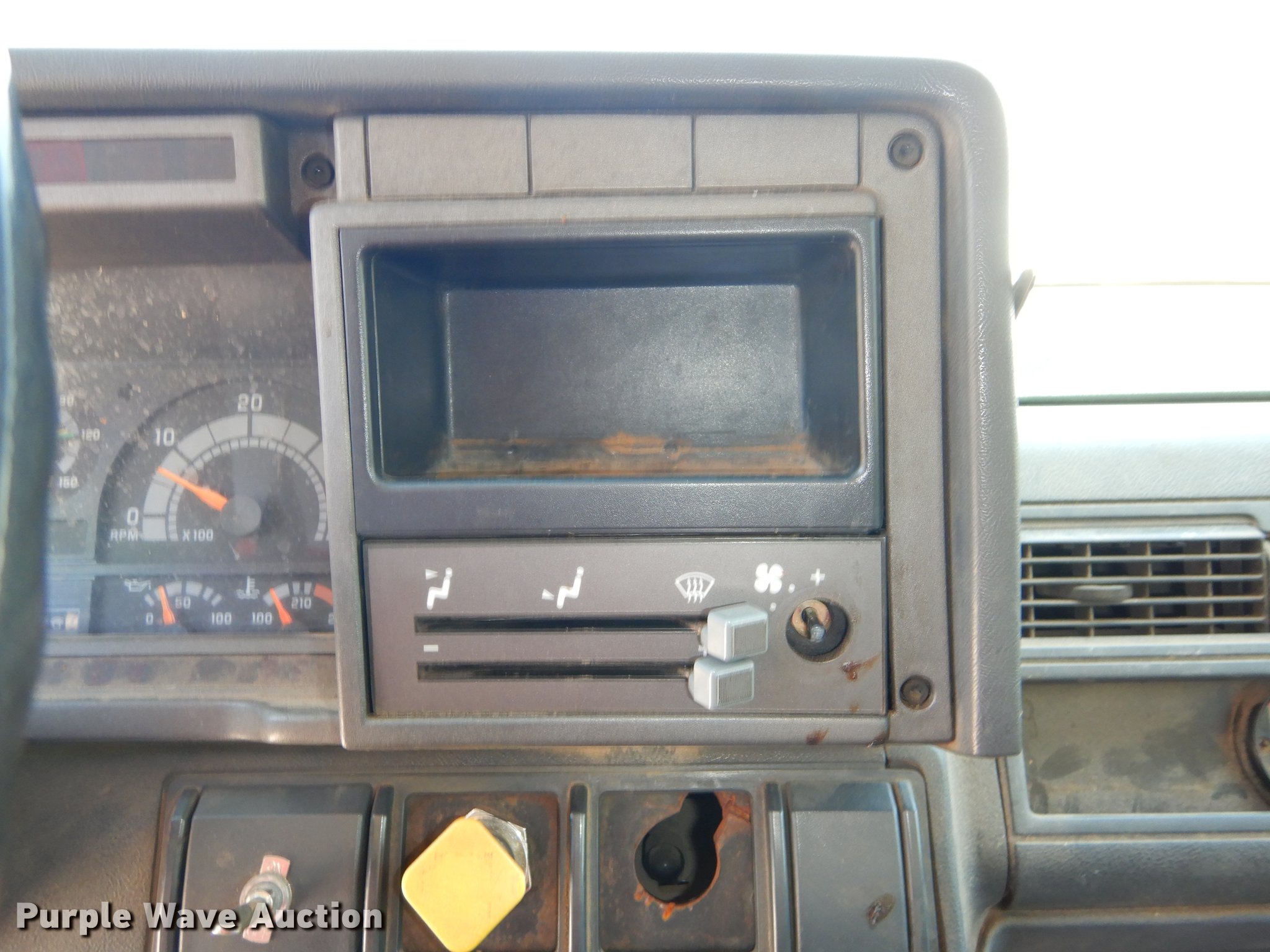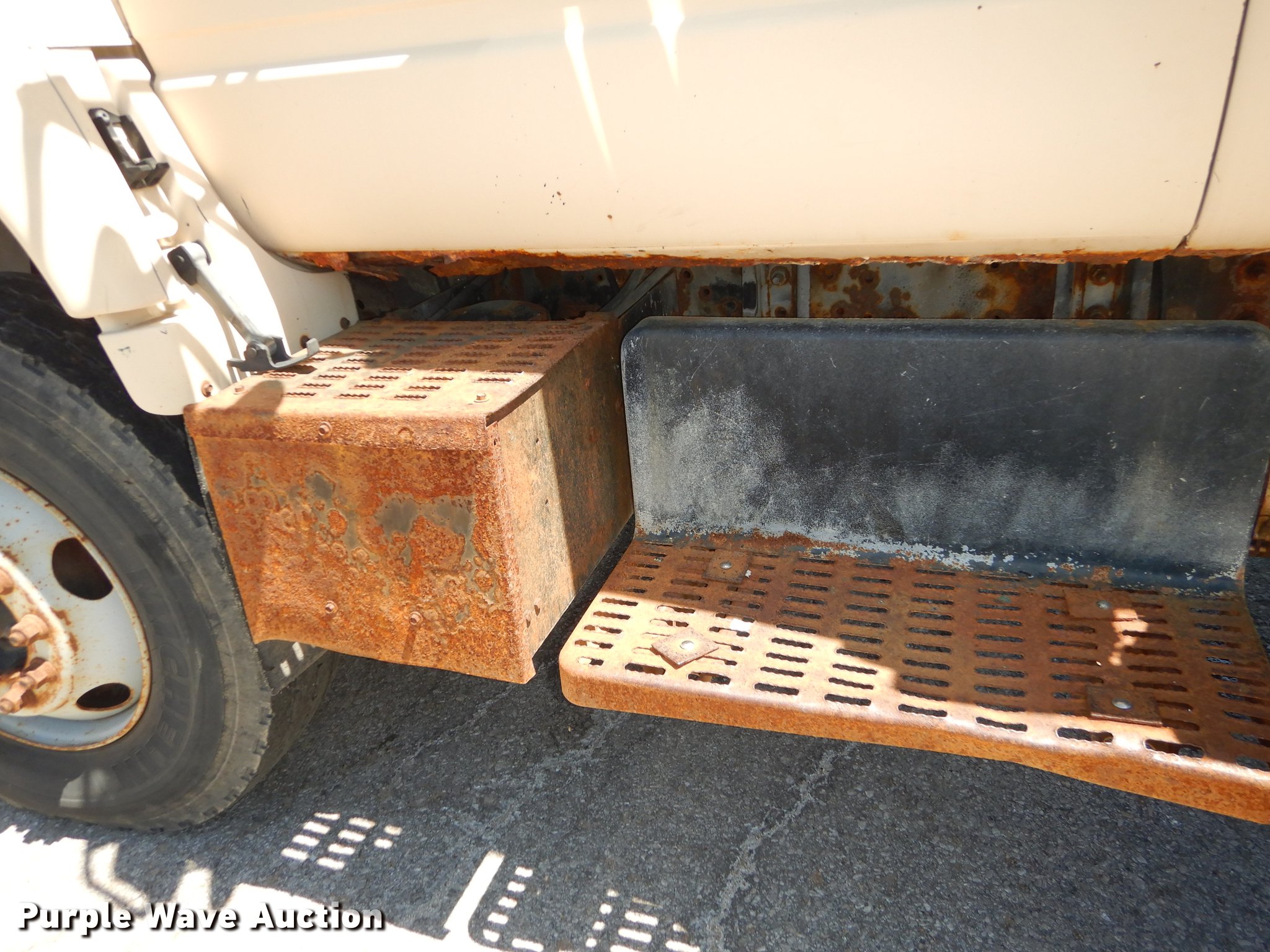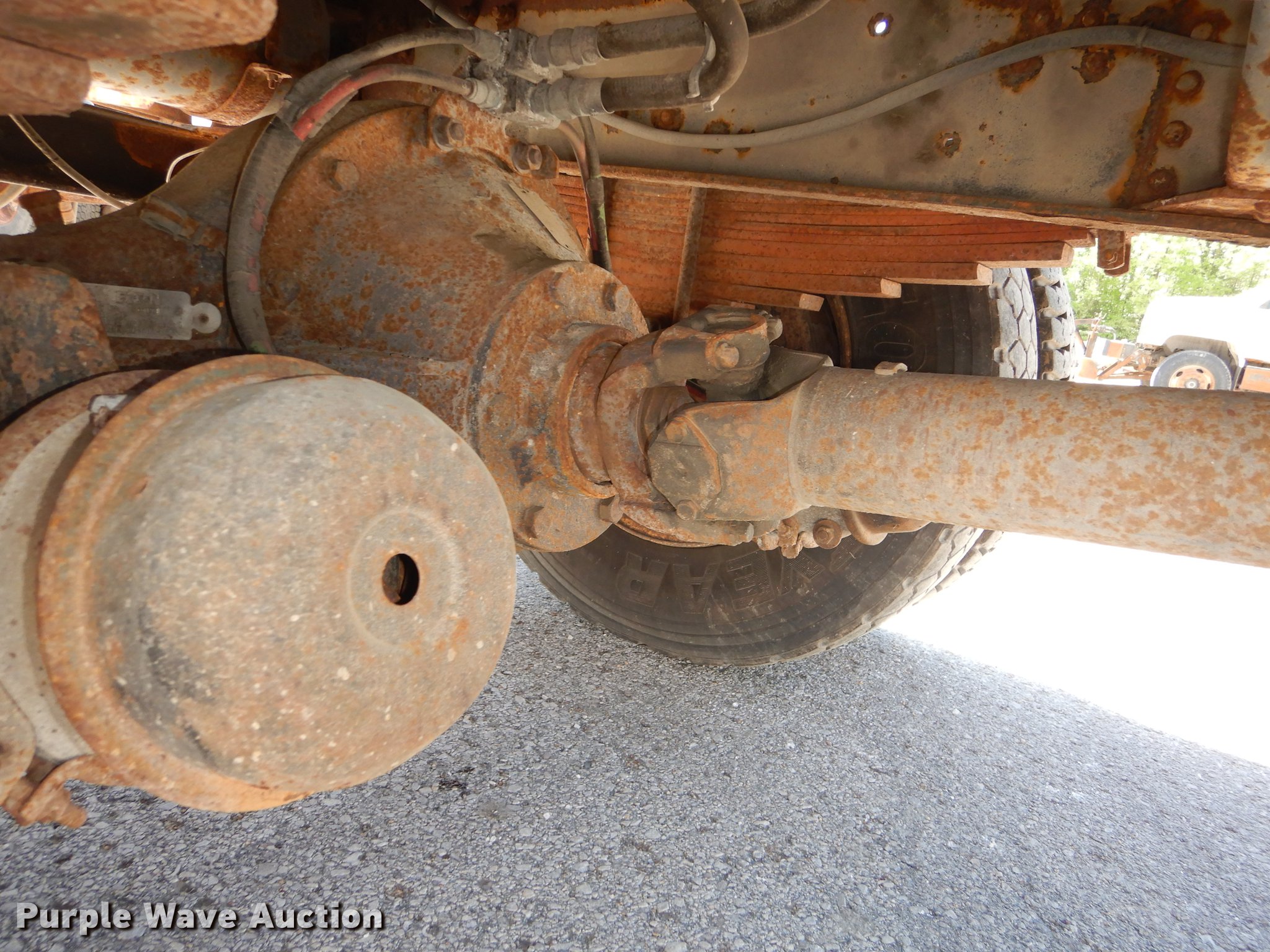 Purple Wave is selling a used Construction Dump Truck in Kansas. This item is a 1997 GMC C8500 dump truck with the following: 84,468 miles on odometer, Caterpillar 3116 6.6L L6 turbo diesel engine, 230 HP, Six speed manual transmission, Single axle, Heat, Front mounted PTO, Knapheide steel dump bed, 10'L x 95"W, 25" side height, Single ram hoist, Manual operated end gate, Snow plow mount, Swenson 10' spreader, Single fuel tank, Pintle hitch, Spring suspension, Air brakes, 11R22.5 tires, GVWR 35,050 lbs, FAWR 12,350 lbs, RAWR 22,700 lbs