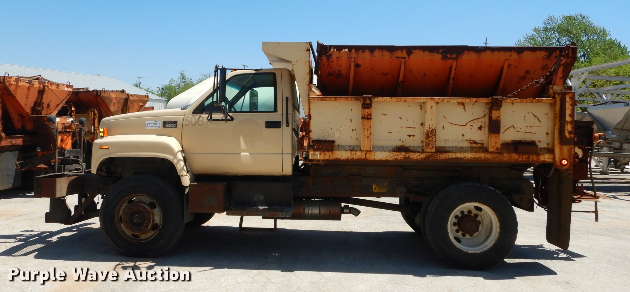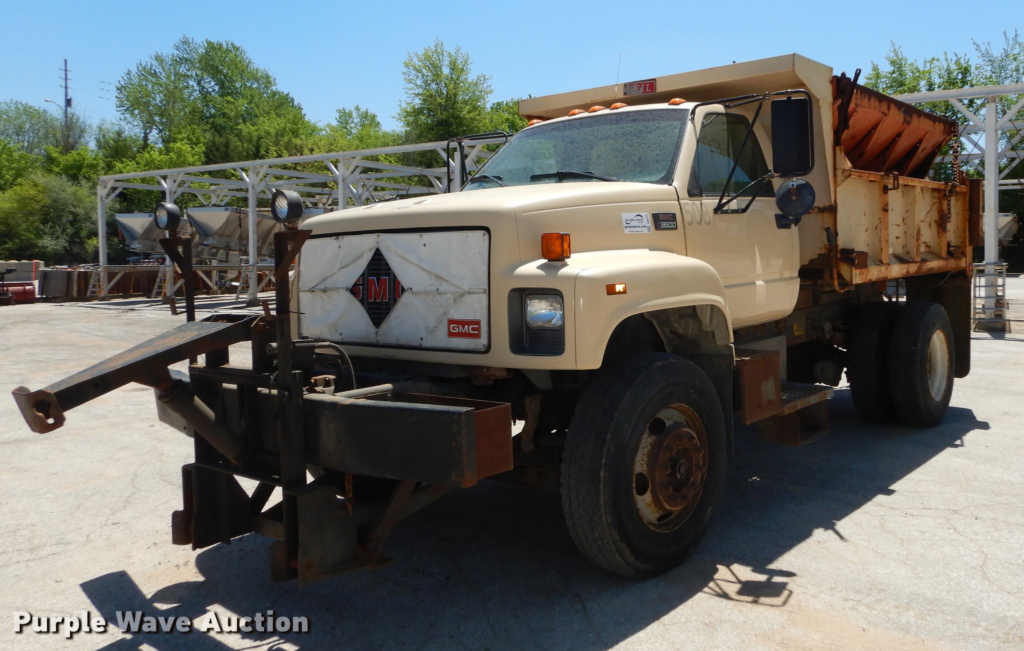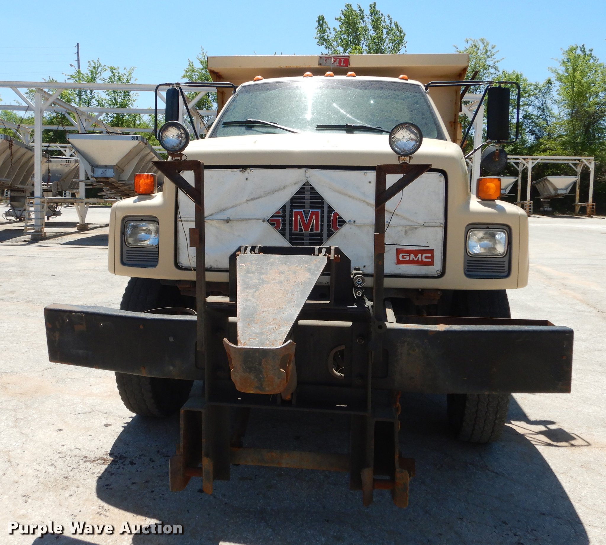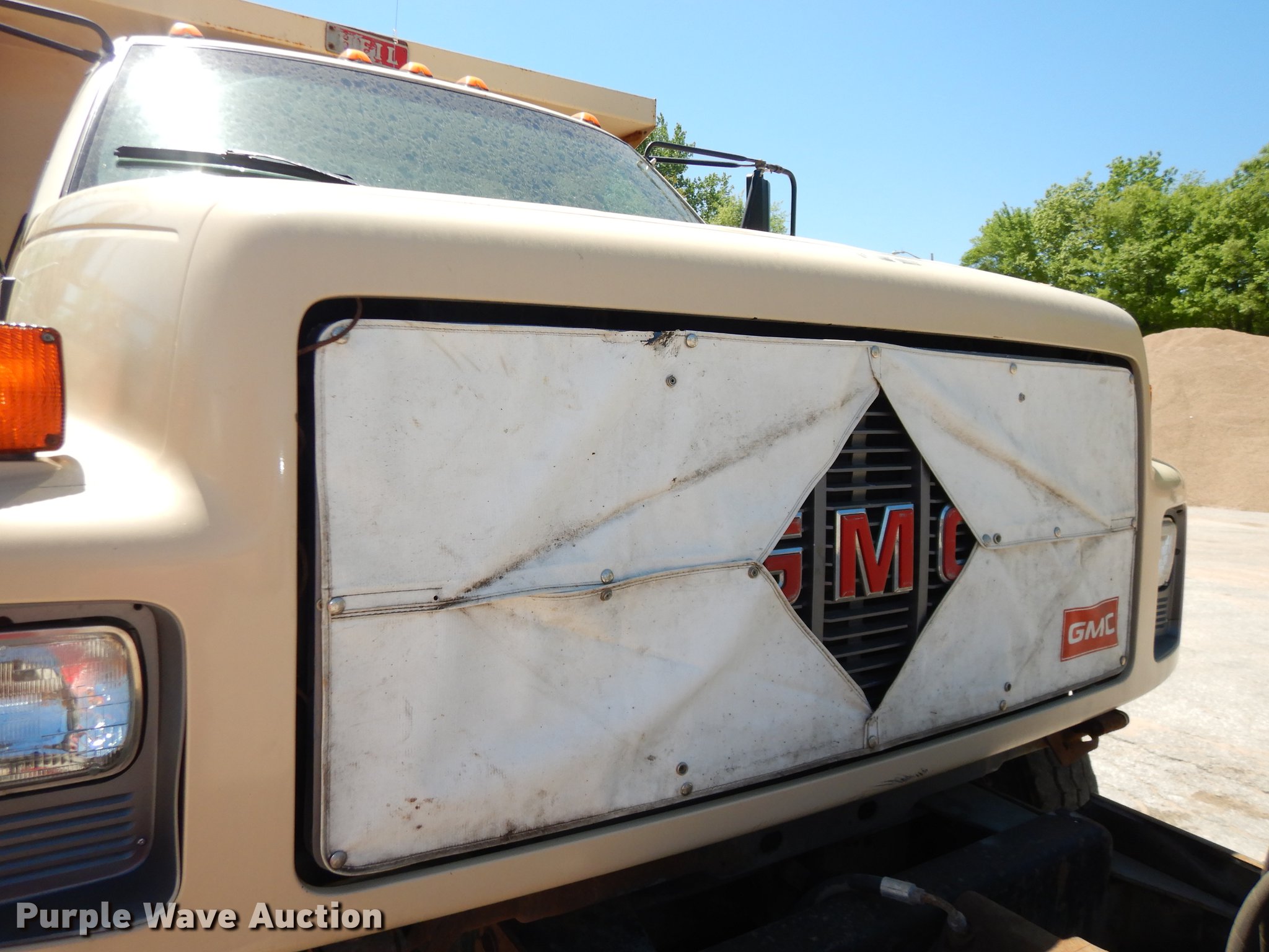 Purple Wave is selling a used Construction Dump Truck in Kansas. This item is a 1997 GMC C8500 dump truck with the following: 75,750 miles on odometer, Caterpillar 3116 6.6L L6 turbo diesel engine, 230 HP, Six speed manual transmission, Single axle, Heat, Front mounted PTO, Knapheide steel dump bed, 10'L x 95"W, 25" side height, Single ram hoist, Manual end gate, Snow plow mount, Swenson 10' spreader, Single fuel tank, Pintle hitch, Spring suspension, Air brakes, 11R22.5 tires, GVWR 35,050 lbs, FAWR 12,350 lbs, RAWR 22,700 lbs, Unit# 508
