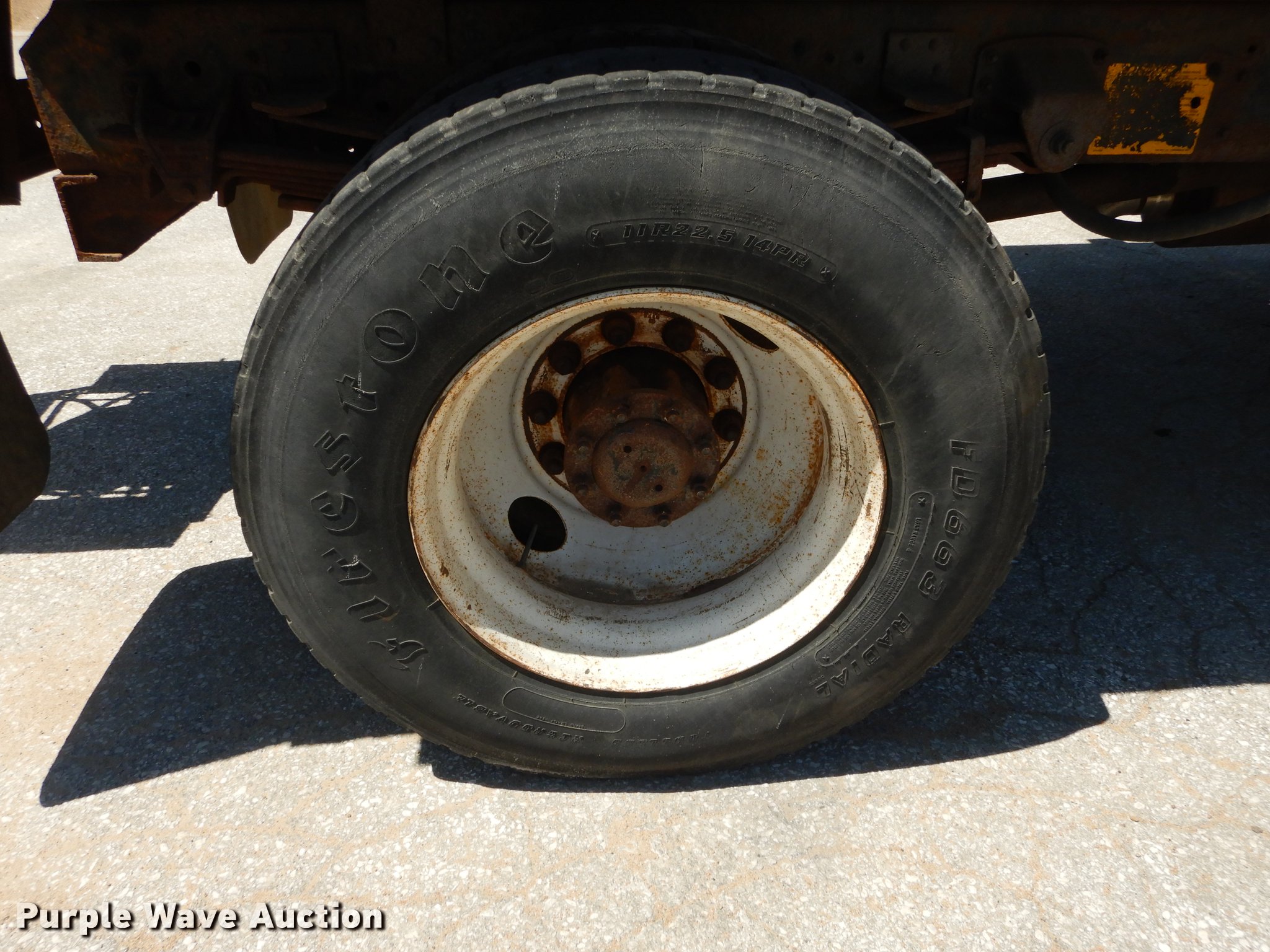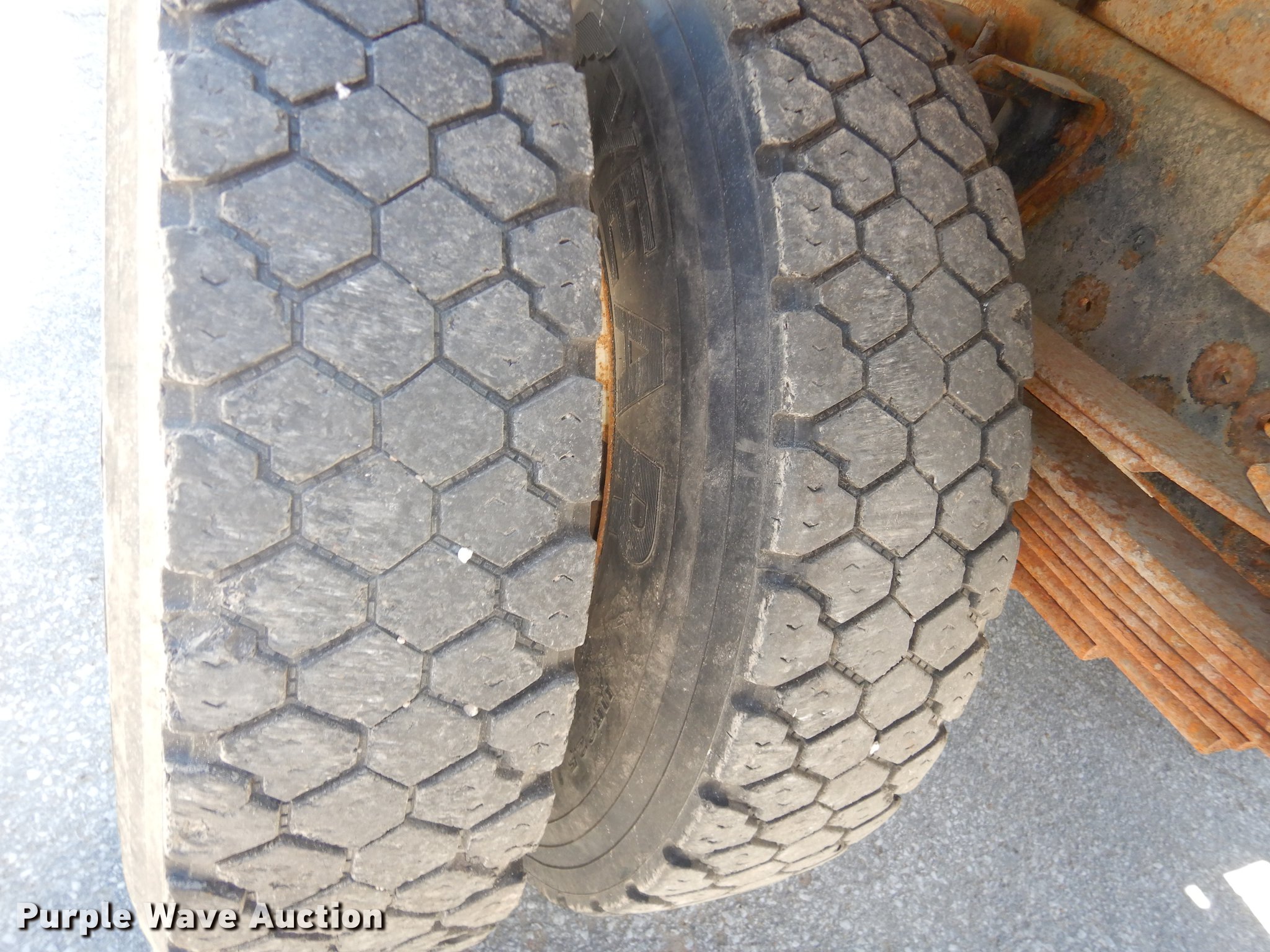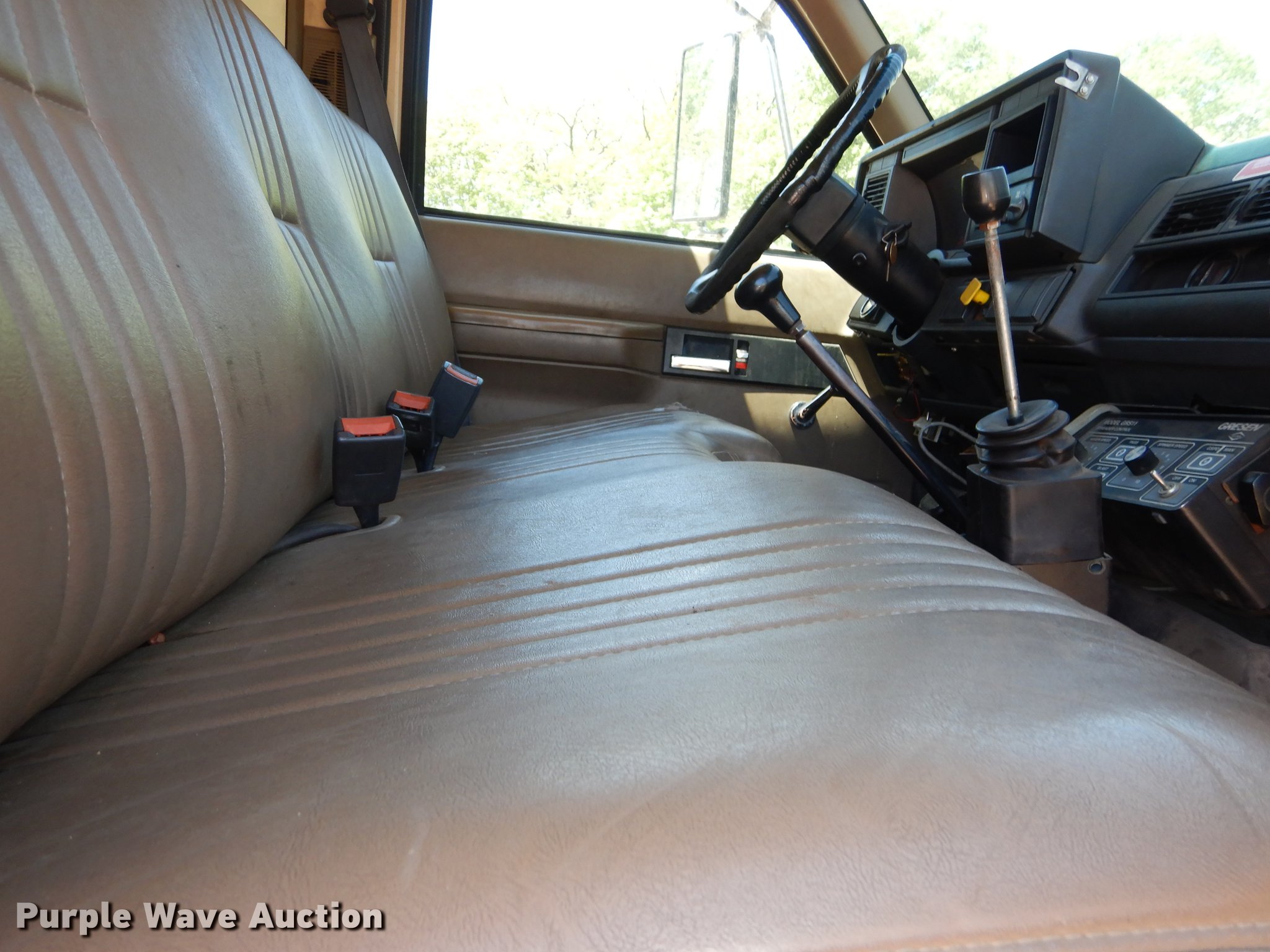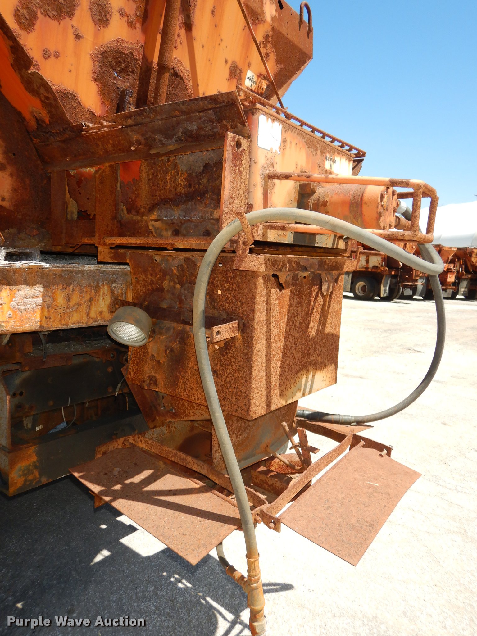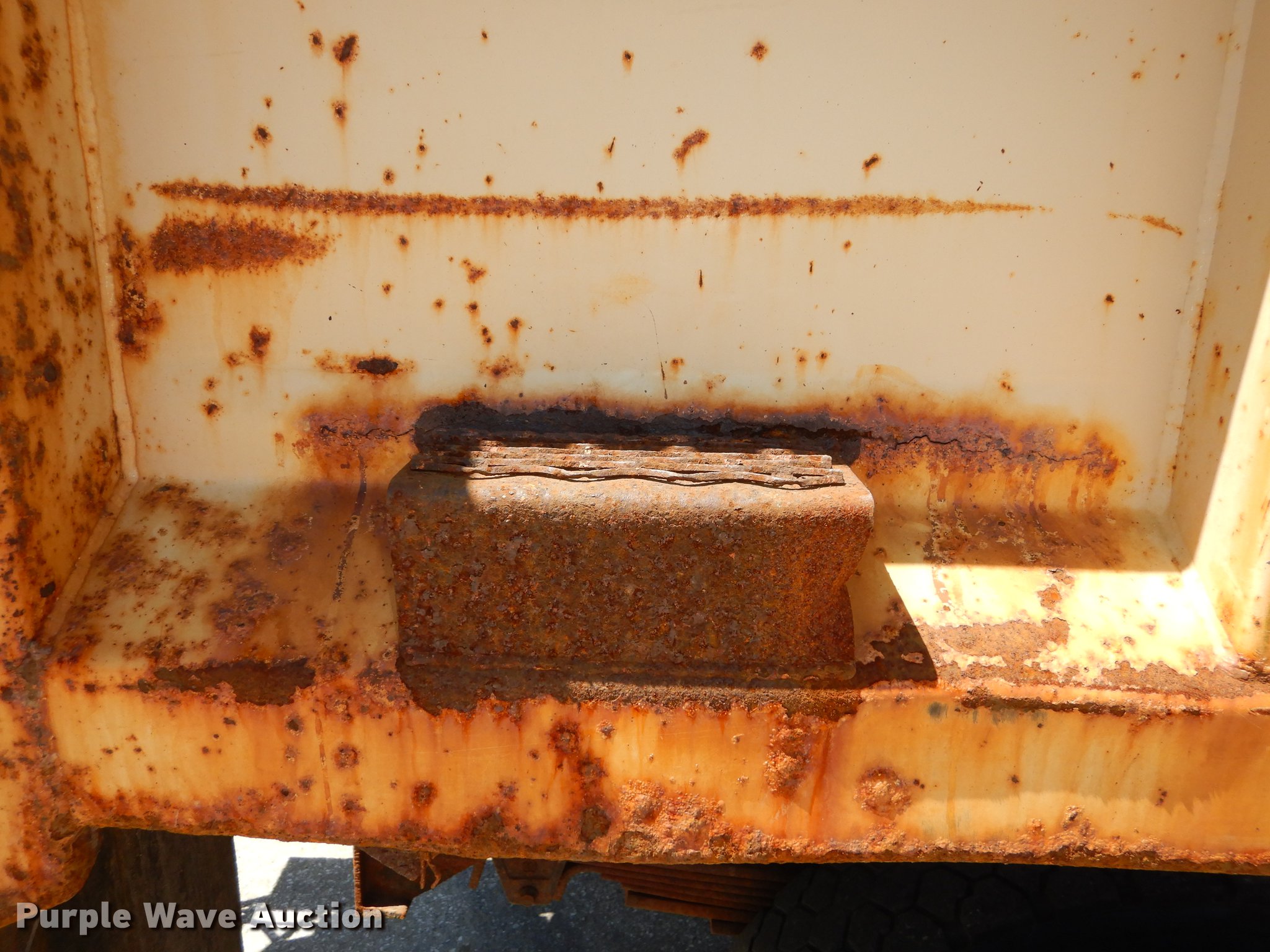 Purple Wave is selling a used Construction Dump Truck in Kansas. This item is a 1997 GMC C8500 dump truck with the following: 75,750 miles on odometer, Caterpillar 3116 6.6L L6 turbo diesel engine, 230 HP, Six speed manual transmission, Single axle, Heat, Front mounted PTO, Knapheide steel dump bed, 10'L x 95"W, 25" side height, Single ram hoist, Manual end gate, Snow plow mount, Swenson 10' spreader, Single fuel tank, Pintle hitch, Spring suspension, Air brakes, 11R22.5 tires, GVWR 35,050 lbs, FAWR 12,350 lbs, RAWR 22,700 lbs, Unit# 508