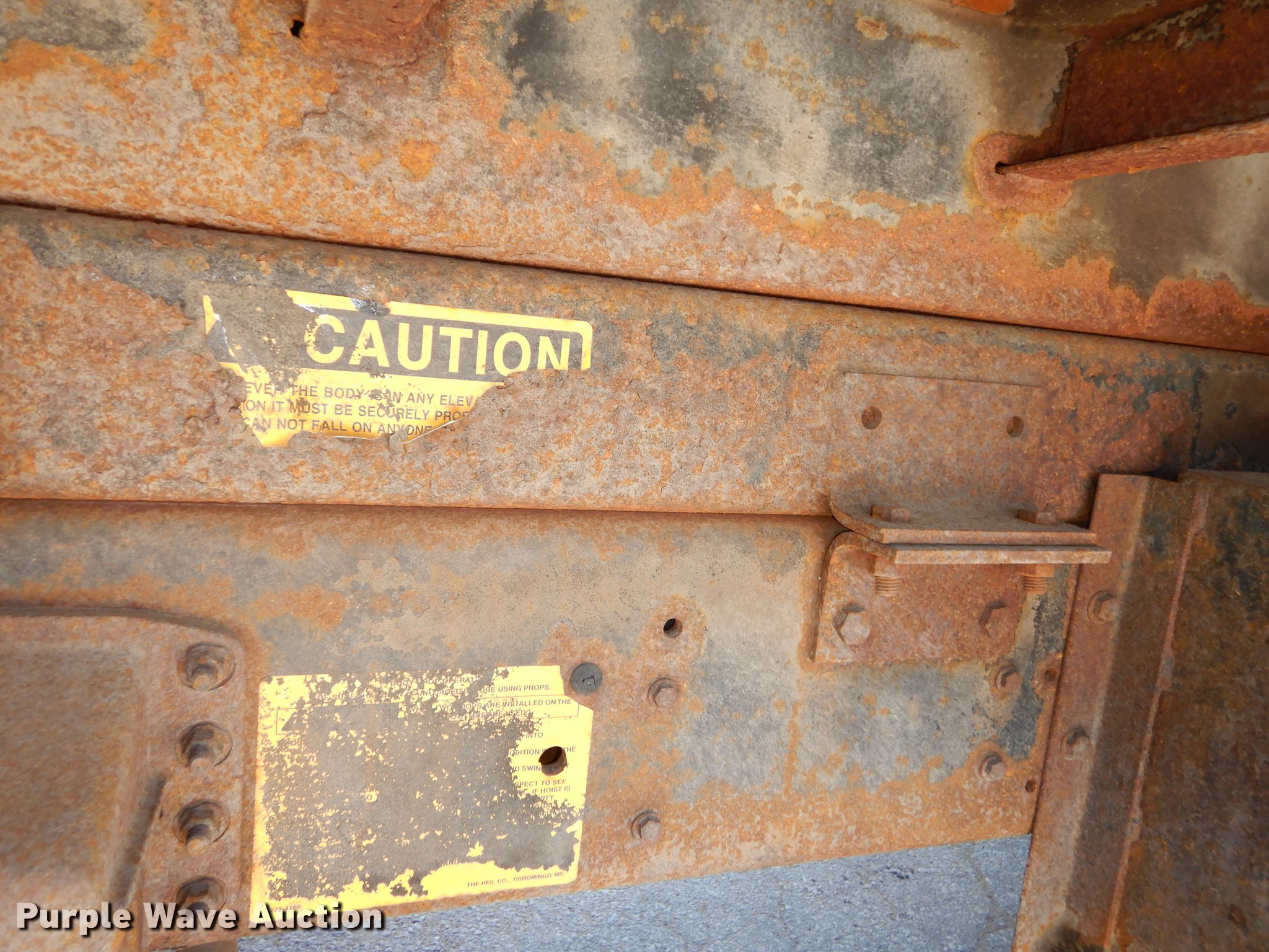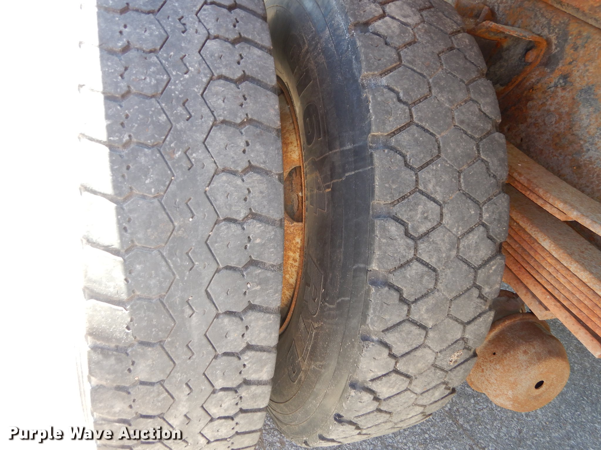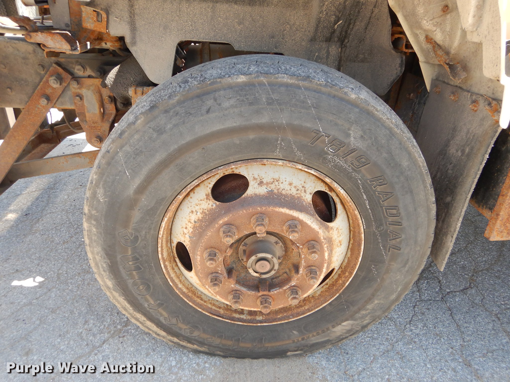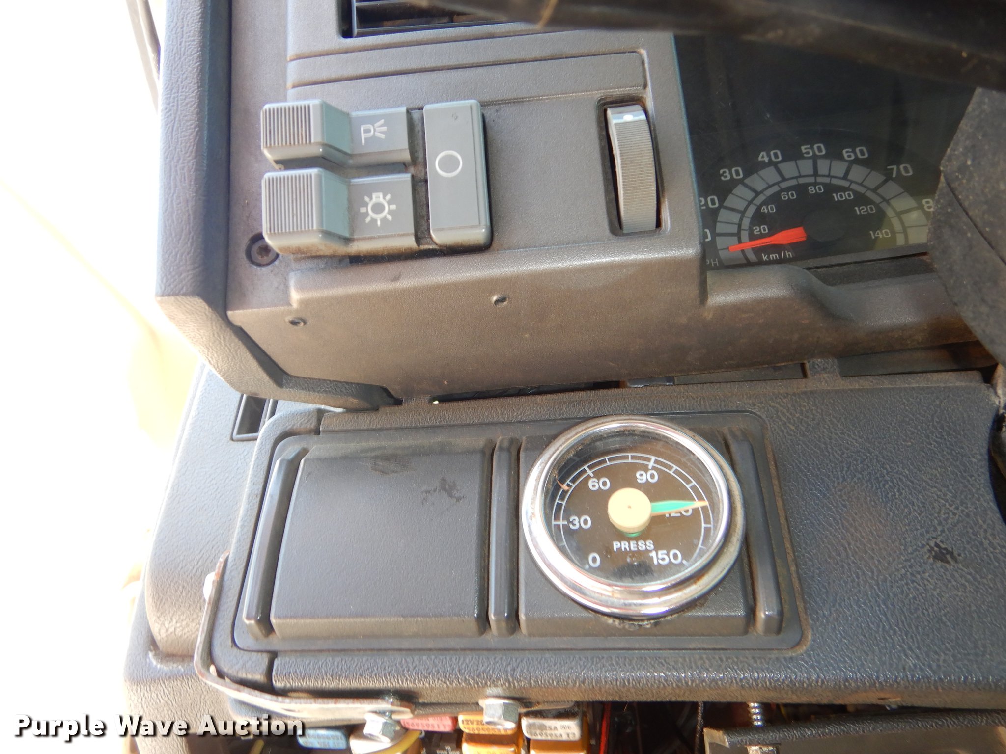 Purple Wave is selling a used Construction Dump Truck in Kansas. This item is a 1997 GMC C8500 dump truck with the following: 75,750 miles on odometer, Caterpillar 3116 6.6L L6 turbo diesel engine, 230 HP, Six speed manual transmission, Single axle, Heat, Front mounted PTO, Knapheide steel dump bed, 10'L x 95"W, 25" side height, Single ram hoist, Manual end gate, Snow plow mount, Swenson 10' spreader, Single fuel tank, Pintle hitch, Spring suspension, Air brakes, 11R22.5 tires, GVWR 35,050 lbs, FAWR 12,350 lbs, RAWR 22,700 lbs, Unit# 508