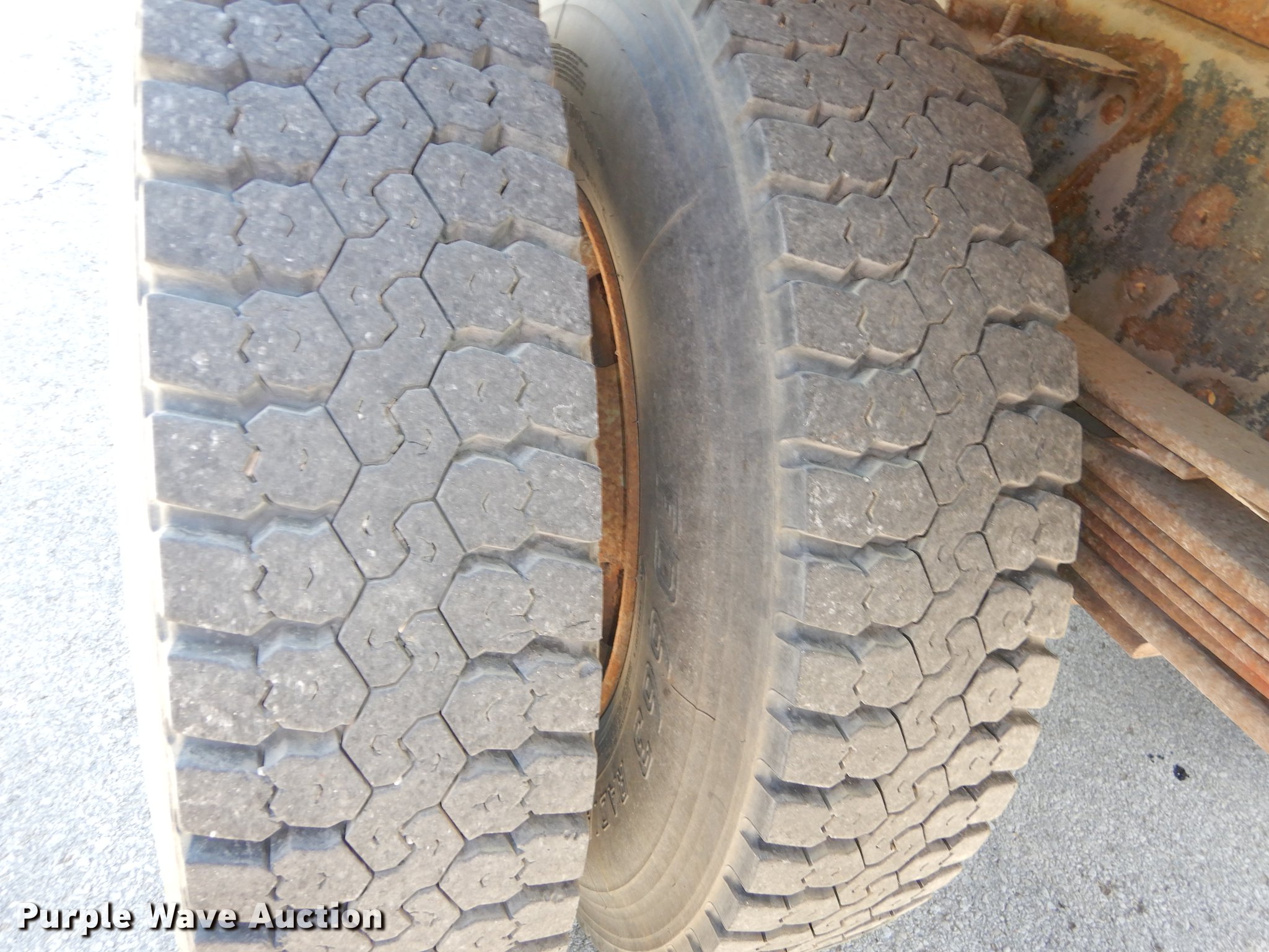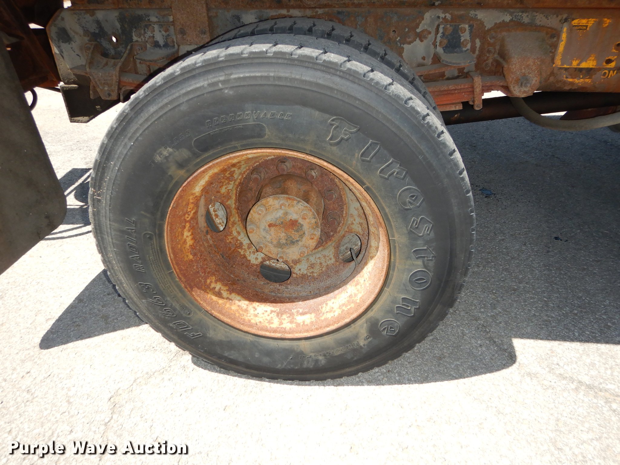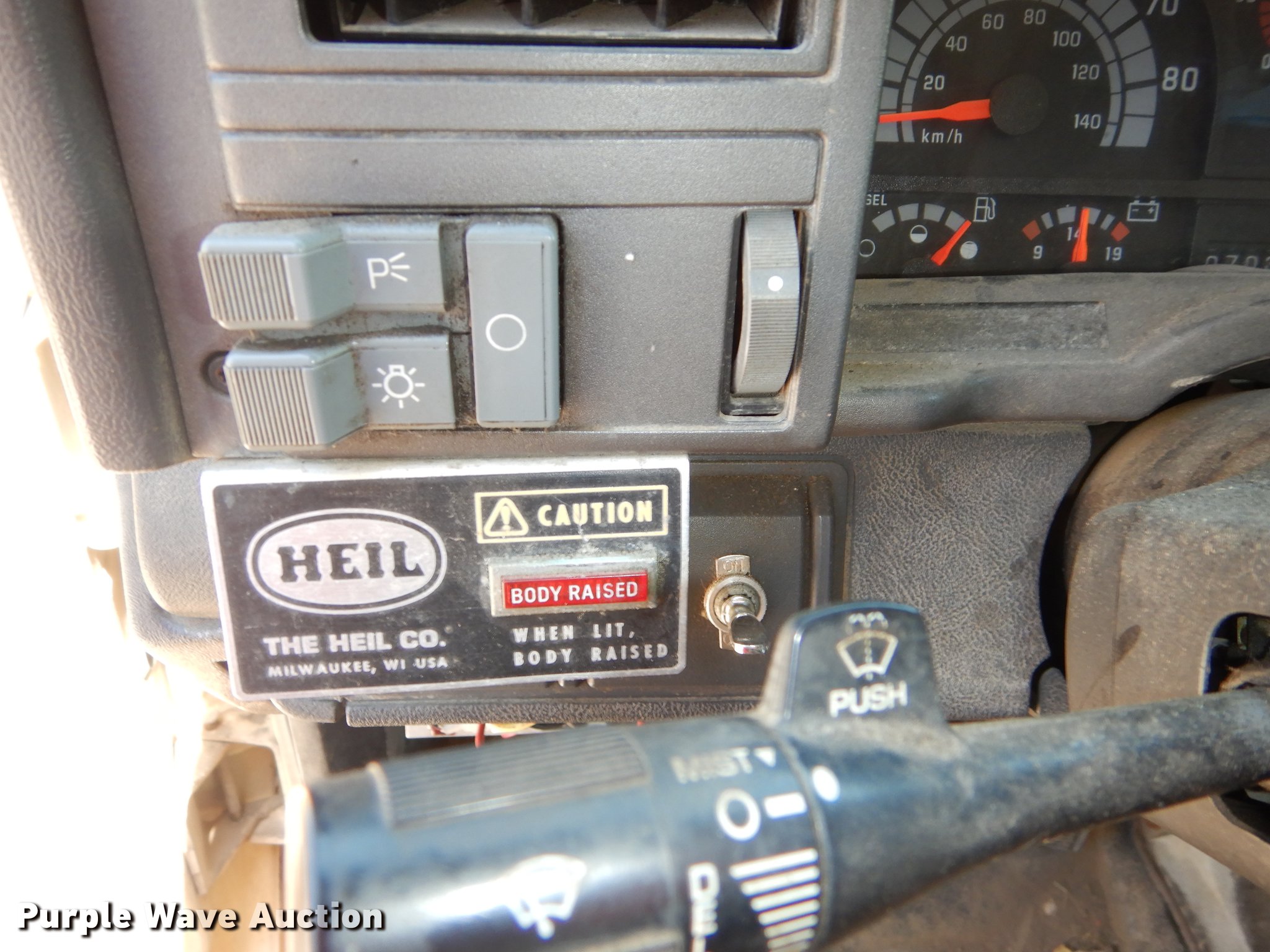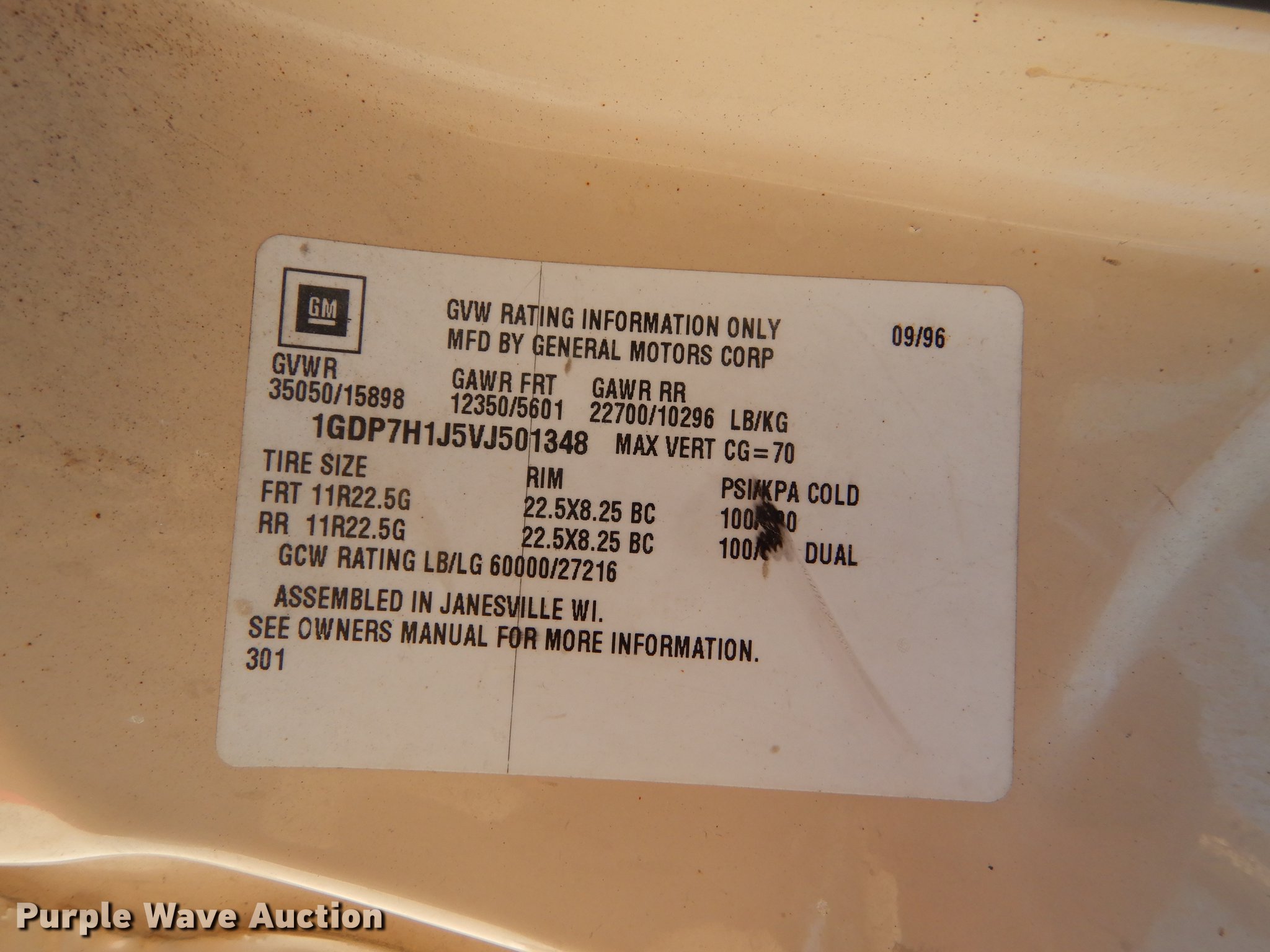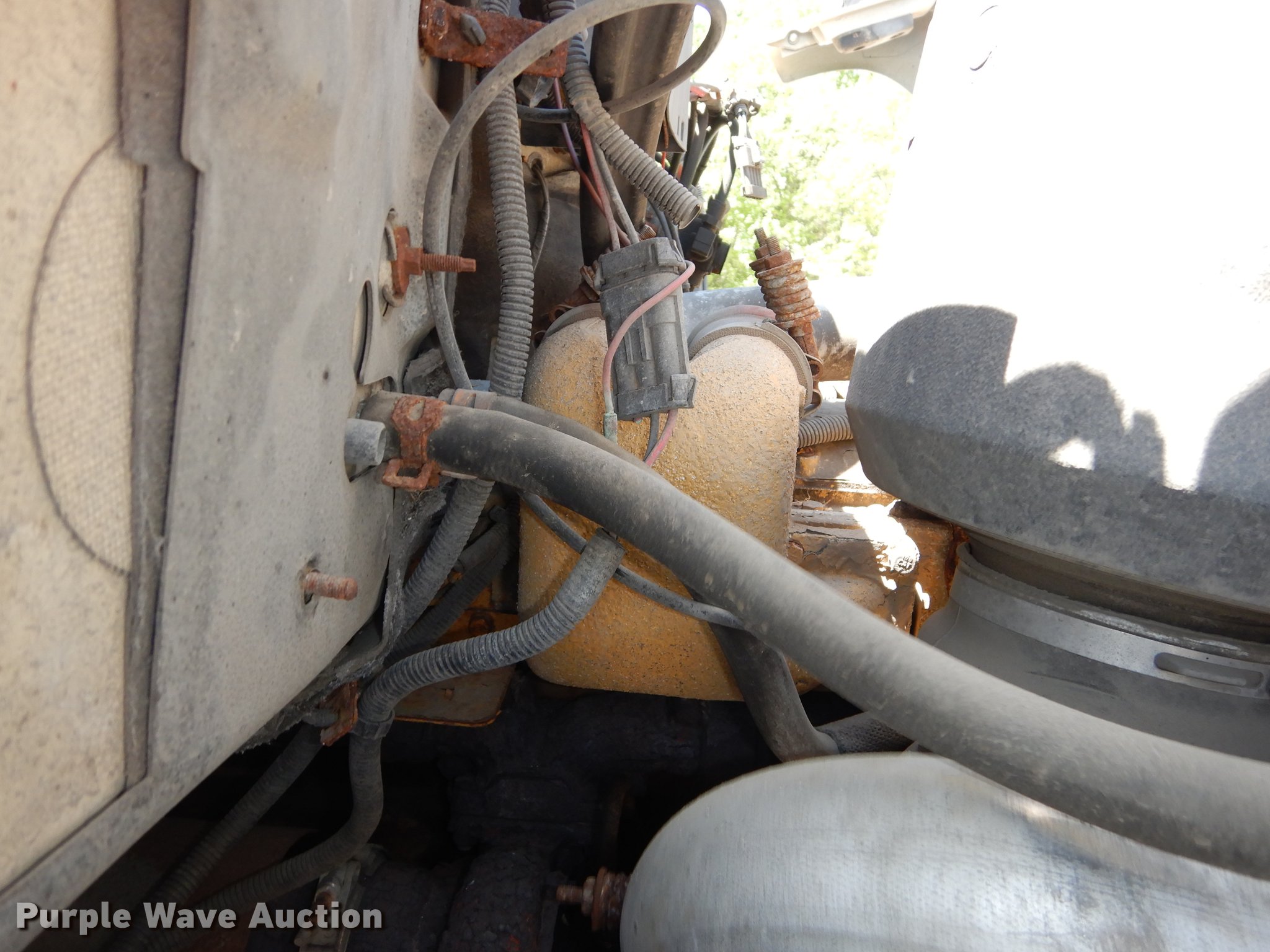 Purple Wave is selling a used Construction Dump Truck in Kansas. This item is a 1997 GMC C8500 dump truck with the following: 70,375 miles on odometer, Caterpillar 3116 6.6L L6 turbo diesel engine, 230 HP, Six speed manual transmission, Single axle, Heat, Front mounted PTO, Knapheide steel dump bed, 10'L x 95"W, 25" side height, Single ram hoist, Manual end gate, Snow plow mount, Swenson 10' spreader, Spinner is stuck, Single fuel tank, Pintle hitch, Spring suspension, Air brakes, 11R22.5 tires, GVWR 35,050 lbs, FAWR 12,350 lbs, RAWR 22,700 lbs, Engine oil leak, Unit# 801