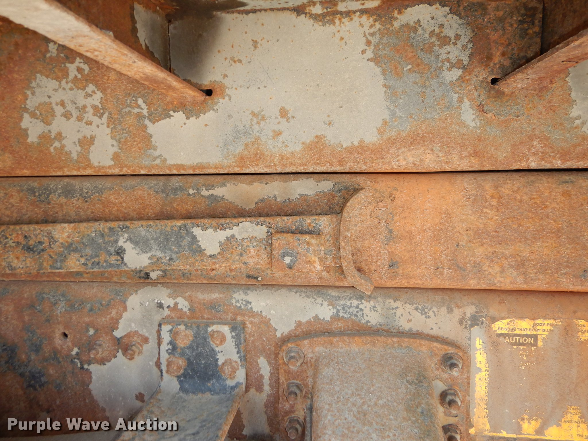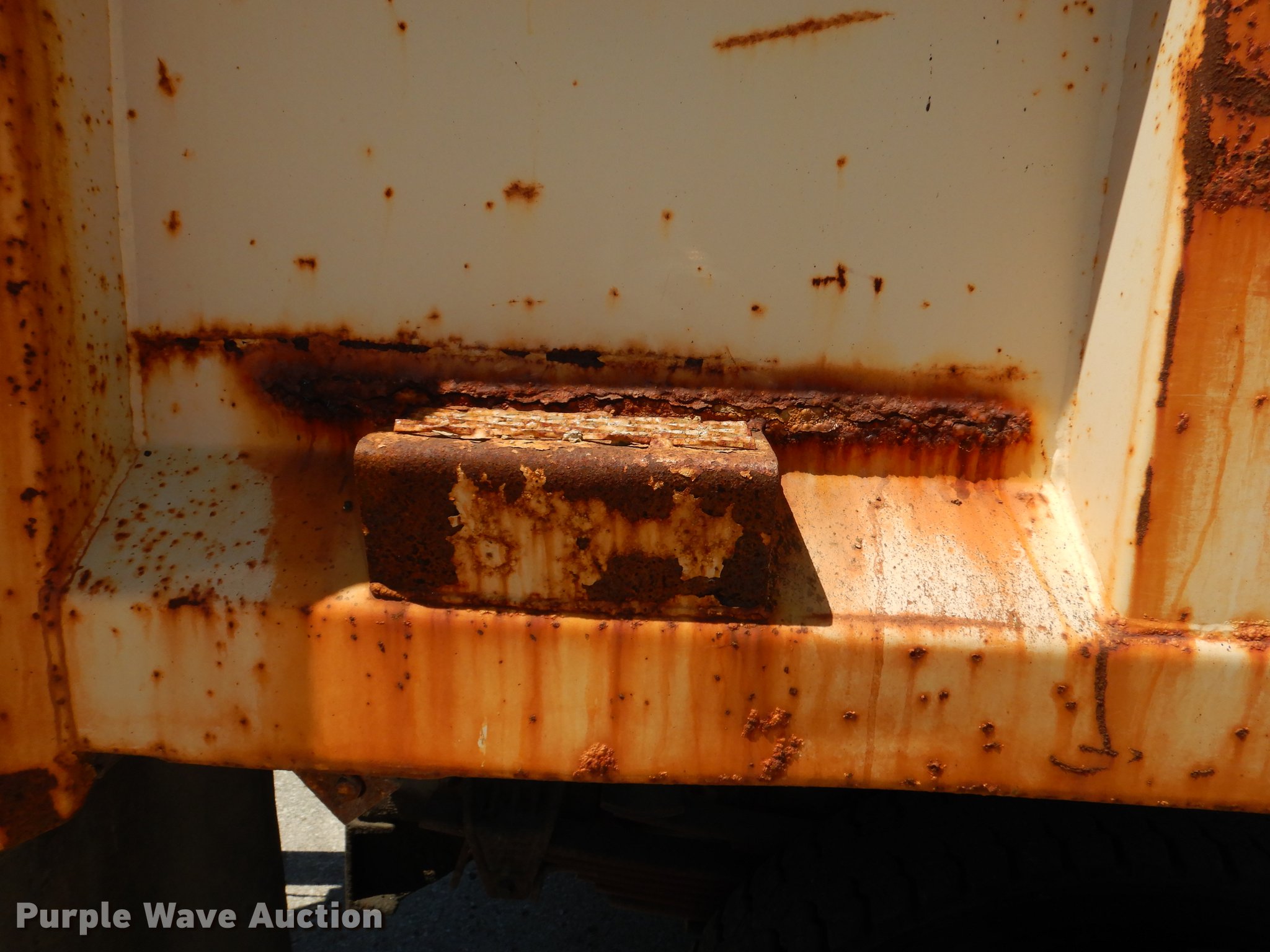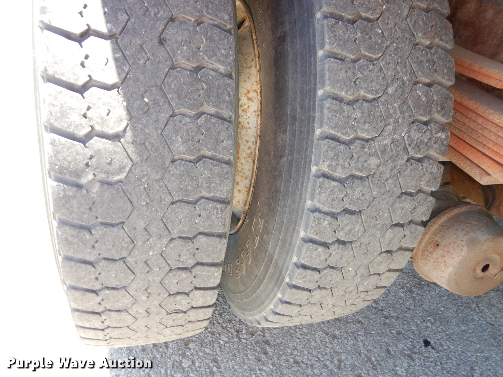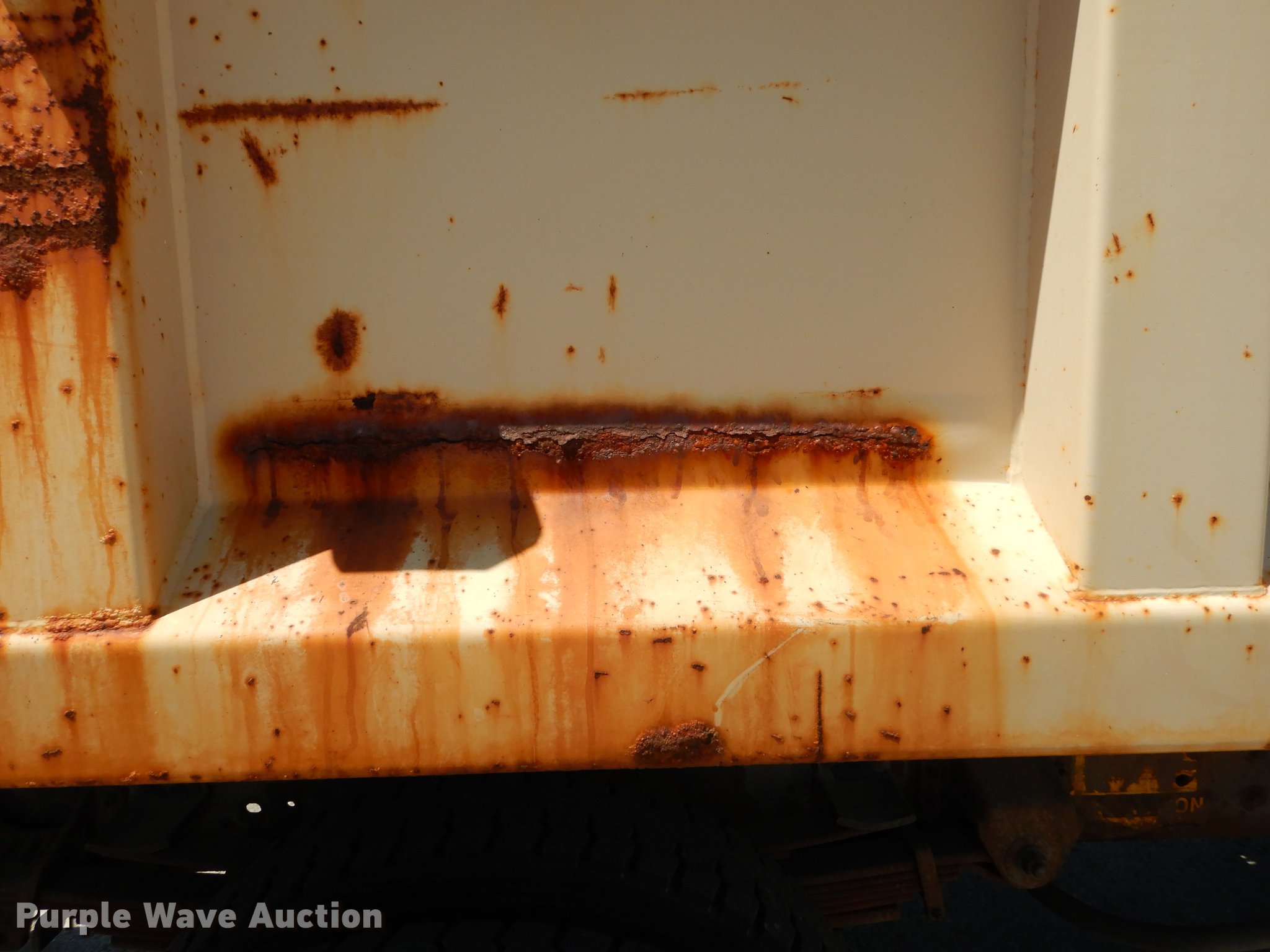 Purple Wave is selling a used Construction Dump Truck in Kansas. This item is a 1997 GMC C8500 dump truck with the following: 70,375 miles on odometer, Caterpillar 3116 6.6L L6 turbo diesel engine, 230 HP, Six speed manual transmission, Single axle, Heat, Front mounted PTO, Knapheide steel dump bed, 10'L x 95"W, 25" side height, Single ram hoist, Manual end gate, Snow plow mount, Swenson 10' spreader, Spinner is stuck, Single fuel tank, Pintle hitch, Spring suspension, Air brakes, 11R22.5 tires, GVWR 35,050 lbs, FAWR 12,350 lbs, RAWR 22,700 lbs, Engine oil leak, Unit# 801