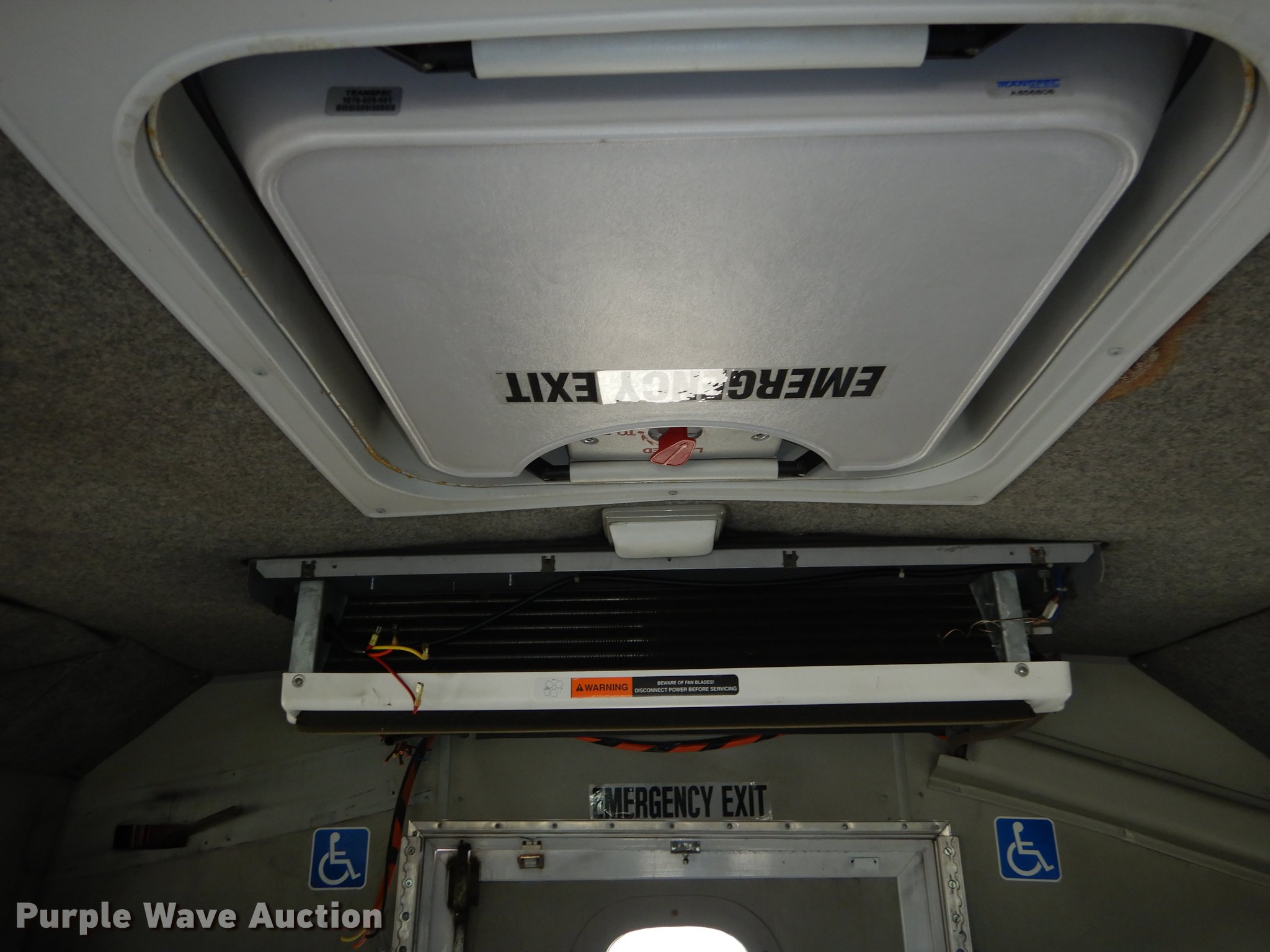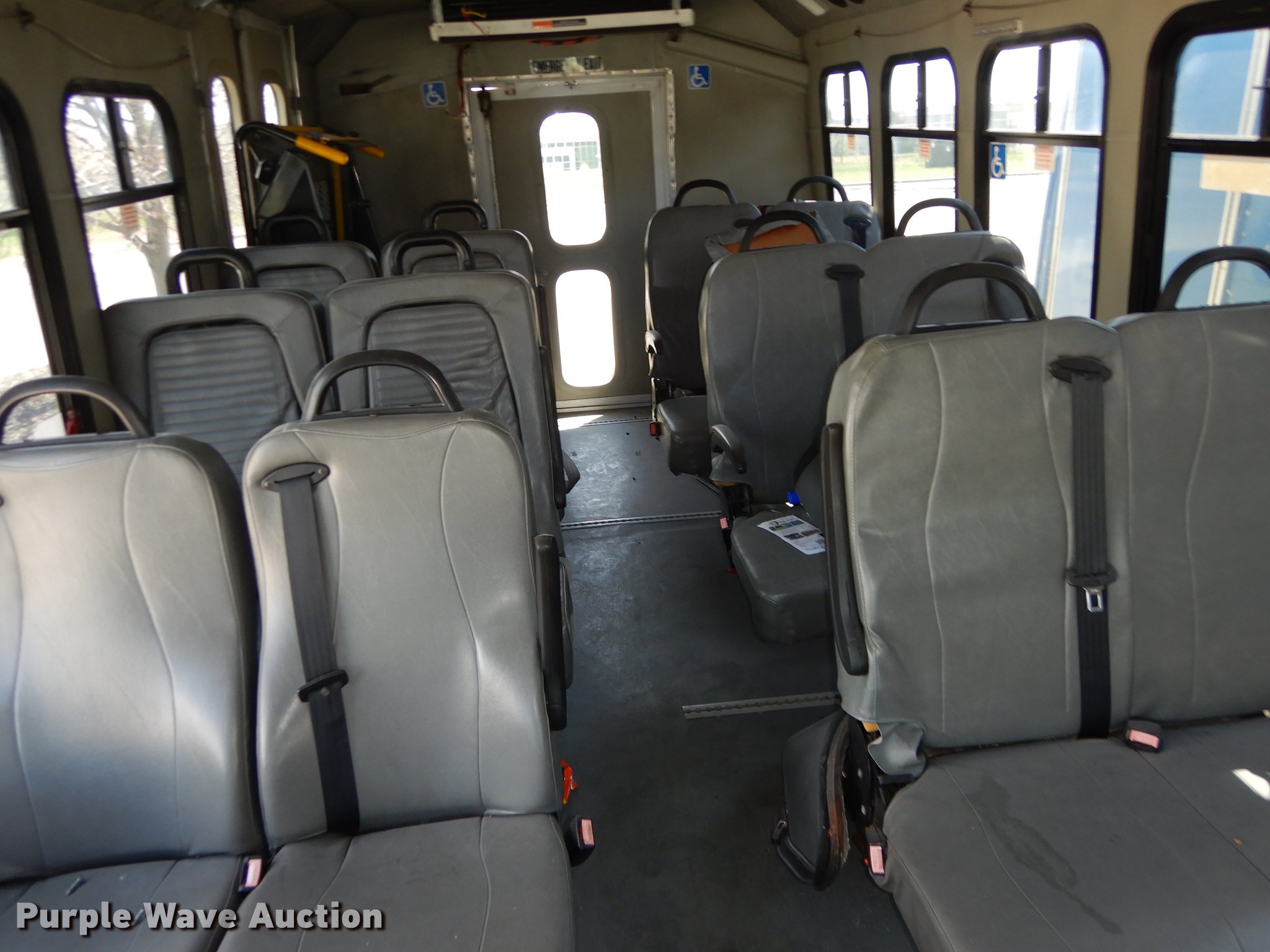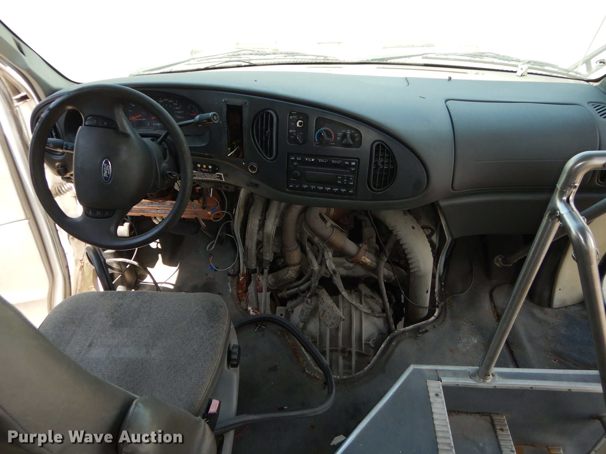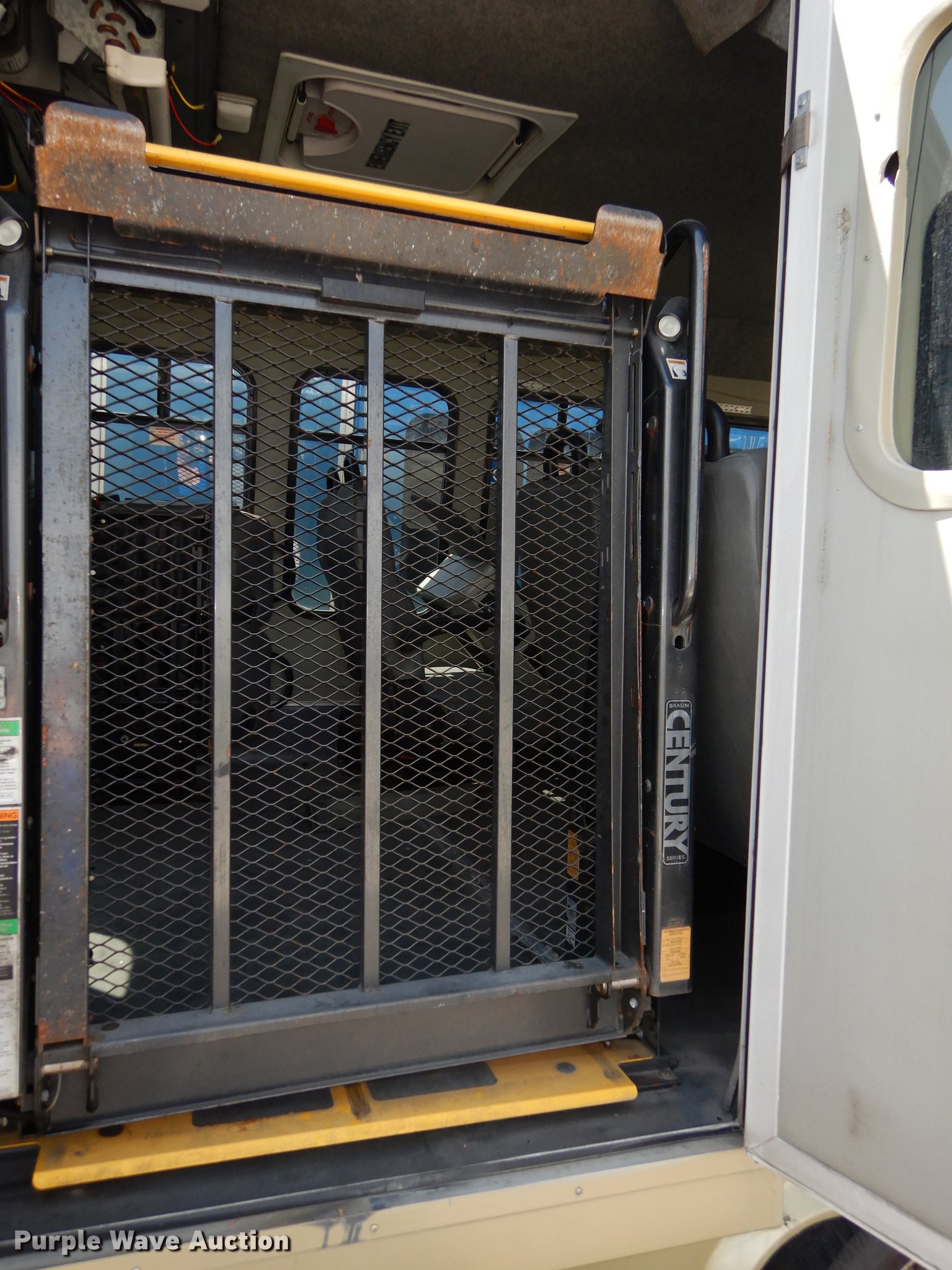 Purple Wave is selling a used Bus in Kansas. This item is a 2006 Ford E450 shuttle bus with the following: 180,203 miles on odometer, 6.0L V8 OHV 32V turbo diesel engine, Automatic transmission, Single axle, AC and heat, AM/FM, Suspension seat, 14 passenger capacity, Braun wheelchair lift, Wheelchair tie down area, Bicycle rack, Ceiling, front, and rear emergency exits, Spring suspension, Hydraulic brakes, 225/75R16 tires, Parts missing, Non-operational unit, Unit# JCT134