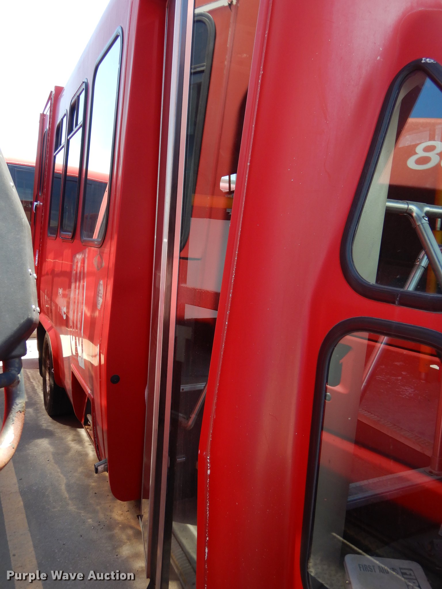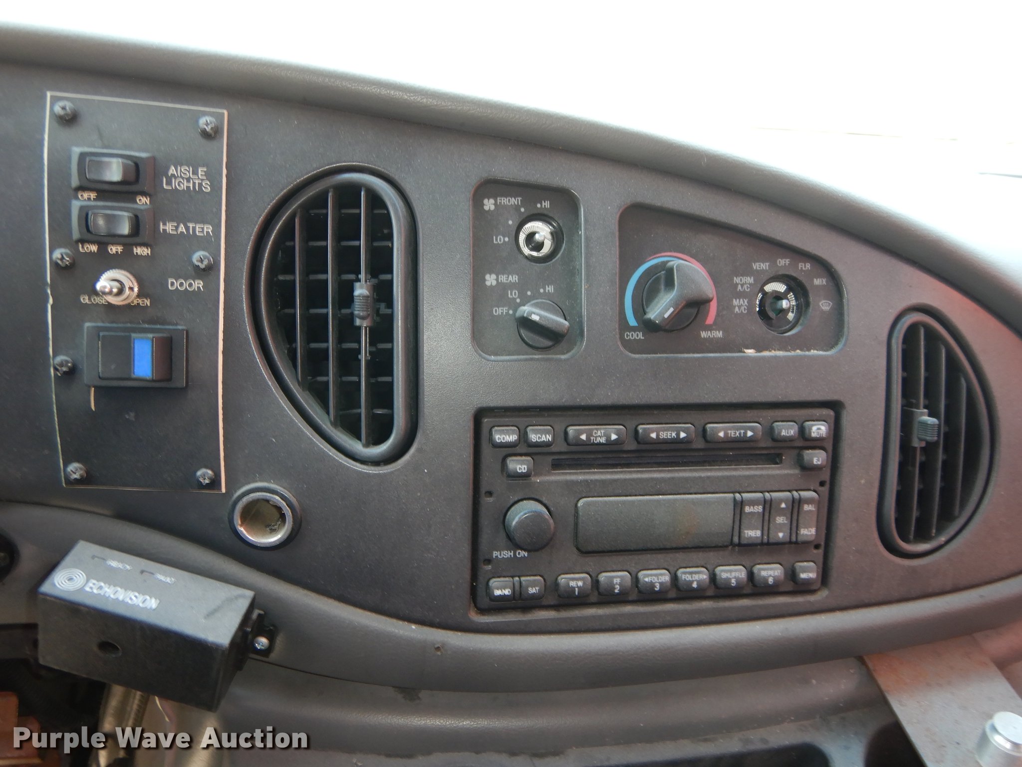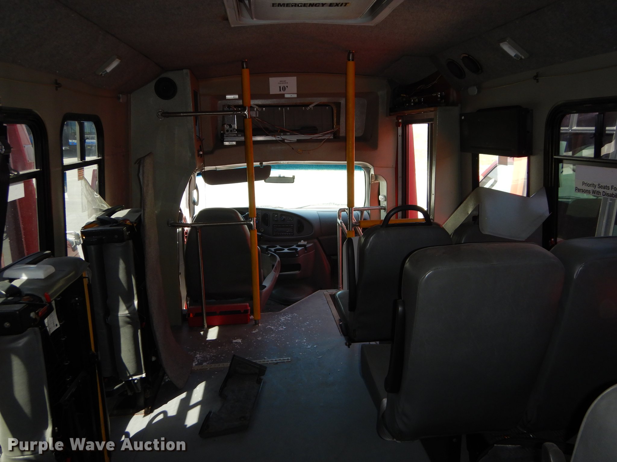 Purple Wave is selling a used Bus in Kansas. This item is a 2006 Ford E450 shuttle bus with the following: 219,155 miles on odometer, 6.0L V8 OHV 32V turbo diesel engine, Automatic transmission, Single axle, AC and heat, AM/FM, Suspension seat, 14 passenger capacity, Wheelchair lift, Wheelchair tie down area, Ceiling, front, and rear emergency exits, Spring suspension, Hydraulic brakes, 225/75R16 tires, GVWR 14,050 lbs, Unit# JCT130