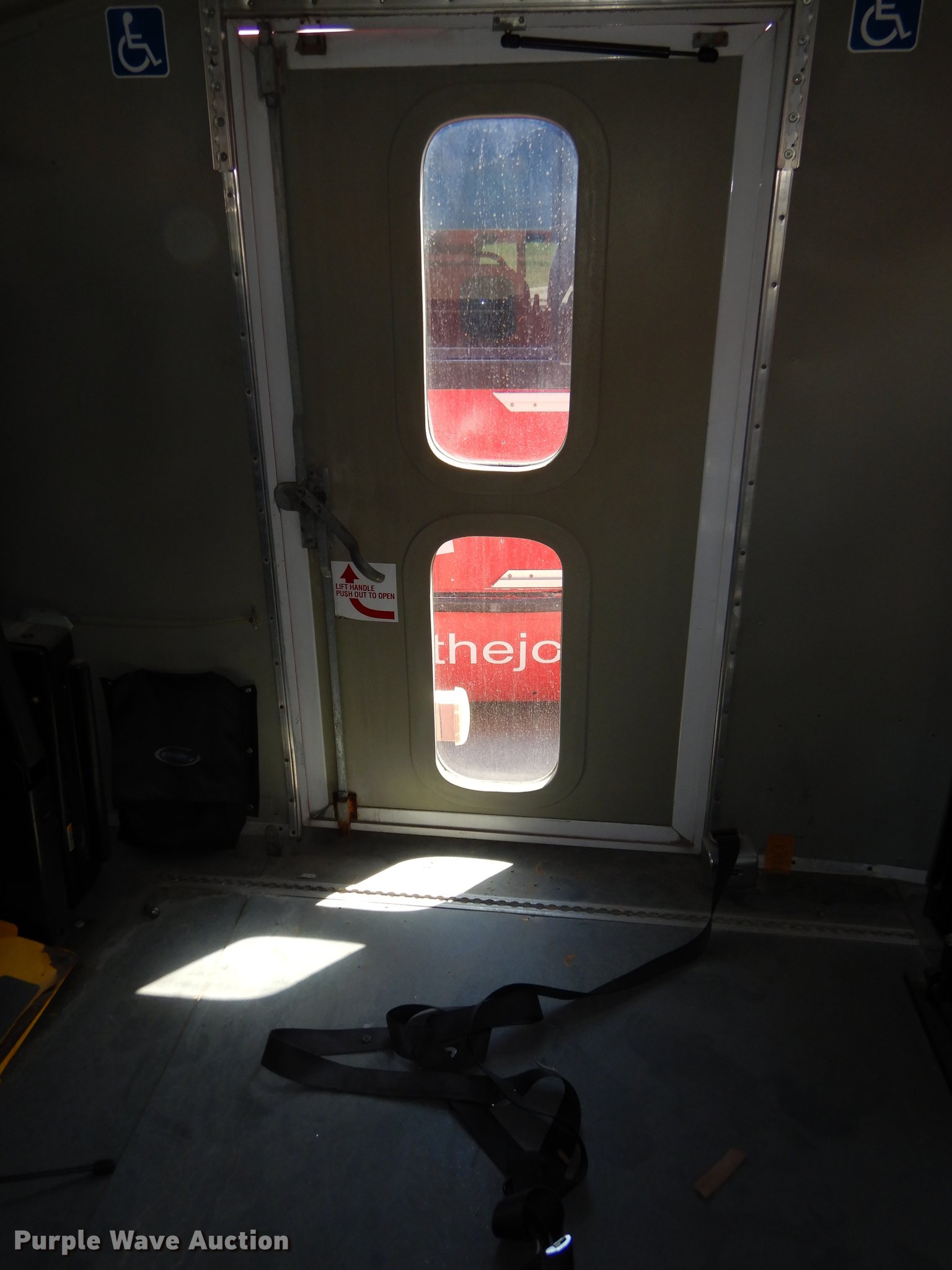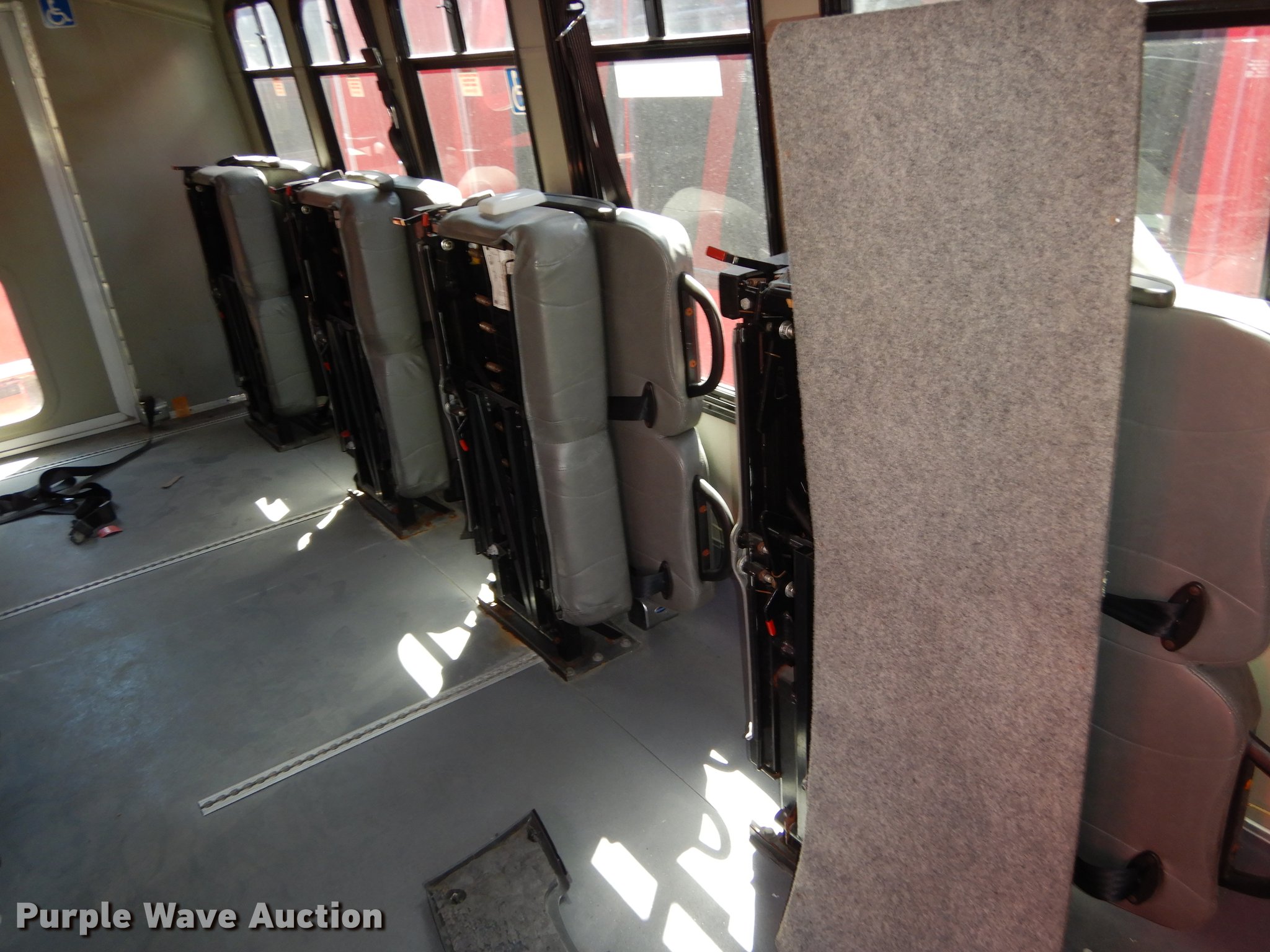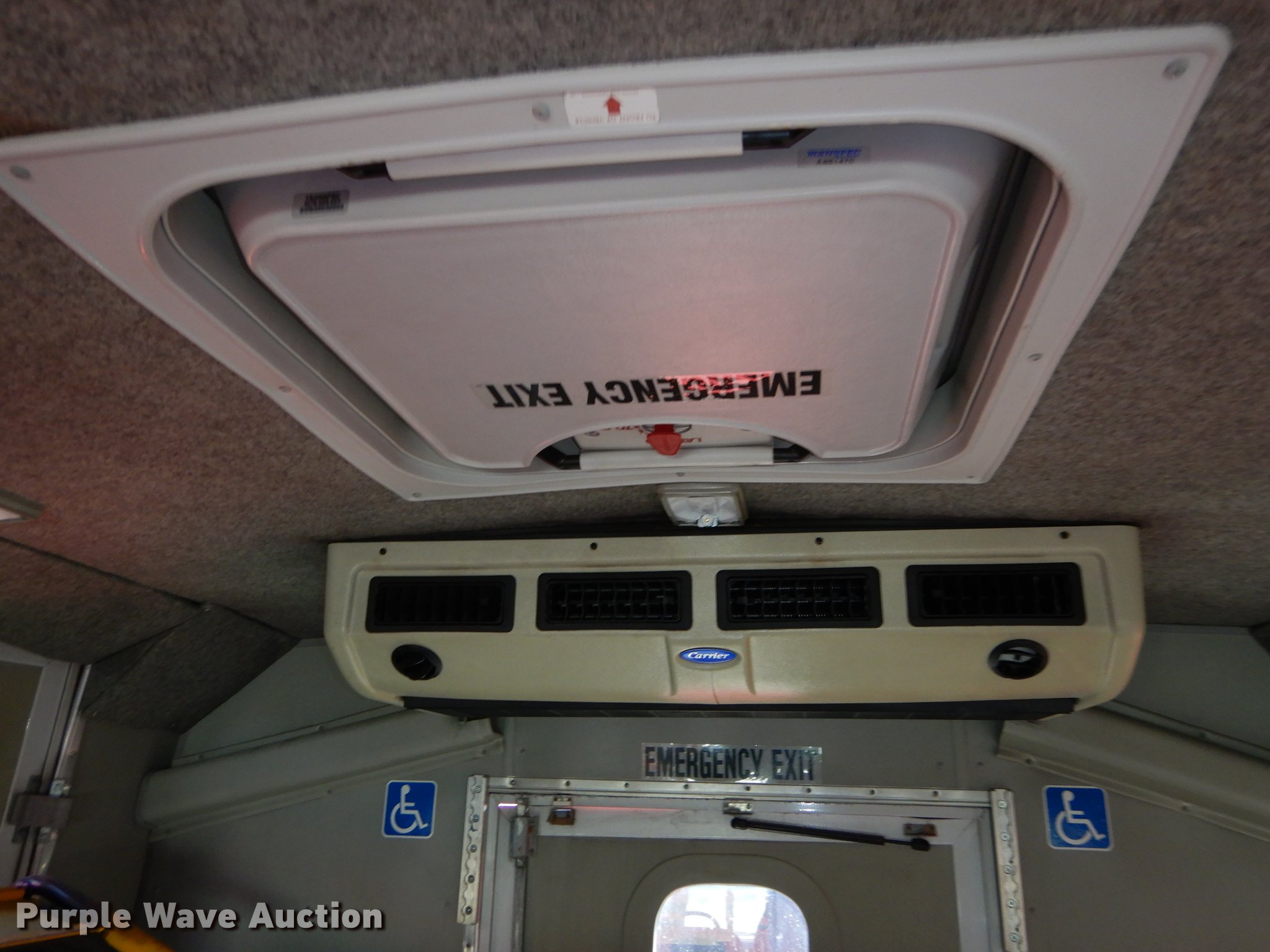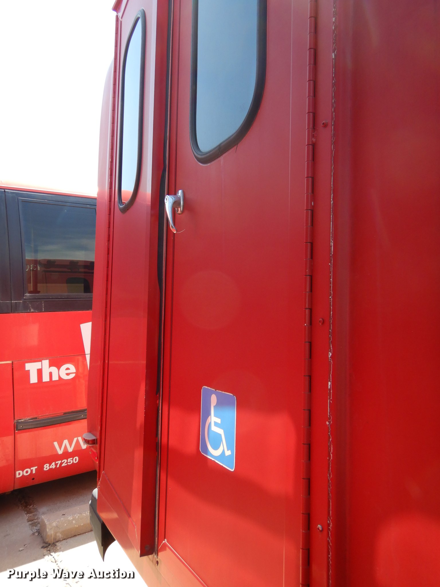 Purple Wave is selling a used Bus in Kansas. This item is a 2006 Ford E450 shuttle bus with the following: 219,155 miles on odometer, 6.0L V8 OHV 32V turbo diesel engine, Automatic transmission, Single axle, AC and heat, AM/FM, Suspension seat, 14 passenger capacity, Wheelchair lift, Wheelchair tie down area, Ceiling, front, and rear emergency exits, Spring suspension, Hydraulic brakes, 225/75R16 tires, GVWR 14,050 lbs, Unit# JCT130