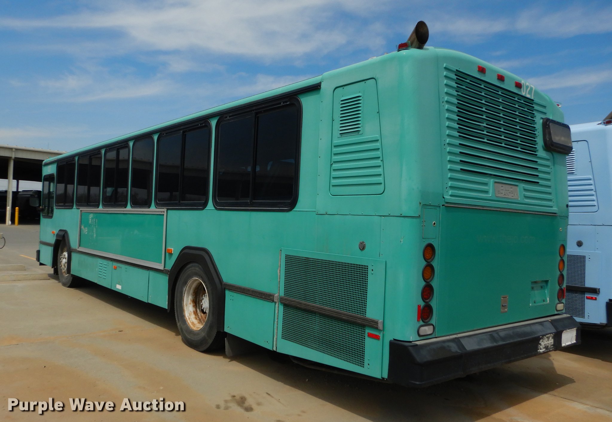 Purple Wave is selling a used Bus in Kansas. This item is a 2000 Gillig Phantom C21B102N4 transit bus with the following: 432,220 miles on odometer, 7,569 hours on meter, Cummins M11 11.0L six cylinder turbo diesel engine, Allison automatic transmission, Single axle, AC and heat, Rear AC, Air suspension seat, Ceiling handrail, 37 passenger capacity, (37) adult seats, Bicycle rack, Ceiling and front emergency exits, Air suspension, Air brakes, 315/80R22.5 front tires, 305/85R22.5 rear tires, GVWR 39,500 lbs, Dead batteries, Unit# JCT027
